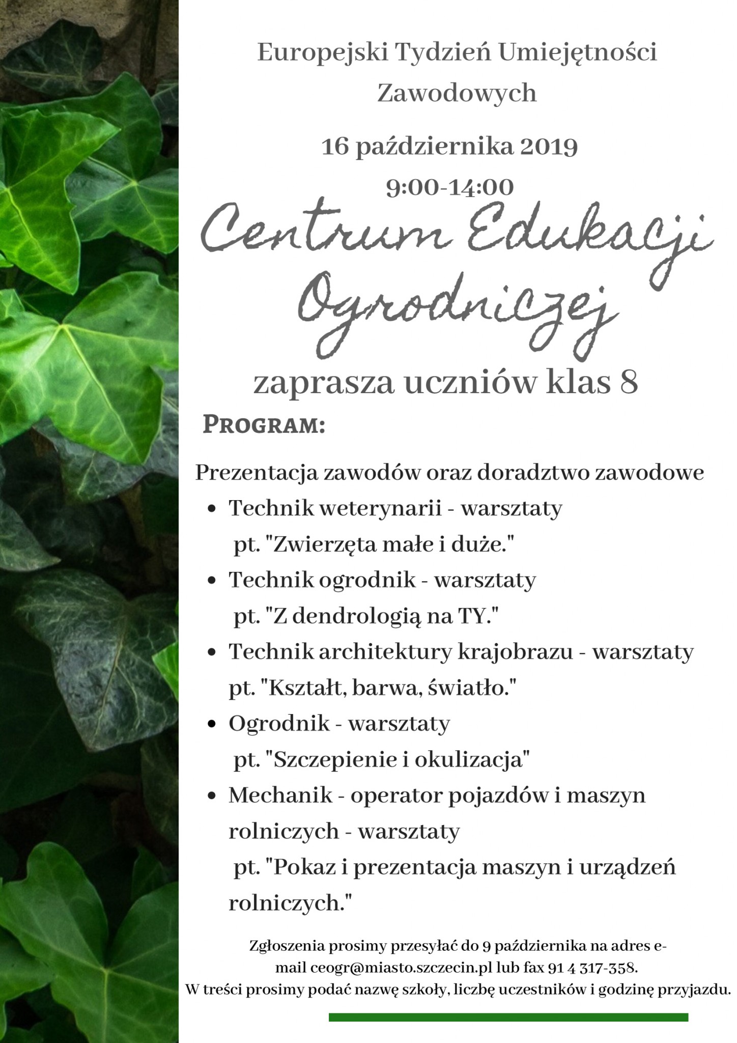 Dnia 10 października 2019 roku w Centrum Edukacji Ogrodniczej odbyło się święto „Sadzenia drzewa”. Jest to międzynarodowa akcja, której celem jest wzrost świadomości ekologicznej społeczeństwa oraz zwrócenie uwagi na zmiany zachodzące w klimacie.