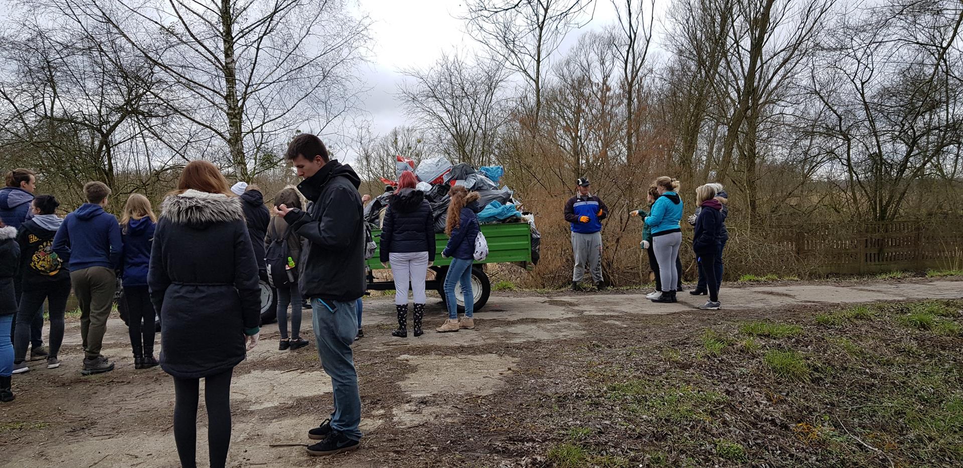 Poprzednia akcja sprzątania, w której udział wzięła klasa III ZSZ z CEO, uświadomiła ogrom problemu. Teren ulicy Jarzębinowej, parking za stacją roweru miejskiego, skwer za parkingiem i znajdująca się na jej końcu plaża przy Regalicy – od lat nie były sprzątane. Okazało się, że miejsce niegdyś przeżywające swoją świetność, tonie w śmieciach. Zorganizowana przez uczniów i nauczycieli CEO masowa akcja sprzątania odbyła się 12 marca. Wzięła w niej udział młodzież wszystkich klas. Z ogromną pomocą przyszli również rodzice uczniów. Robota – dosłownie – paliła się wszystkim w rękach. Wydział Gospodarki Komunalnej i Ochrony Środowiska UM w Szczecinie, w ramach programu likwidacji dzikich wysypisk, udostępnił na rzecz akcji dwa duże kontenery. Pierwszy z nich odjechał pełen po niespełna dwóch godzinach pracy. Wśród śmieci, takich jak: kanapy, opony, telewizory, umywalki, części samochodów, góry plastiku, szkła, butelek, potrzaskanych kafli i foli; znalazły się również ciekawe poniemieckie artefakty z czasów świetności tego miejsca – korpus porcelanowej lalki, może piłkarzyka z napisem Germany i brązowa butelka z grubego przezroczystego szkła z odlanym na niej napisem – Stettin.