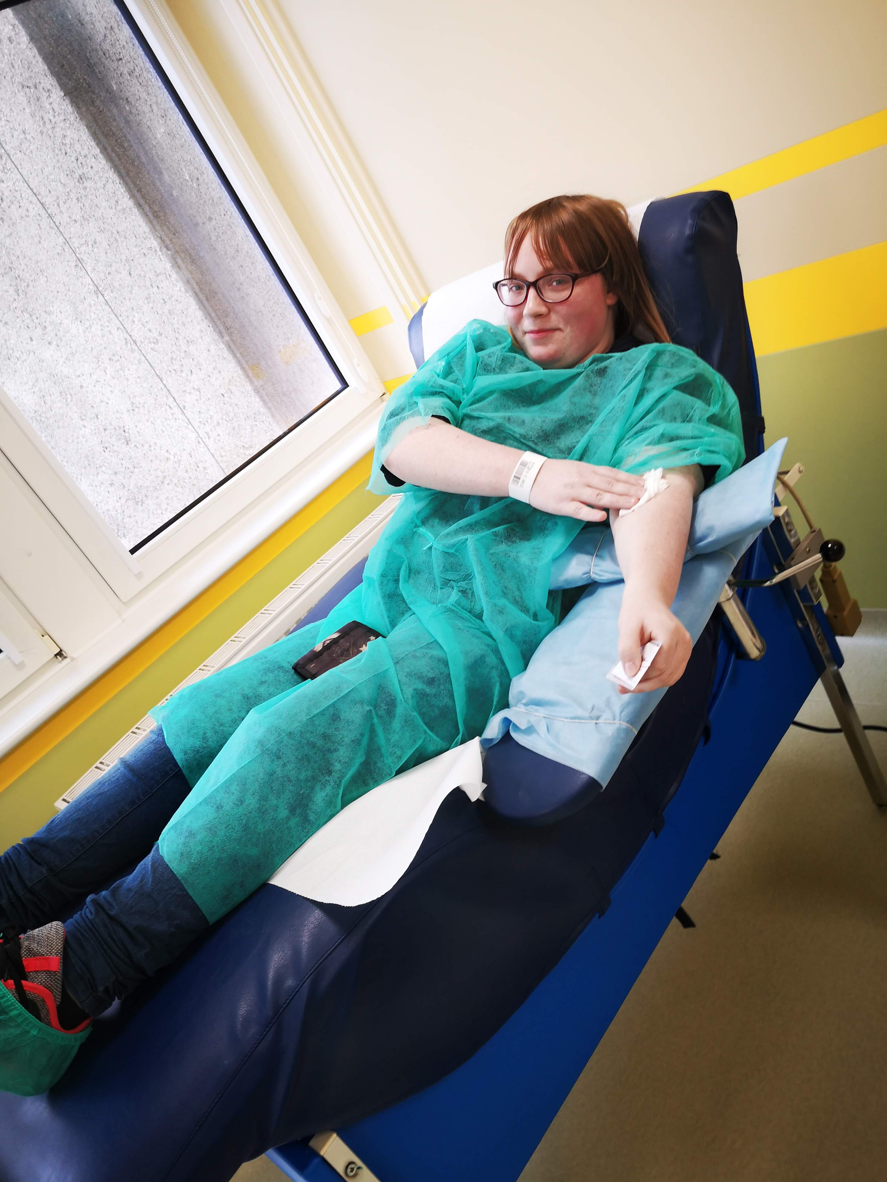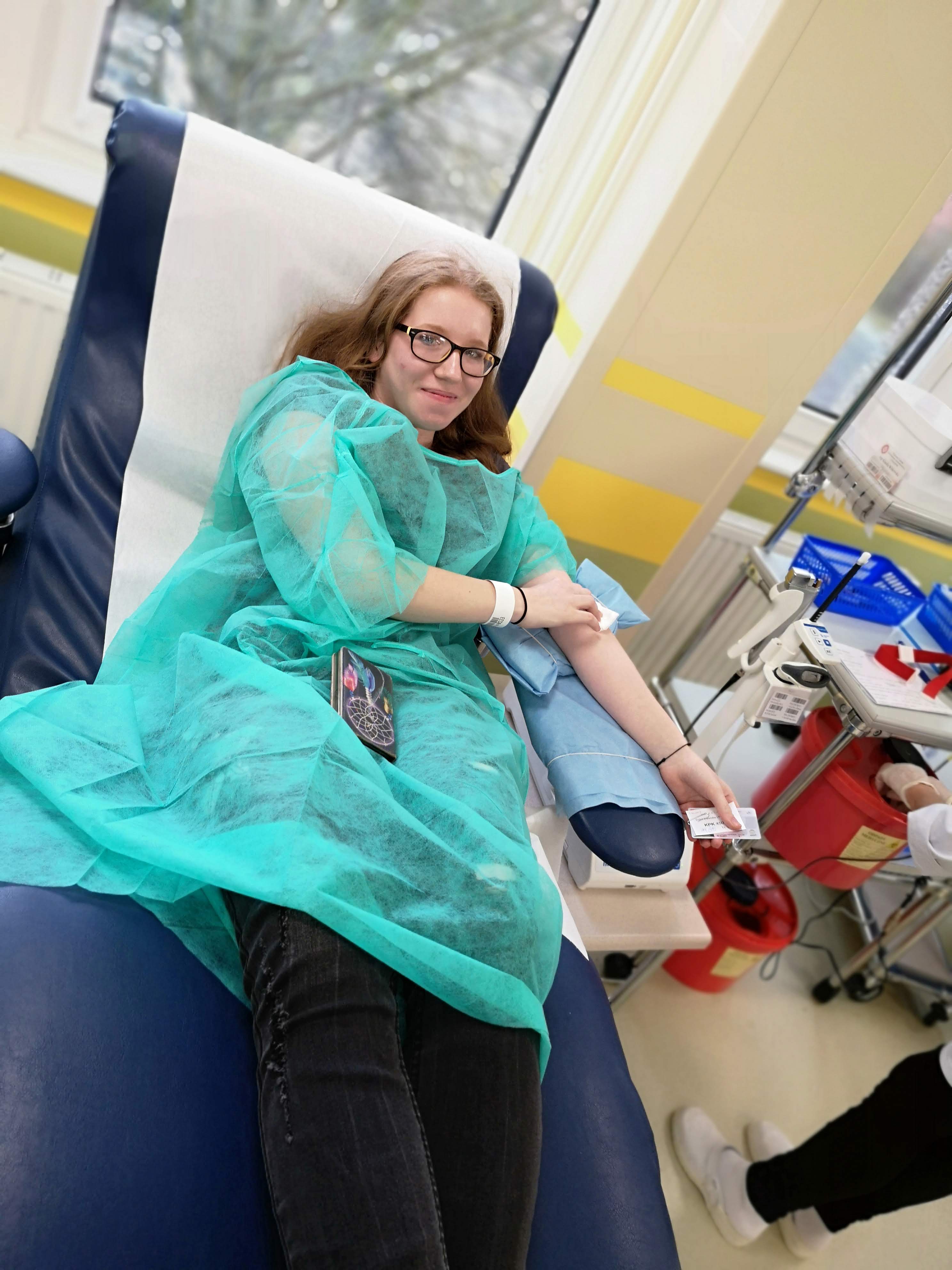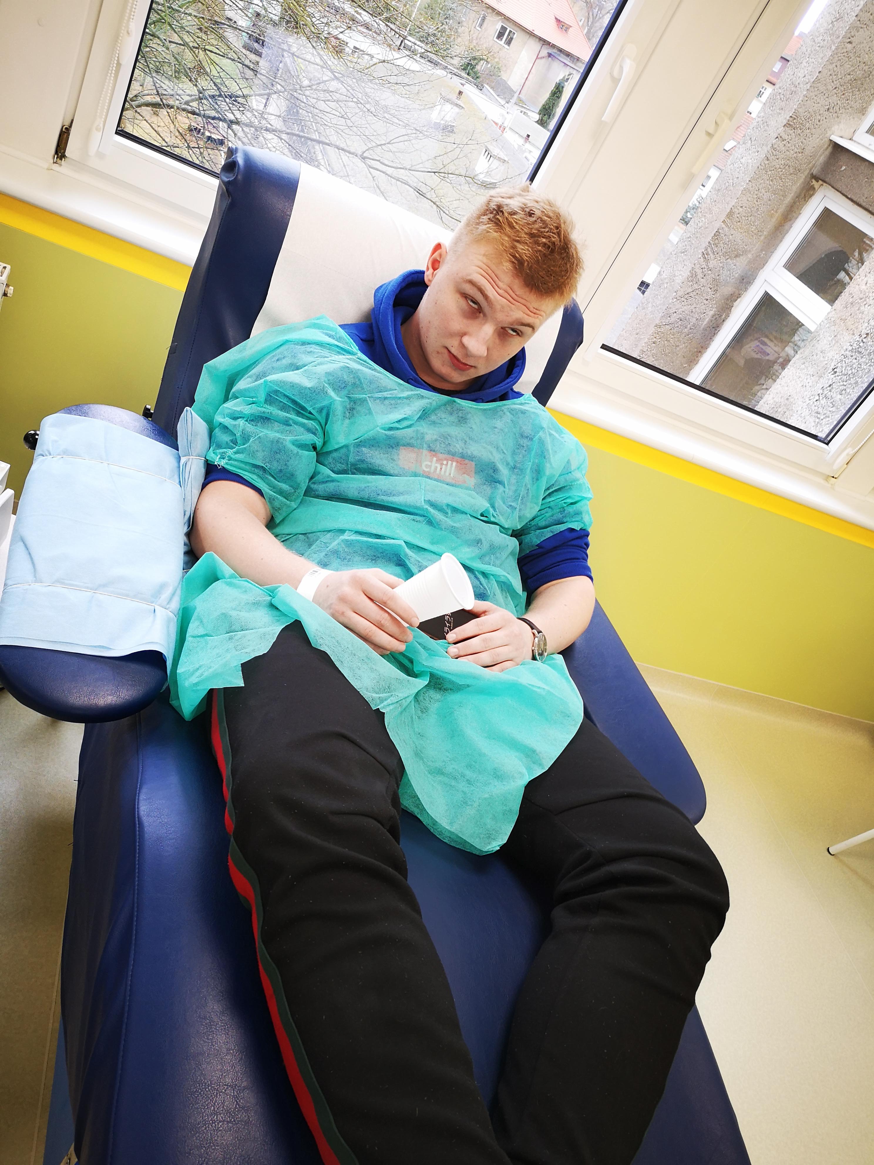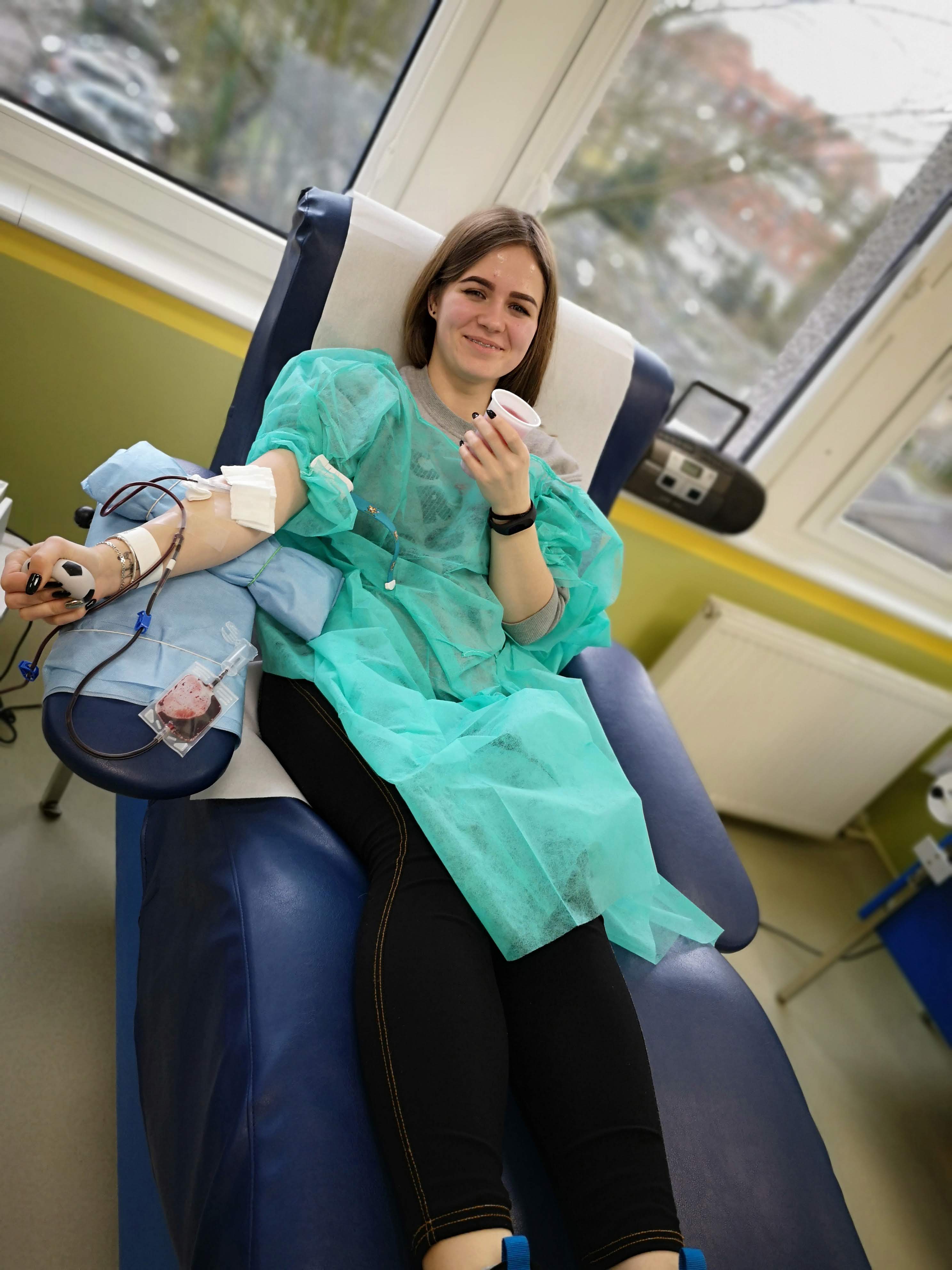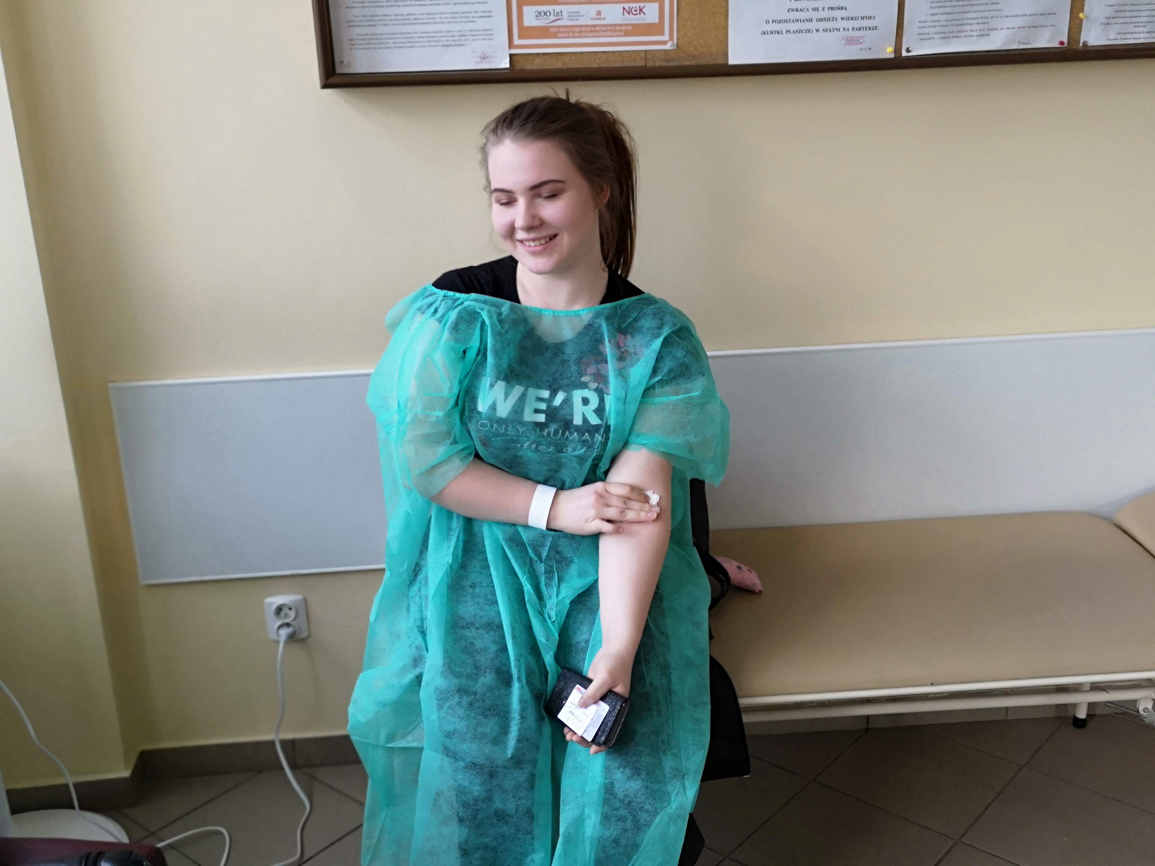 Co tam robili, łatwo się domyślić. Warunkiem uczestnictwa w tej akcji było skończone osiemnaście lat, ponieważ dopiero w takim wieku można zostać dawcą krwi lub osocza. Naszą grupę reprezentowali uczniowie i uczennice klas drugich, trzecich i czwartych. Zdecydowanej większości udało się honorowo (oczywiście w zamian za osiem tabliczek czekolady) oddać krew. Kilka osób musiało niestety wrócić do domu bez czekolady, ale dzięki temu wiedzą, dlaczego i kiedy innym razem mogą spróbować to zrobić.