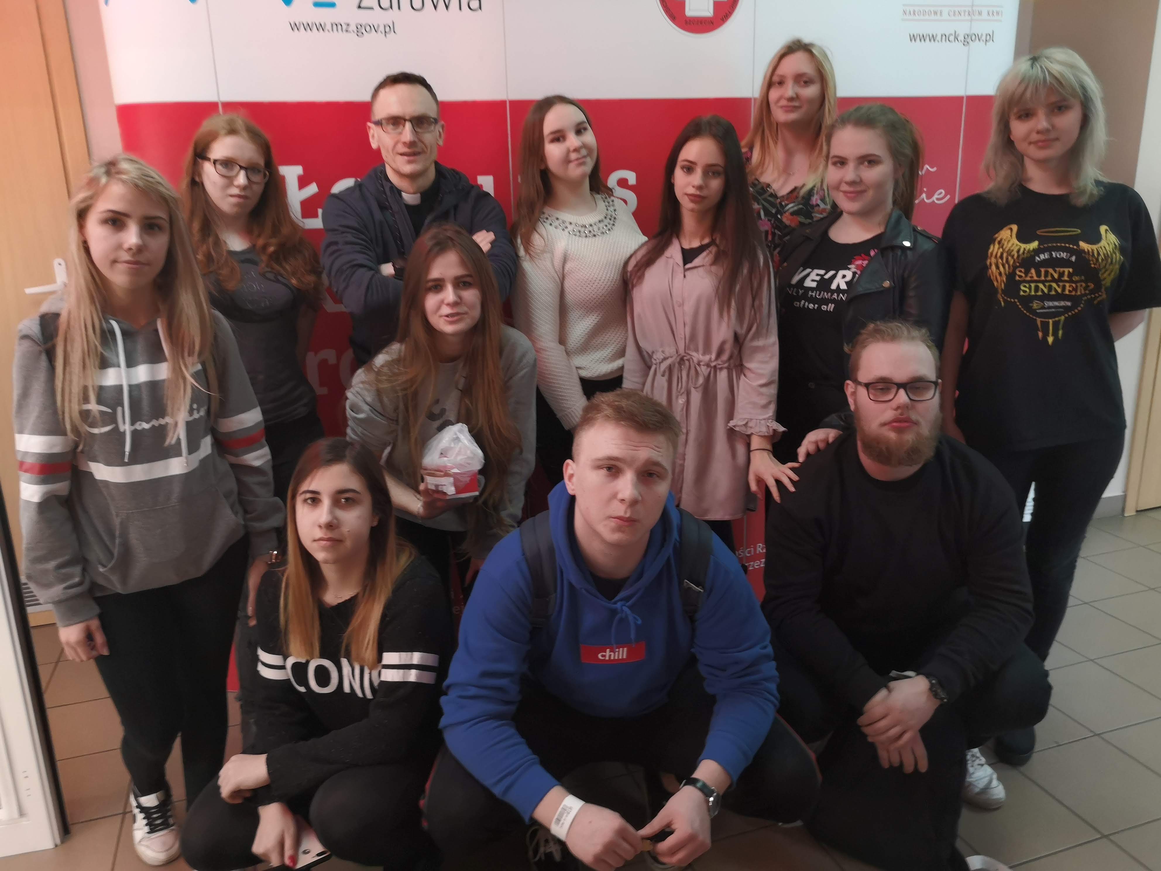 Każda okazja do czynienia dobra … jest dobra. Kierując się tym prostym mottem czternastu śmiałków z naszej szkoły wybrało się wraz z ks. Przemkiem do Regionalnego Centrum Krwiodawstwa i Krwiolecznictwa w Szczecinie.