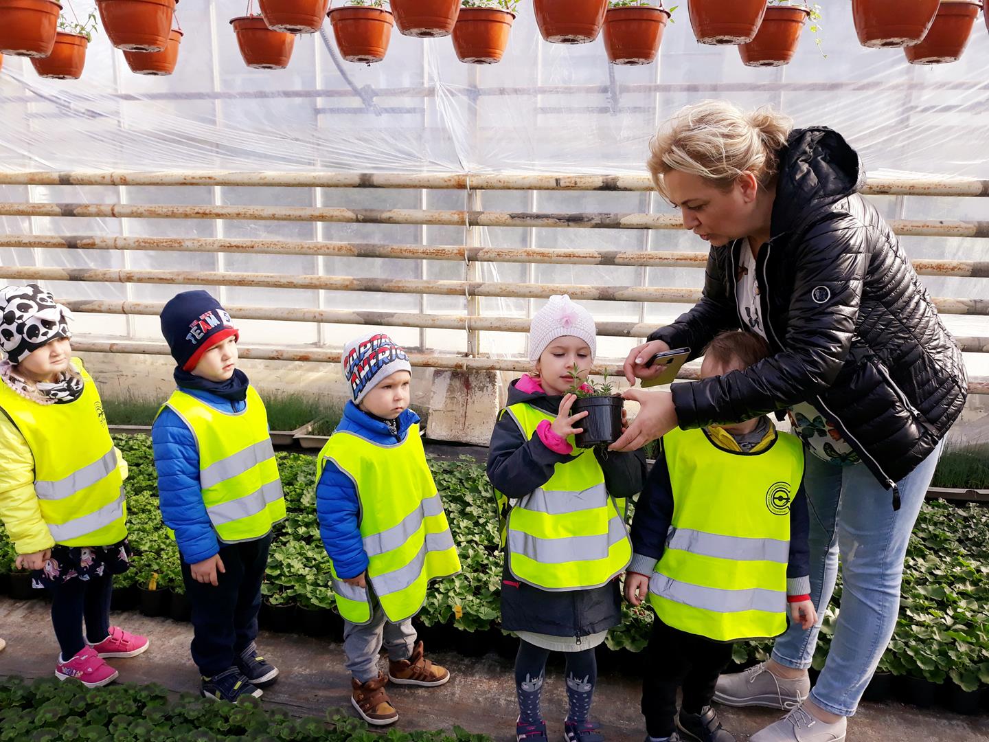 Wiosna, to zdaniem wielu, najpiękniejsza, ale jednocześnie najpracowitsza pora roku, szczególnie dla ogrodników. W tym czasie w szklarniach praca wre i spotkać tam można wiele osób kupujących wiosenne kwiaty i rozsady warzyw. By podejrzeć rosnące rośliny, na spacer do szklarni wybrały się dzieci z Przedszkola Publicznego nr 35 w Szczecinie. Już od kilku lat, w ramach sąsiedzkiej współpracy oraz realizacji zajęć z edukacji przyrodniczej, najmłodsi przychodzą na warsztaty ogrodnicze. Tym razem grupa 3–latków z „Krasnala Hałabały” z zainteresowaniem oglądała rośliny, podpatrując przy tym pracę uczniów odbywających zajęcia praktycznej nauki zawodu. Podczas spaceru dzieci zobaczyły nie tylko jak rośnie ogórek szklarniowy, sałata, szczypior, koperek czy rzodkiewka, ale także oglądały kwiaty i sprawdzały czy pachną. Taka „garść wiedzy ogrodniczej” jak na pierwszy raz, była dla nich zapewne wyczerpująca. Po zrobieniu pamiątkowego zdjęcia dzieci wróciły do przedszkola.