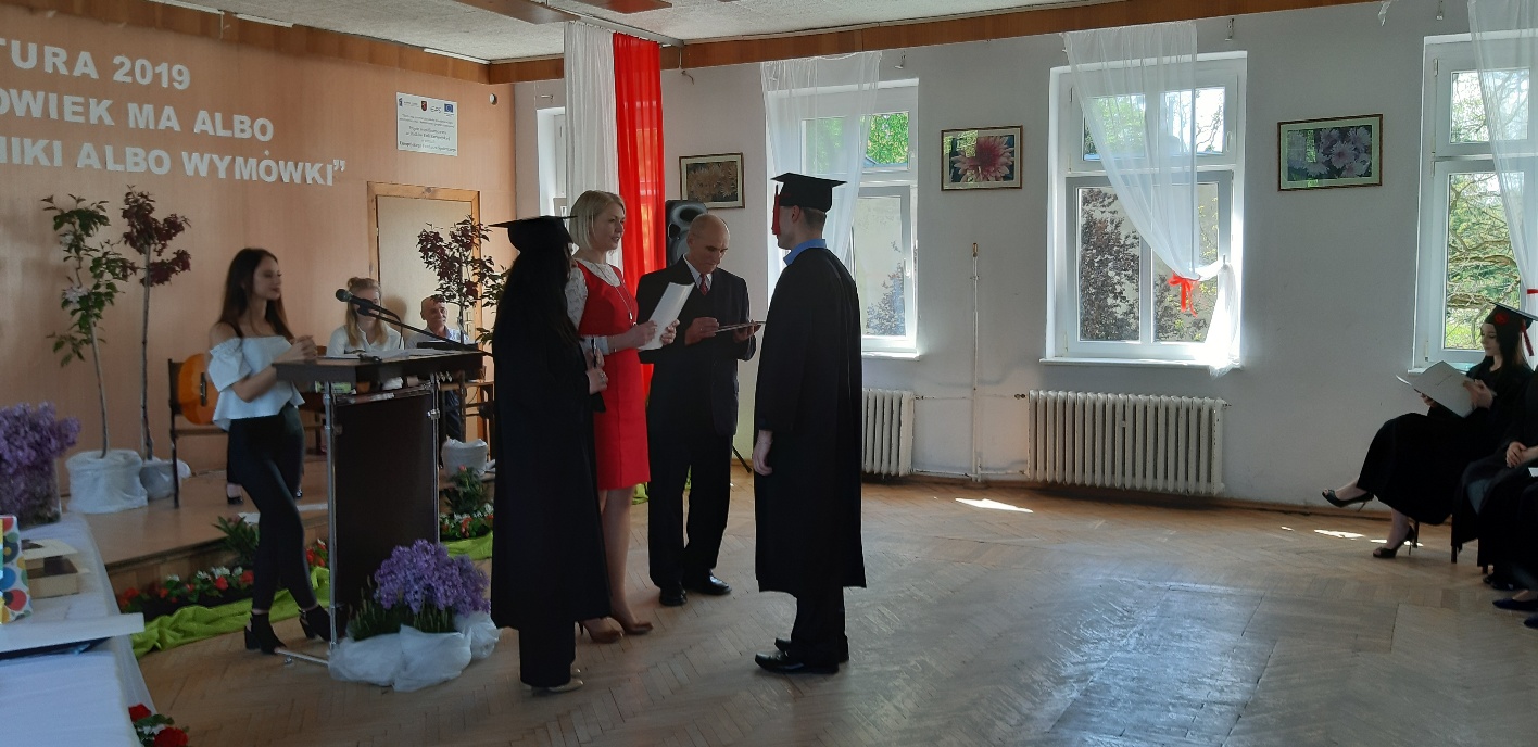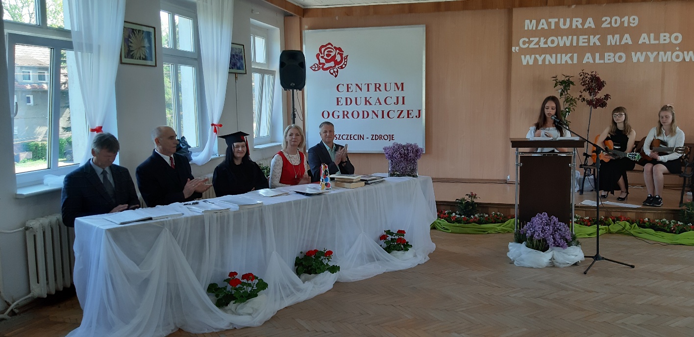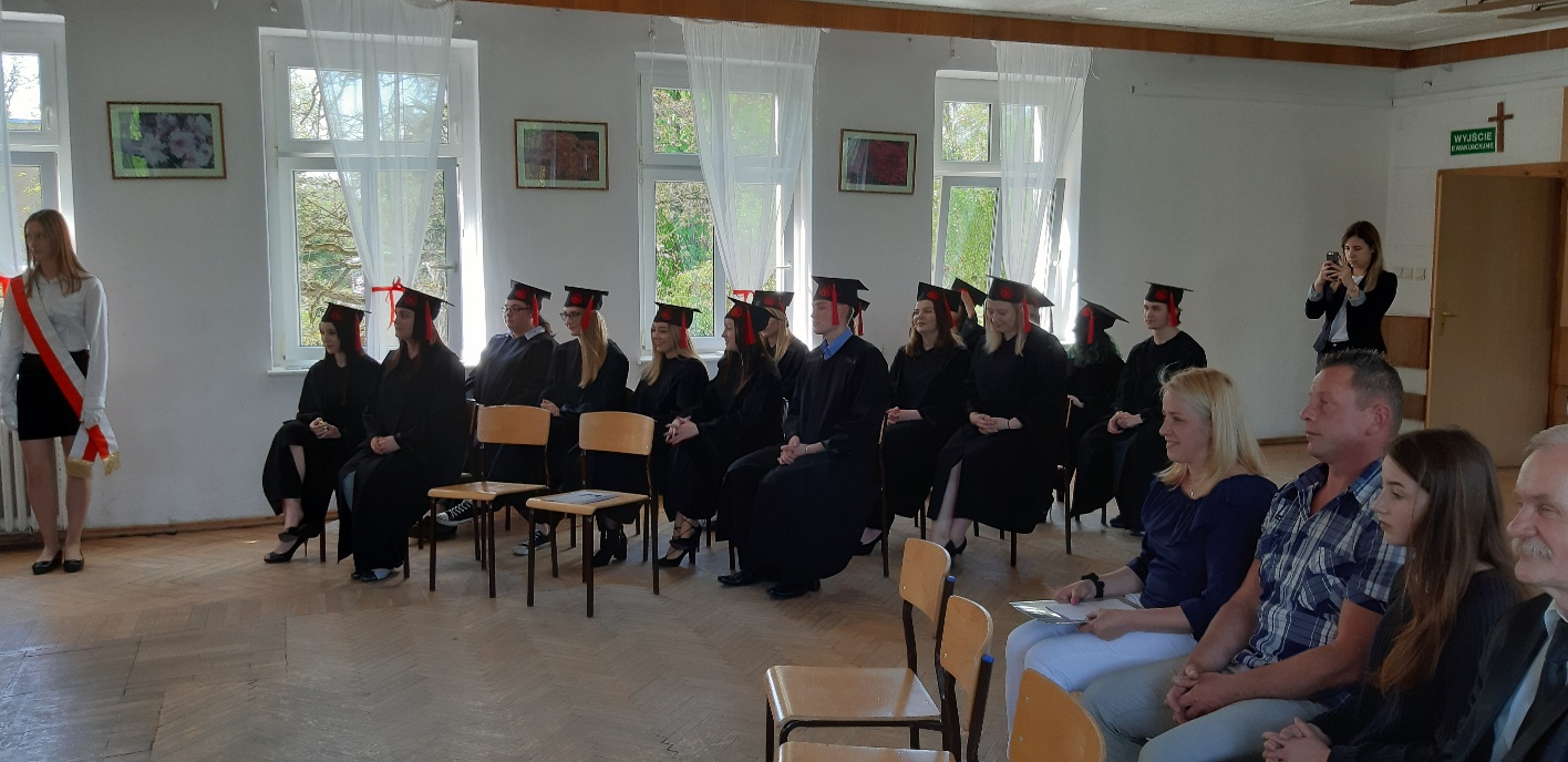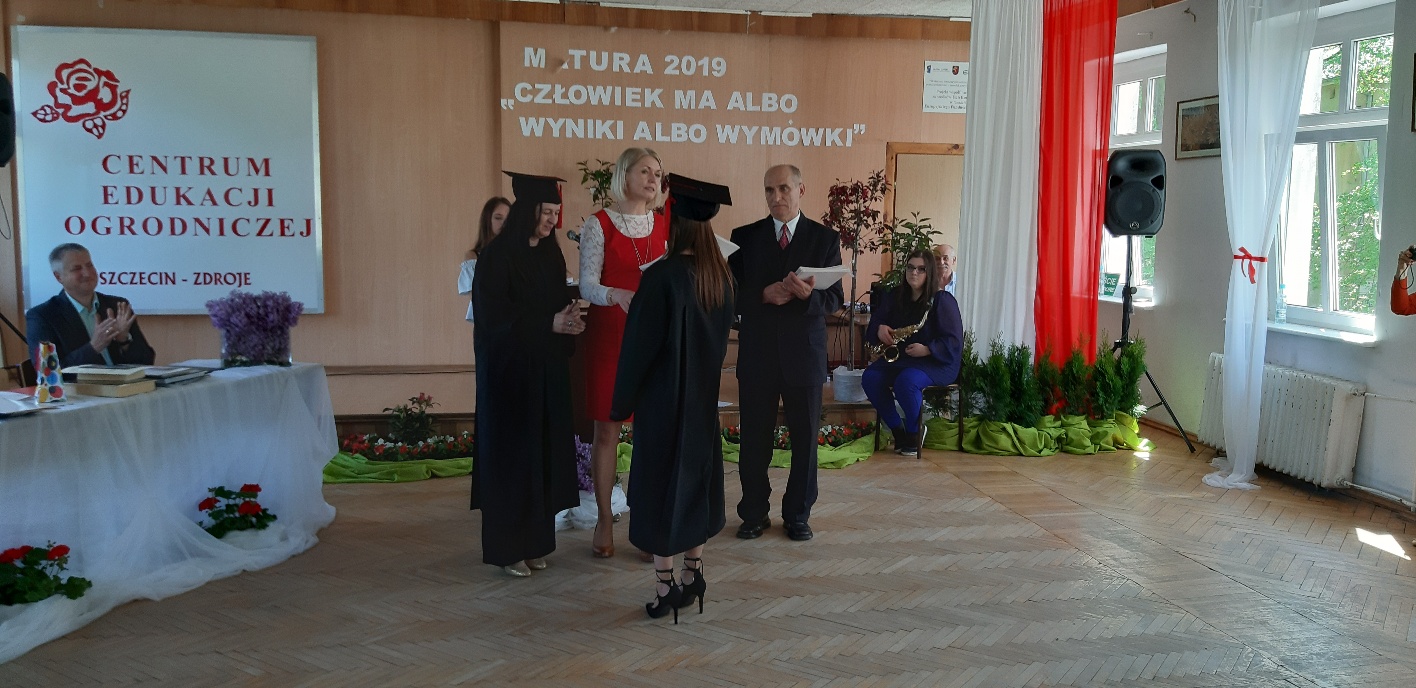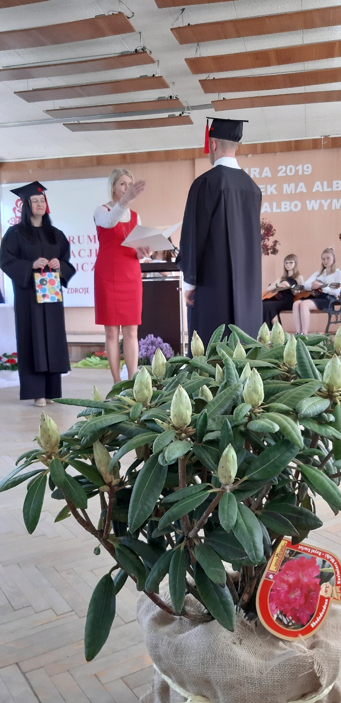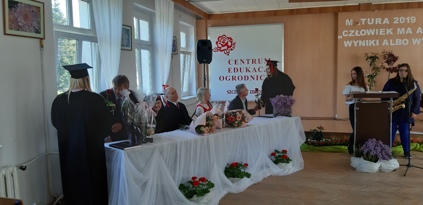 Koniec kwietnia każdego roku to chwile zarówno radości, jak i wspomnień dla przyszłych maturzystów. Niejednemu absolwentowi i nauczycielowi kręci się łezka w oku, a i serca szybciej biją na wspomnienie czterech lat wspólnie spędzonych w murach szkoły i w otoczeniu zieleni parku szkolnego i myśli, że po raz ostatni zasiedli w ławkach szkolnych… I tak 26 kwietnia odbyło się uroczyste pożegnanie ABITURIENTÓW rocznik 2019, wśród których było 7 techników architektury krajobrazu i 10 techników weterynarii. Uroczystość miała szczególny charakter, ponieważ w tym roku szkolnym zostali „wypuszczeni” po raz pierwszy „miłośnicy zwierząt”. Dlatego też Krzysztofowi Dzięciołowskiemu – pierwszemu uczniowi z listy – nadano tytuł honorowego pierwszego absolwenta w zawodzie technik weterynarii. Jak co roku czwartoklasistów żegnali uczniowie klas młodszych, którzy – pod przewodnictwem p. Wojtka Majkowskiego – przygotowali kilka piosenek, a całą imprezę poprowadziła Natalia Leśniak z klasy 3 TW. W trakcie uroczystości przyszli maturzyści złożyli uroczyste ślubowanie, w którym zobowiązali się nie tylko do sławienia imienia szkoły, ale przede wszystkim „do pomnażania” zdobytej wiedzy. Potem wręczono nagrody i podziękowania dla osób wyróżniających się w pracy na rzecz szkoły i klasy: