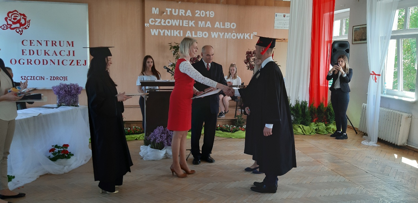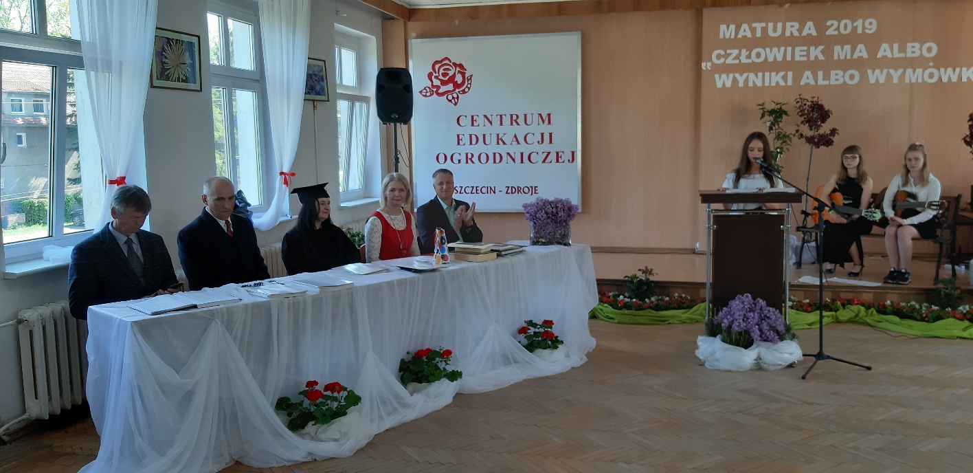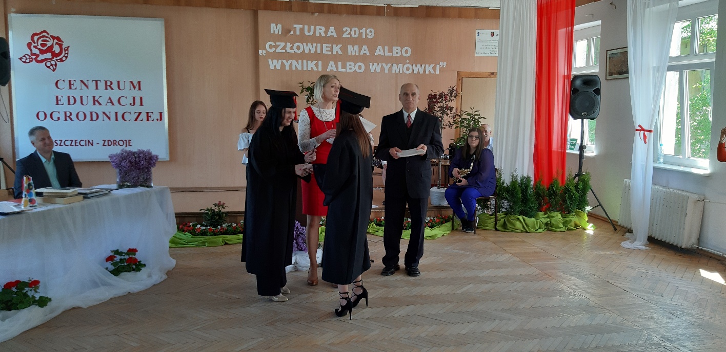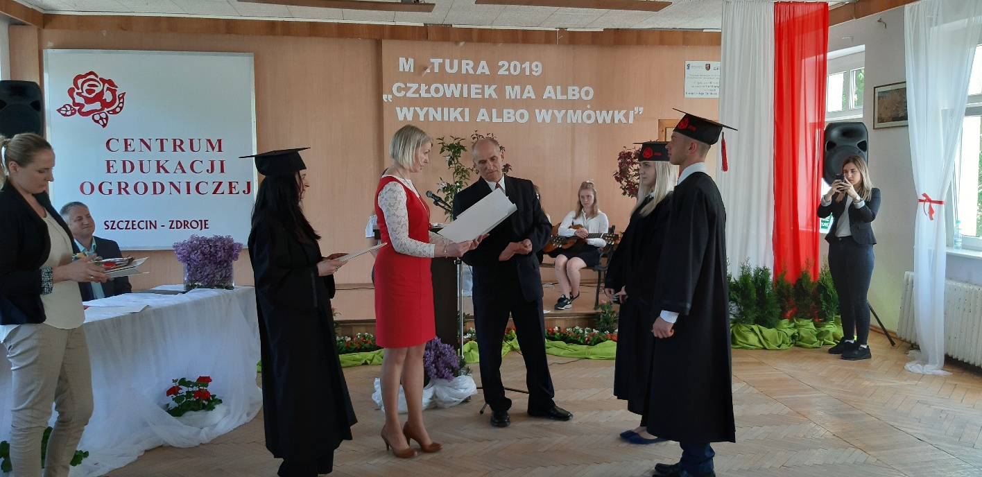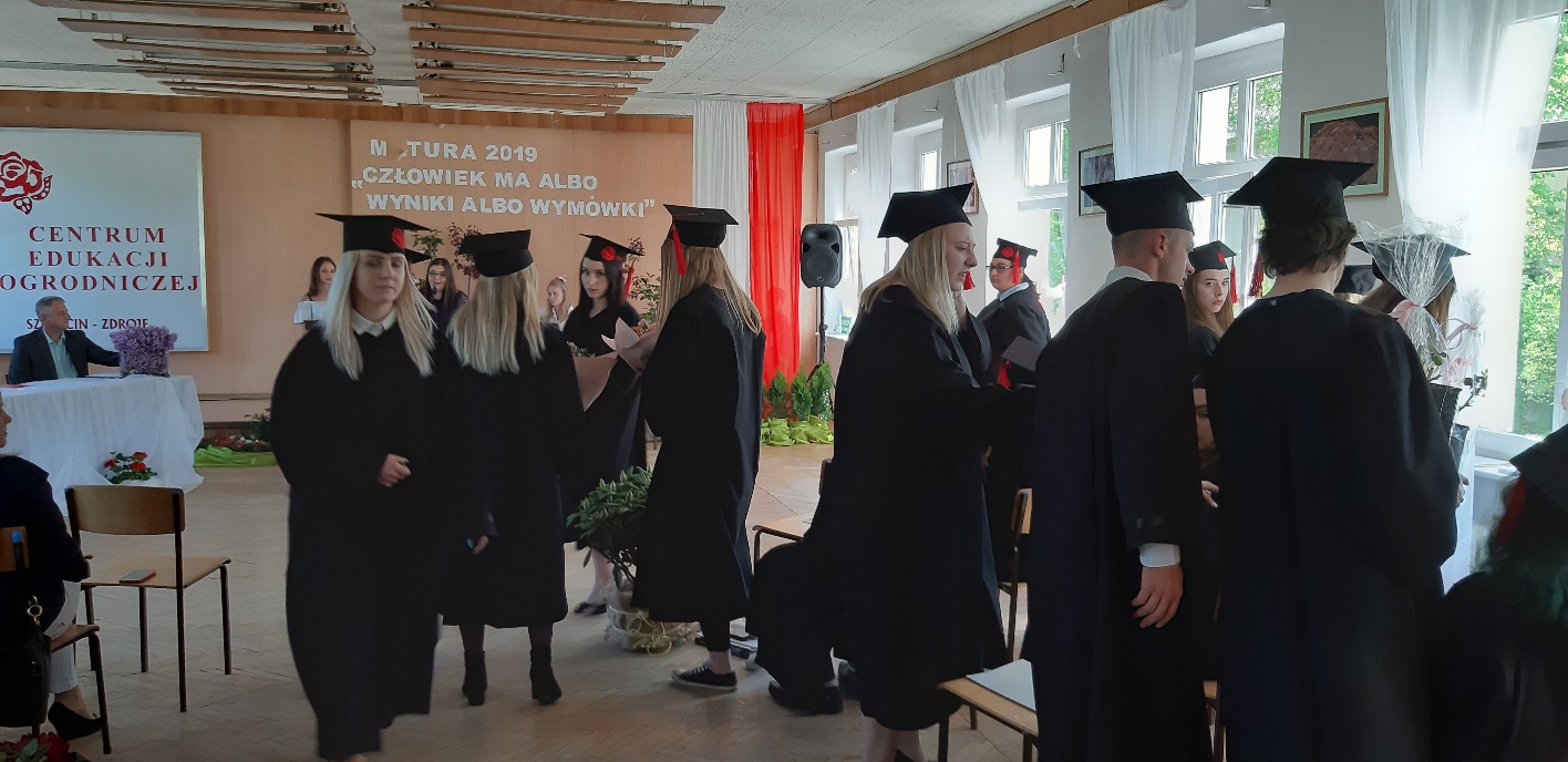 Koniec kwietnia każdego roku to chwile zarówno radości, jak i wspomnień dla przyszłych maturzystów. Niejednemu absolwentowi i nauczycielowi kręci się łezka w oku, a i serca szybciej biją na wspomnienie czterech lat wspólnie spędzonych w murach szkoły i w otoczeniu zieleni parku szkolnego i myśli, że po raz ostatni zasiedli w ławkach szkolnych… I tak 26 kwietnia odbyło się uroczyste pożegnanie ABITURIENTÓW rocznik 2019, wśród których było 7 techników architektury krajobrazu i 10 techników weterynarii. Uroczystość miała szczególny charakter, ponieważ w tym roku szkolnym zostali „wypuszczeni” po raz pierwszy „miłośnicy zwierząt”. Dlatego też Krzysztofowi Dzięciołowskiemu – pierwszemu uczniowi z listy – nadano tytuł honorowego pierwszego absolwenta w zawodzie technik weterynarii. Jak co roku czwartoklasistów żegnali uczniowie klas młodszych, którzy – pod przewodnictwem p. Wojtka Majkowskiego – przygotowali kilka piosenek, a całą imprezę poprowadziła Natalia Leśniak z klasy 3 TW. W trakcie uroczystości przyszli maturzyści złożyli uroczyste ślubowanie, w którym zobowiązali się nie tylko do sławienia imienia szkoły, ale przede wszystkim „do pomnażania” zdobytej wiedzy. Potem wręczono nagrody i podziękowania dla osób wyróżniających się w pracy na rzecz szkoły i klasy: