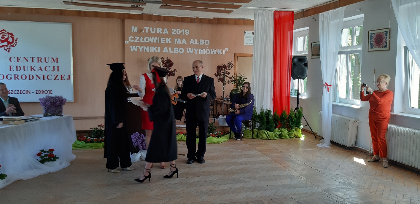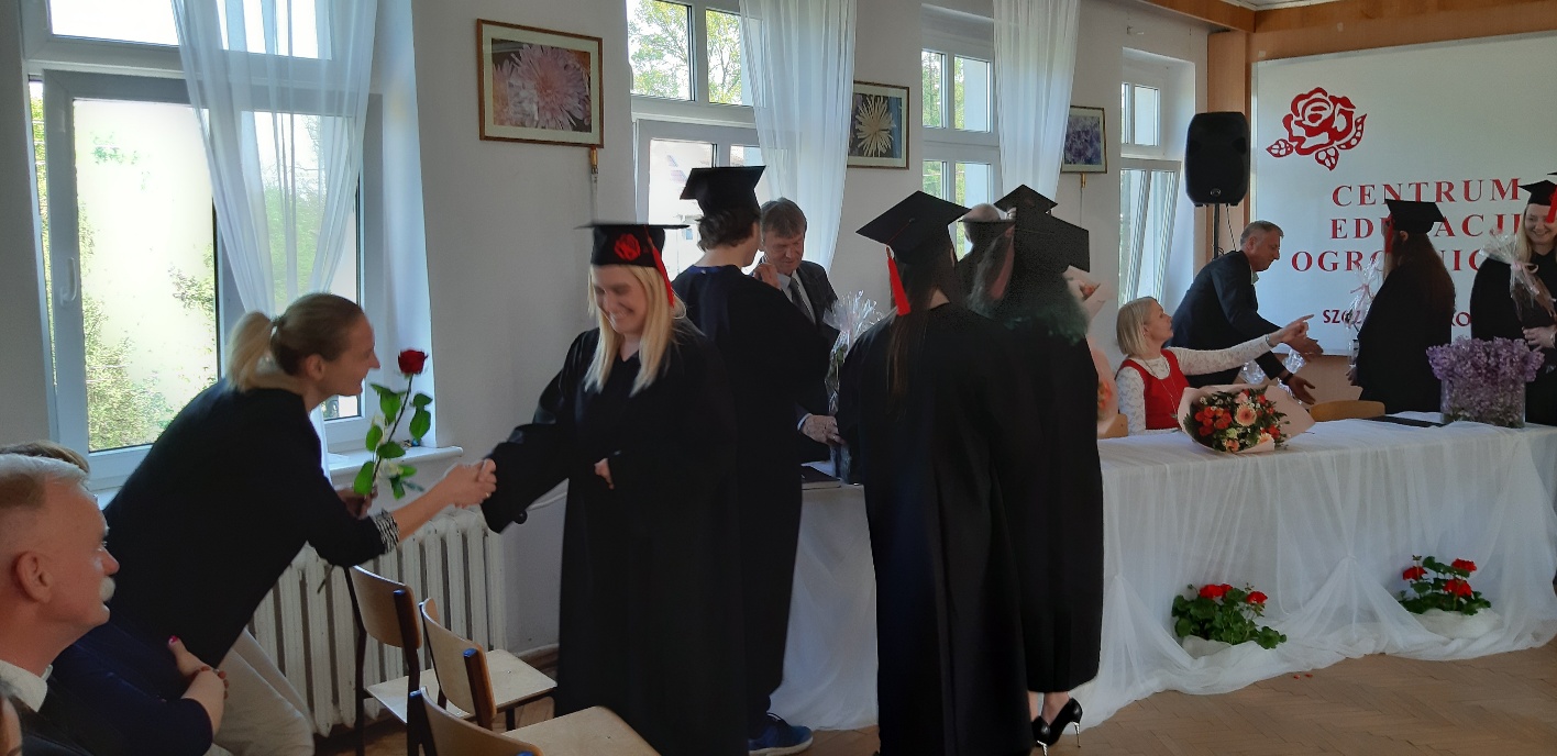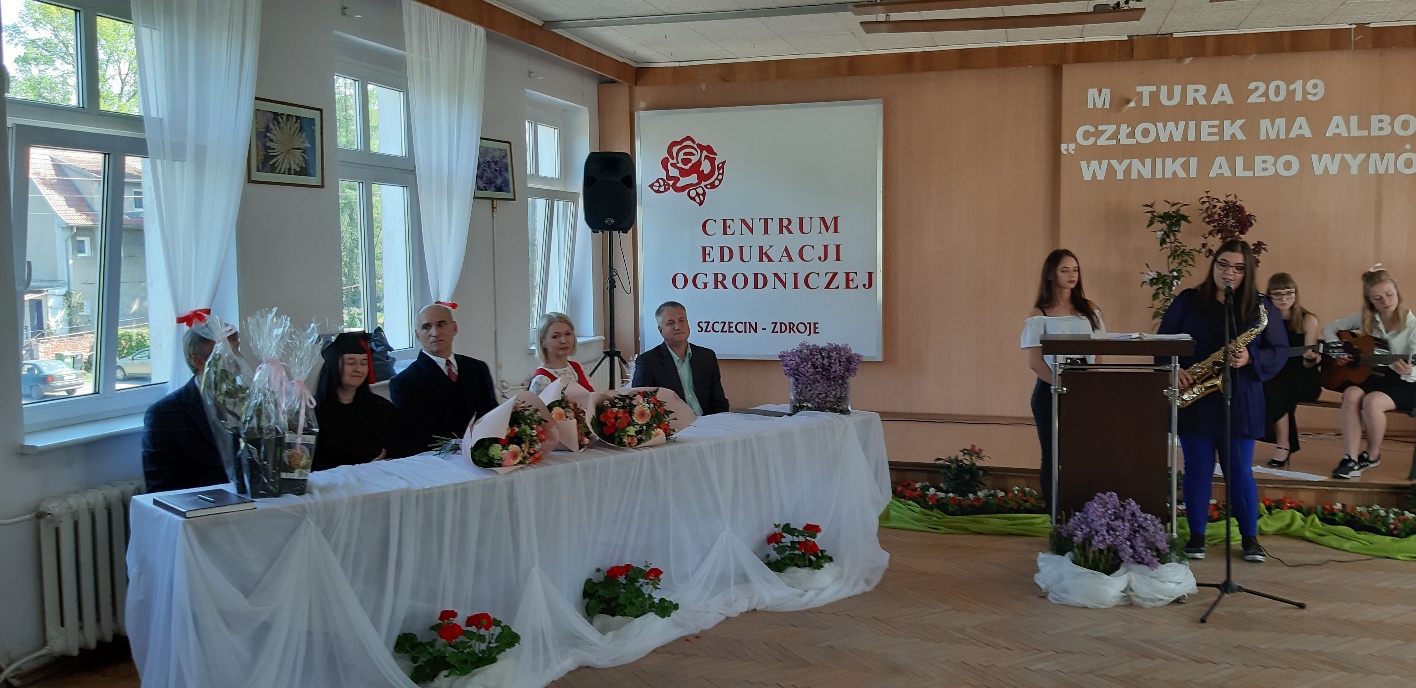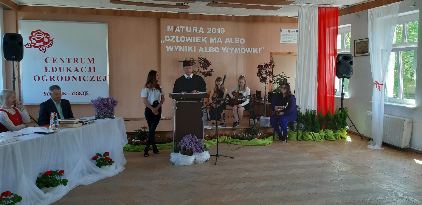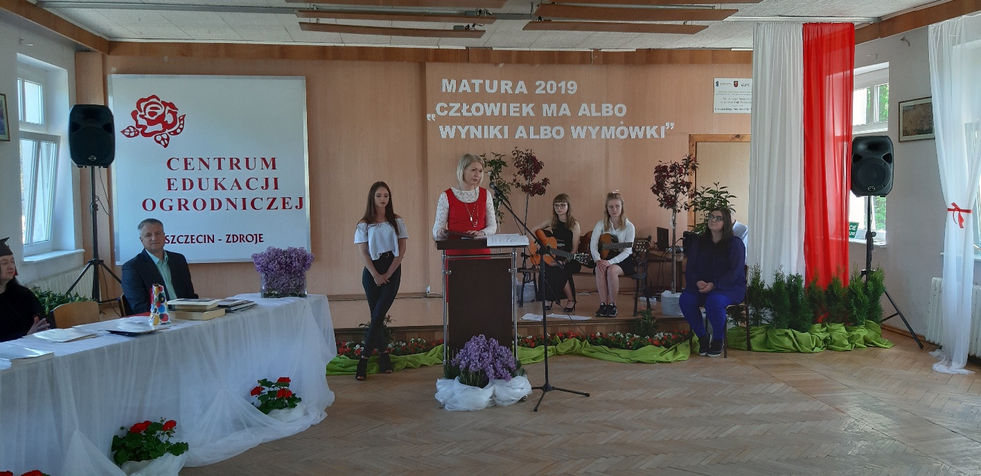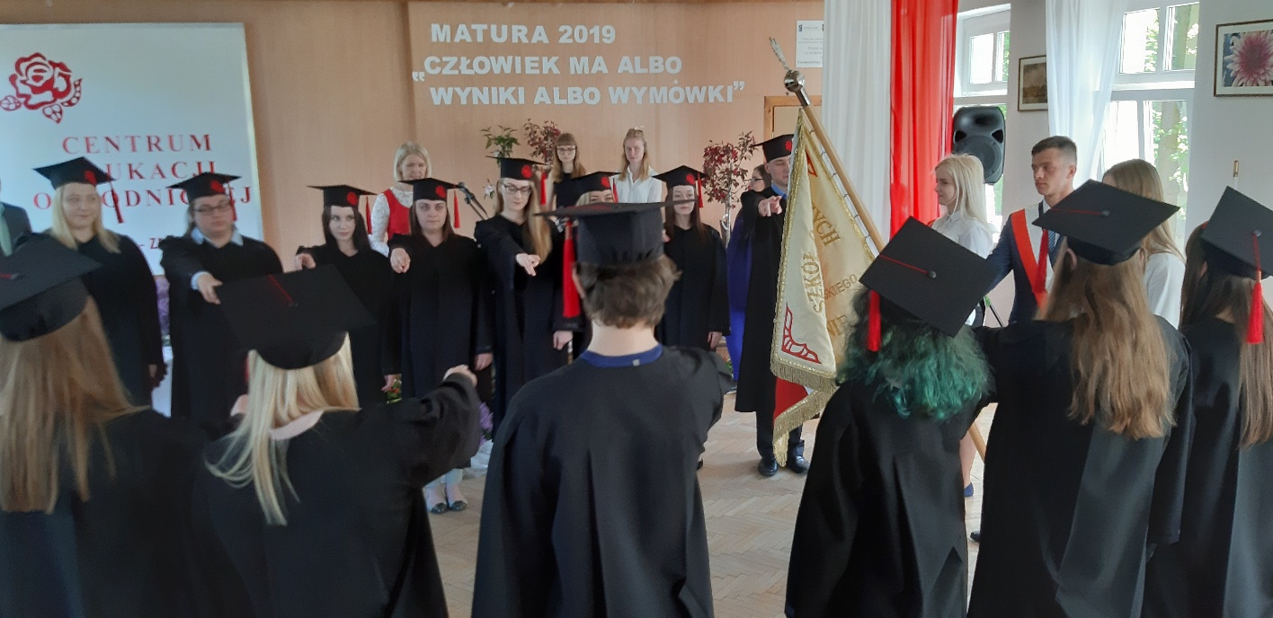 Koniec kwietnia każdego roku to chwile zarówno radości, jak i wspomnień dla przyszłych maturzystów. Niejednemu absolwentowi i nauczycielowi kręci się łezka w oku, a i serca szybciej biją na wspomnienie czterech lat wspólnie spędzonych w murach szkoły i w otoczeniu zieleni parku szkolnego i myśli, że po raz ostatni zasiedli w ławkach szkolnych… I tak 26 kwietnia odbyło się uroczyste pożegnanie ABITURIENTÓW rocznik 2019, wśród których było 7 techników architektury krajobrazu i 10 techników weterynarii. Uroczystość miała szczególny charakter, ponieważ w tym roku szkolnym zostali „wypuszczeni” po raz pierwszy „miłośnicy zwierząt”. Dlatego też Krzysztofowi Dzięciołowskiemu – pierwszemu uczniowi z listy – nadano tytuł honorowego pierwszego absolwenta w zawodzie technik weterynarii. Jak co roku czwartoklasistów żegnali uczniowie klas młodszych, którzy – pod przewodnictwem p. Wojtka Majkowskiego – przygotowali kilka piosenek, a całą imprezę poprowadziła Natalia Leśniak z klasy 3 TW. W trakcie uroczystości przyszli maturzyści złożyli uroczyste ślubowanie, w którym zobowiązali się nie tylko do sławienia imienia szkoły, ale przede wszystkim „do pomnażania” zdobytej wiedzy. Potem wręczono nagrody i podziękowania dla osób wyróżniających się w pracy na rzecz szkoły i klasy:
