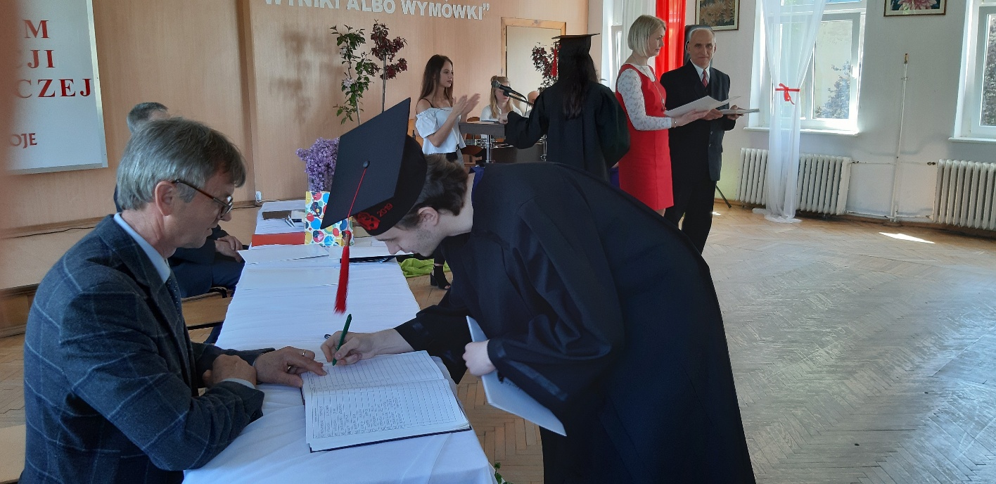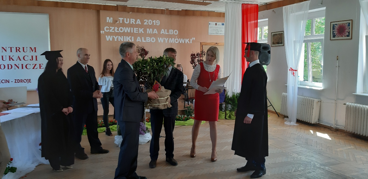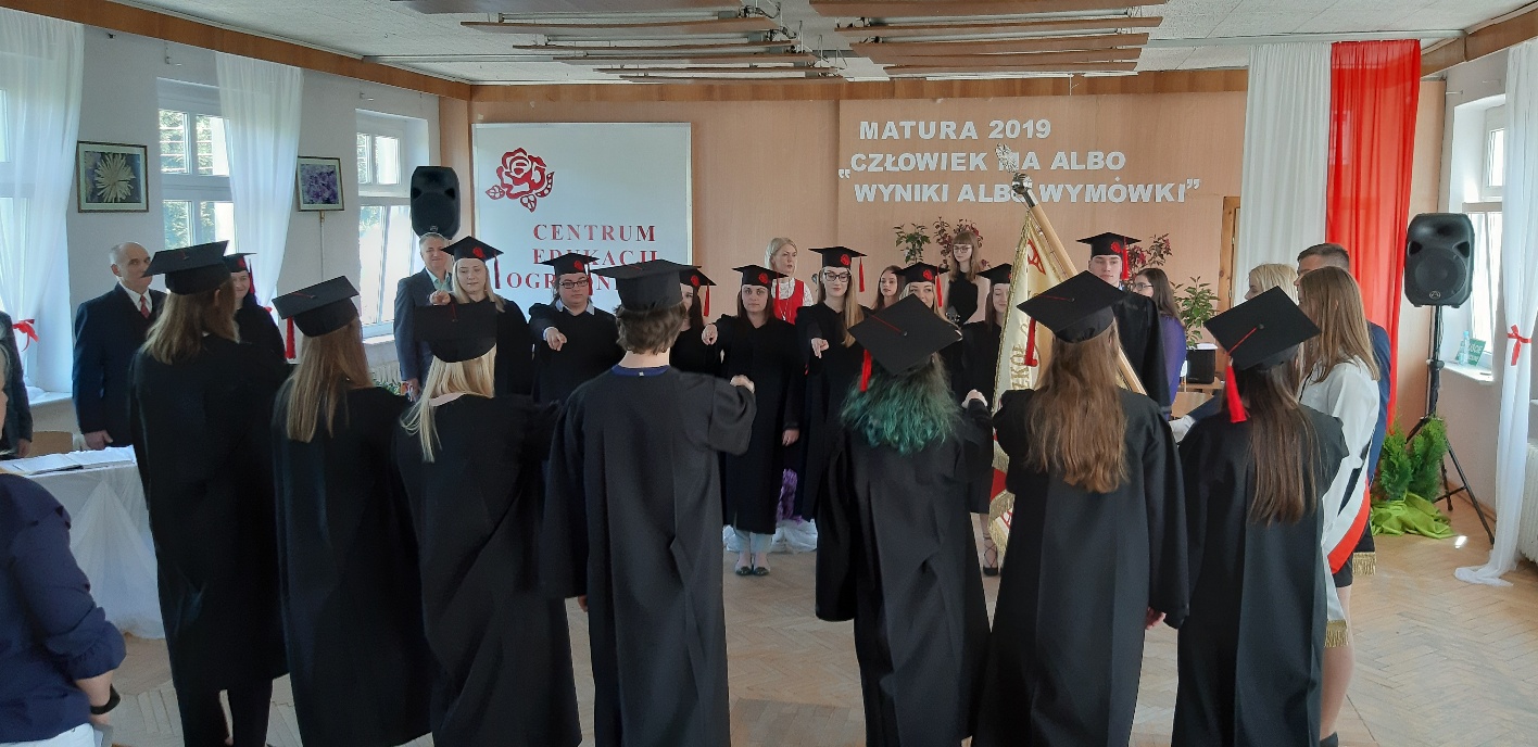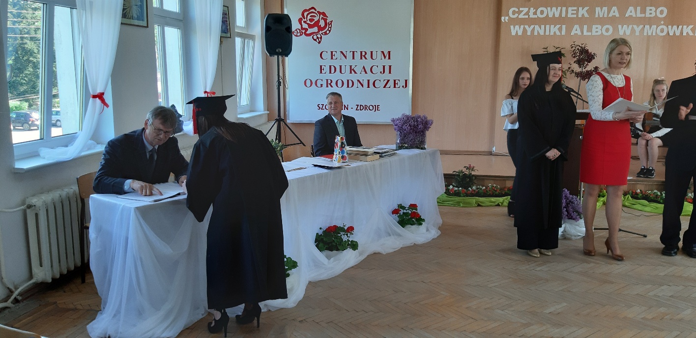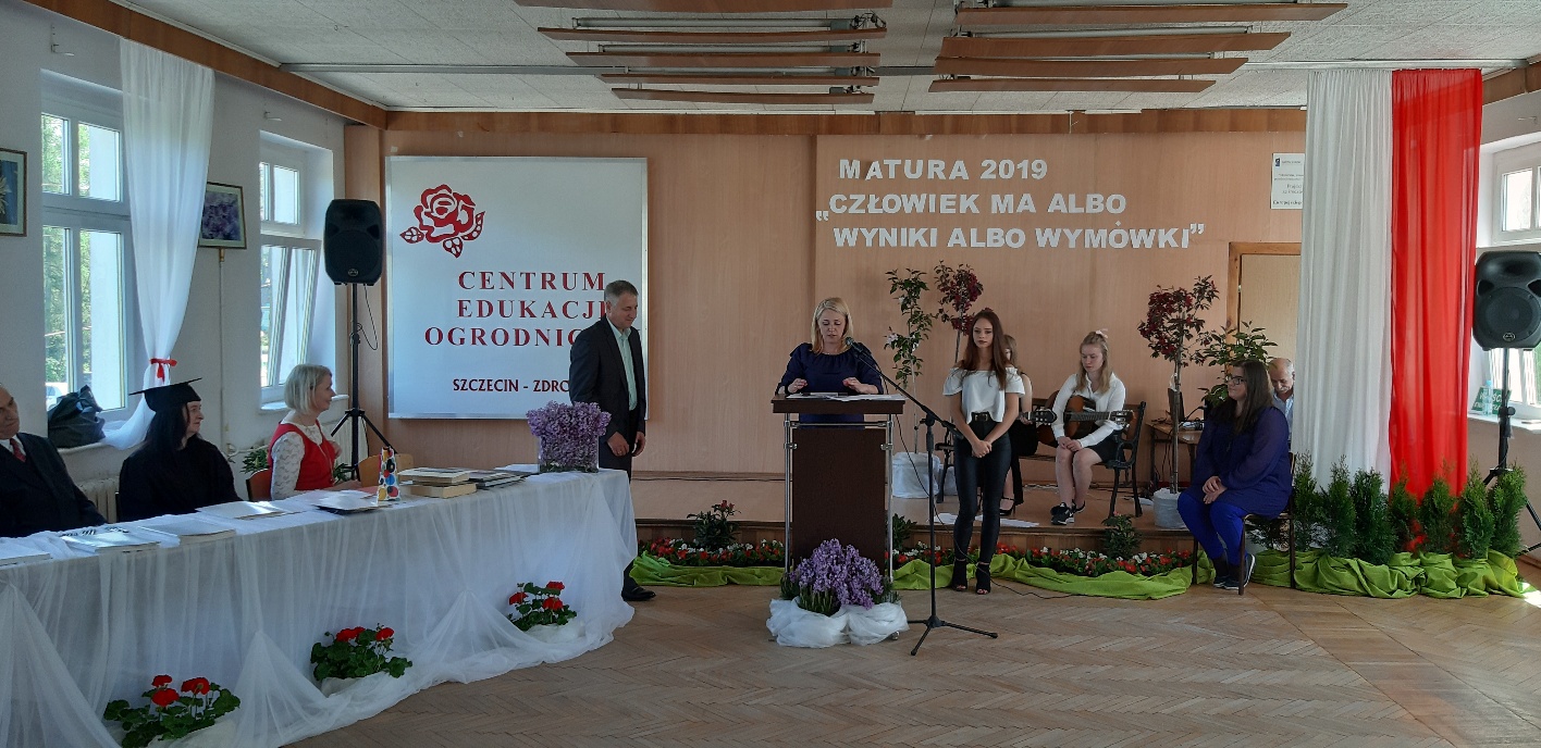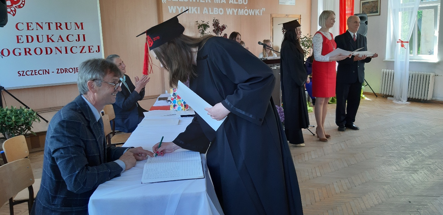 Koniec kwietnia każdego roku to chwile zarówno radości, jak i wspomnień dla przyszłych maturzystów. Niejednemu absolwentowi i nauczycielowi kręci się łezka w oku, a i serca szybciej biją na wspomnienie czterech lat wspólnie spędzonych w murach szkoły i w otoczeniu zieleni parku szkolnego i myśli, że po raz ostatni zasiedli w ławkach szkolnych… I tak 26 kwietnia odbyło się uroczyste pożegnanie ABITURIENTÓW rocznik 2019, wśród których było 7 techników architektury krajobrazu i 10 techników weterynarii. Uroczystość miała szczególny charakter, ponieważ w tym roku szkolnym zostali „wypuszczeni” po raz pierwszy „miłośnicy zwierząt”. Dlatego też Krzysztofowi Dzięciołowskiemu – pierwszemu uczniowi z listy – nadano tytuł honorowego pierwszego absolwenta w zawodzie technik weterynarii. Jak co roku czwartoklasistów żegnali uczniowie klas młodszych, którzy – pod przewodnictwem p. Wojtka Majkowskiego – przygotowali kilka piosenek, a całą imprezę poprowadziła Natalia Leśniak z klasy 3 TW. W trakcie uroczystości przyszli maturzyści złożyli uroczyste ślubowanie, w którym zobowiązali się nie tylko do sławienia imienia szkoły, ale przede wszystkim „do pomnażania” zdobytej wiedzy. Potem wręczono nagrody i podziękowania dla osób wyróżniających się w pracy na rzecz szkoły i klasy: