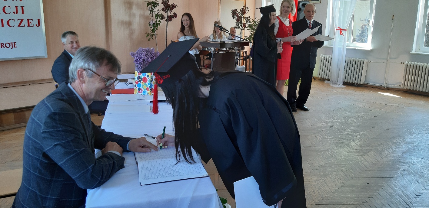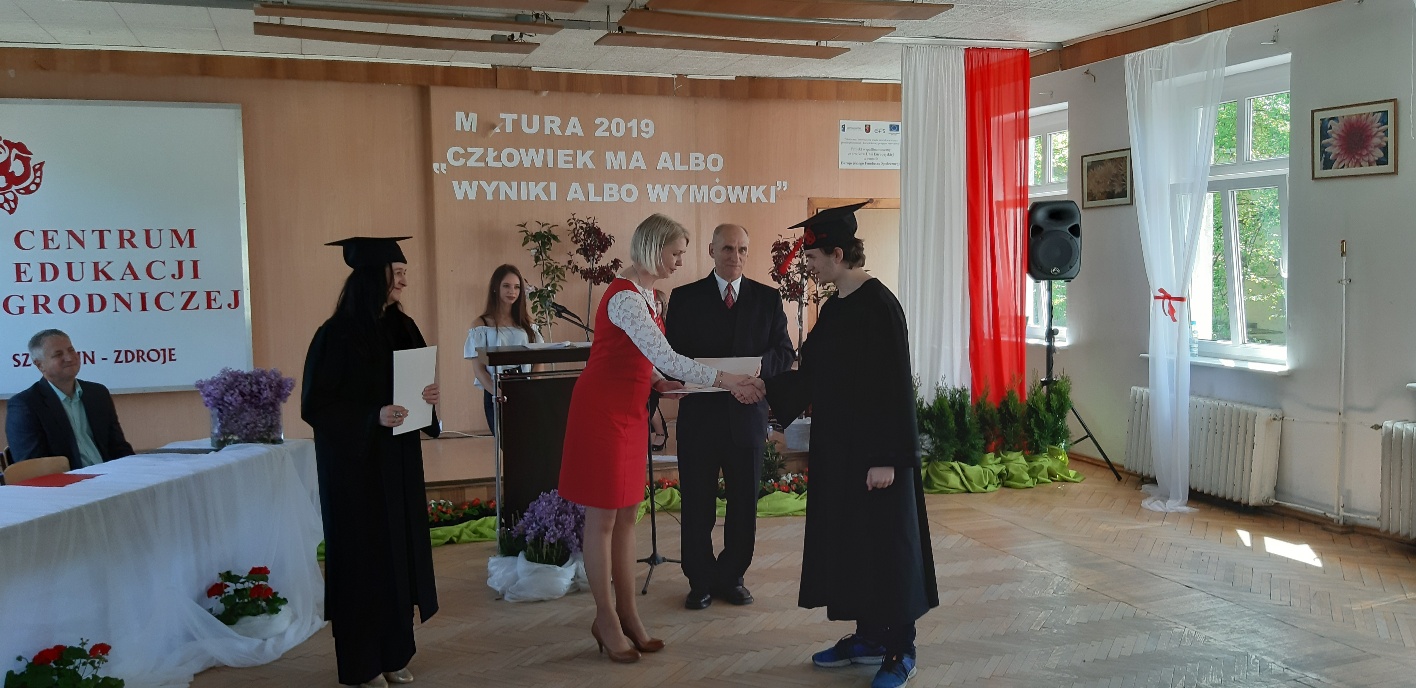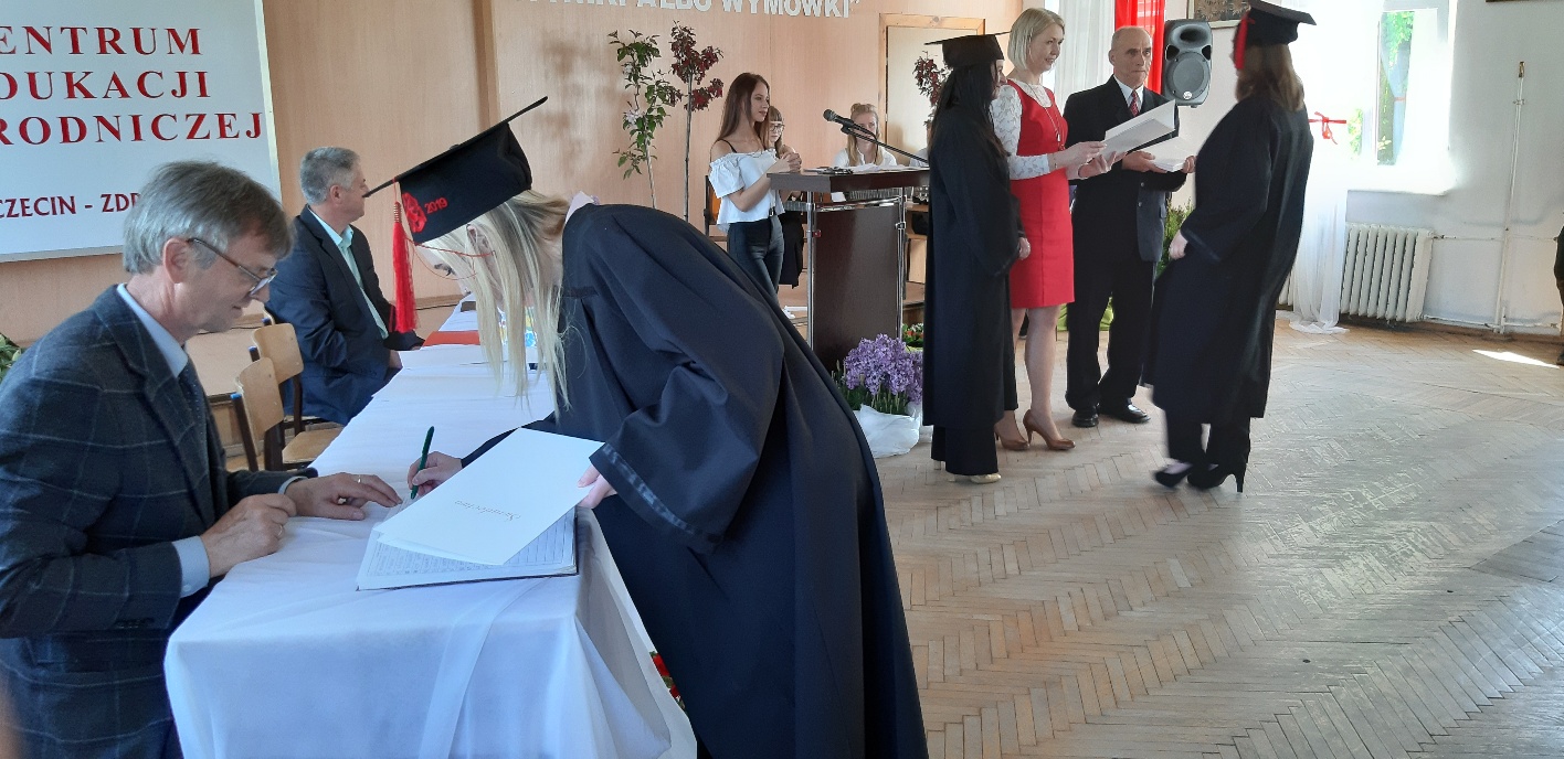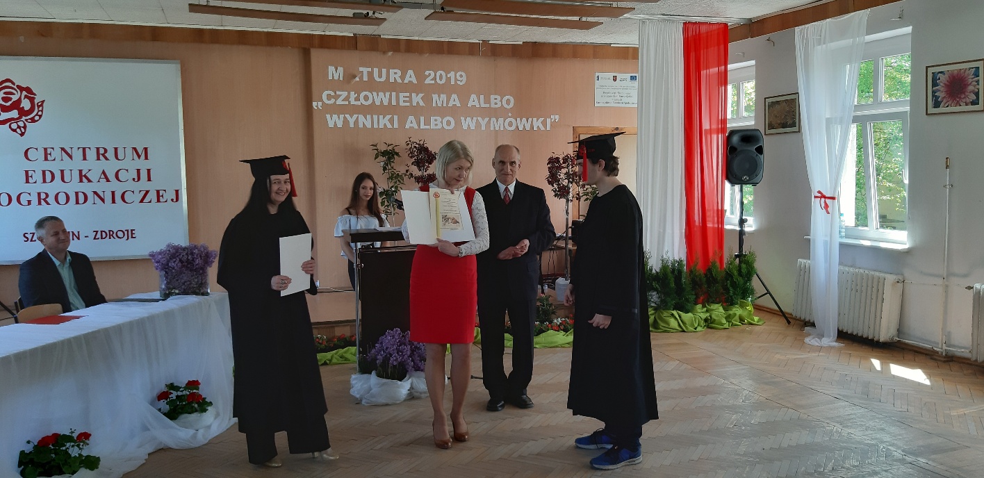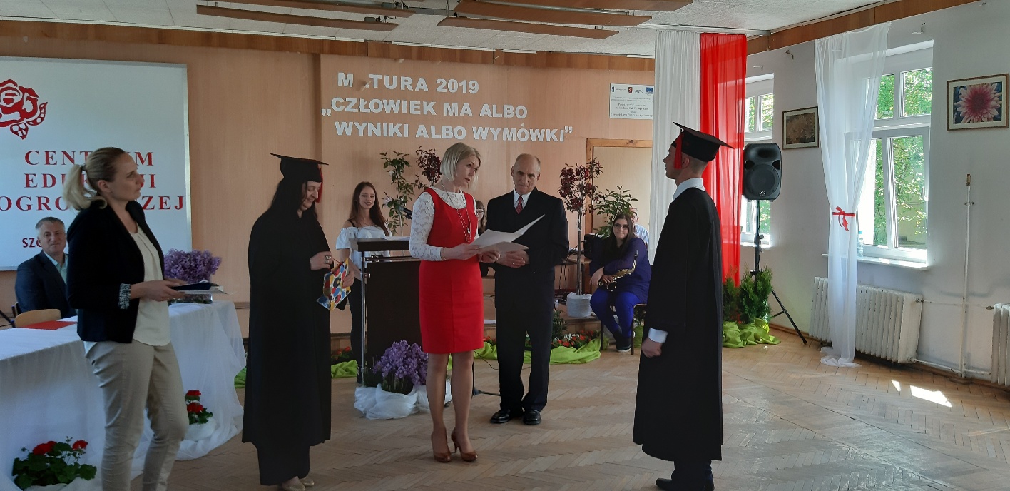Koniec kwietnia każdego roku to chwile zarówno radości, jak i wspomnień dla przyszłych maturzystów. Niejednemu absolwentowi i nauczycielowi kręci się łezka w oku, a i serca szybciej biją na wspomnienie czterech lat wspólnie spędzonych w murach szkoły i w otoczeniu zieleni parku szkolnego i myśli, że po raz ostatni zasiedli w ławkach szkolnych… I tak 26 kwietnia odbyło się uroczyste pożegnanie ABITURIENTÓW rocznik 2019, wśród których było 7 techników architektury krajobrazu i 10 techników weterynarii. Uroczystość miała szczególny charakter, ponieważ w tym roku szkolnym zostali „wypuszczeni” po raz pierwszy „miłośnicy zwierząt”. Dlatego też Krzysztofowi Dzięciołowskiemu – pierwszemu uczniowi z listy – nadano tytuł honorowego pierwszego absolwenta w zawodzie technik weterynarii. Jak co roku czwartoklasistów żegnali uczniowie klas młodszych, którzy – pod przewodnictwem p. Wojtka Majkowskiego – przygotowali kilka piosenek, a całą imprezę poprowadziła Natalia Leśniak z klasy 3 TW. W trakcie uroczystości przyszli maturzyści złożyli uroczyste ślubowanie, w którym zobowiązali się nie tylko do sławienia imienia szkoły, ale przede wszystkim „do pomnażania” zdobytej wiedzy. Potem wręczono nagrody i podziękowania dla osób wyróżniających się w pracy na rzecz szkoły i klasy: