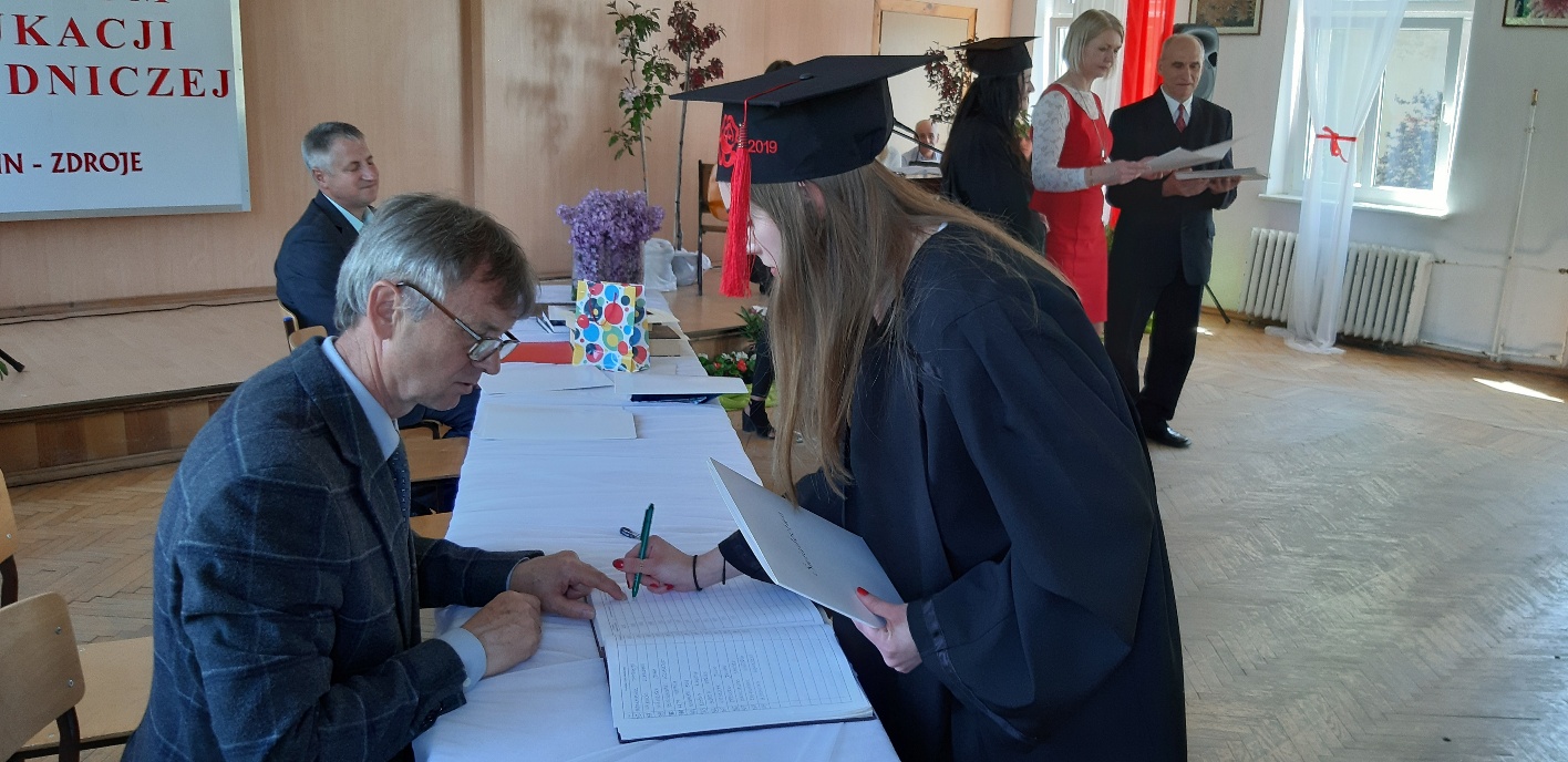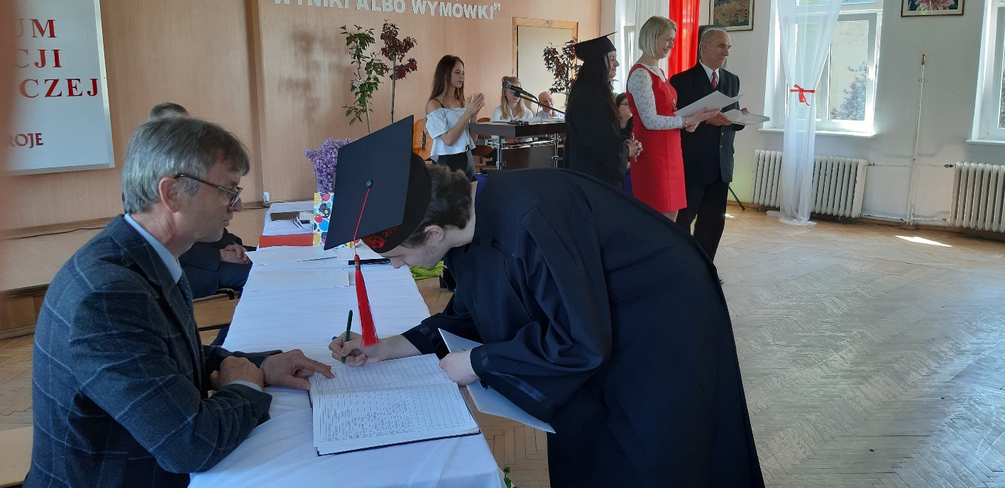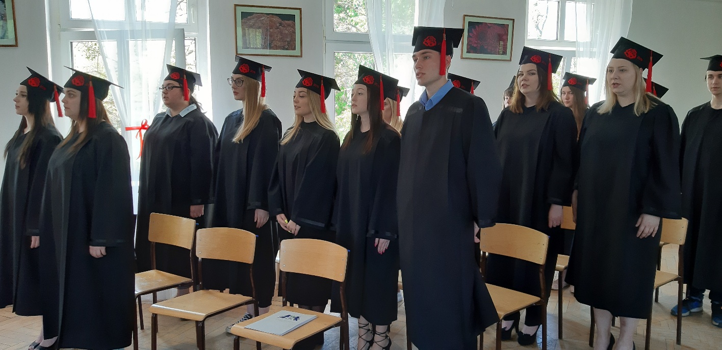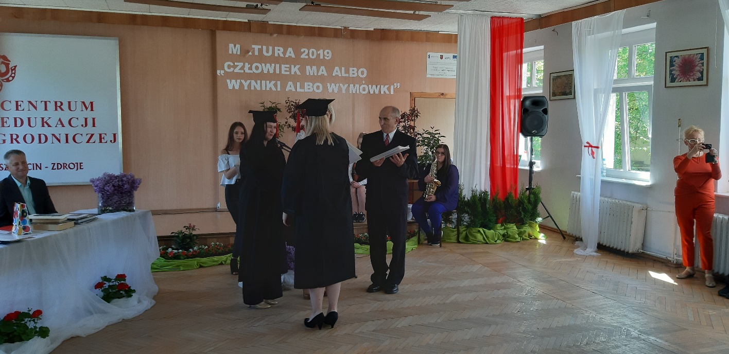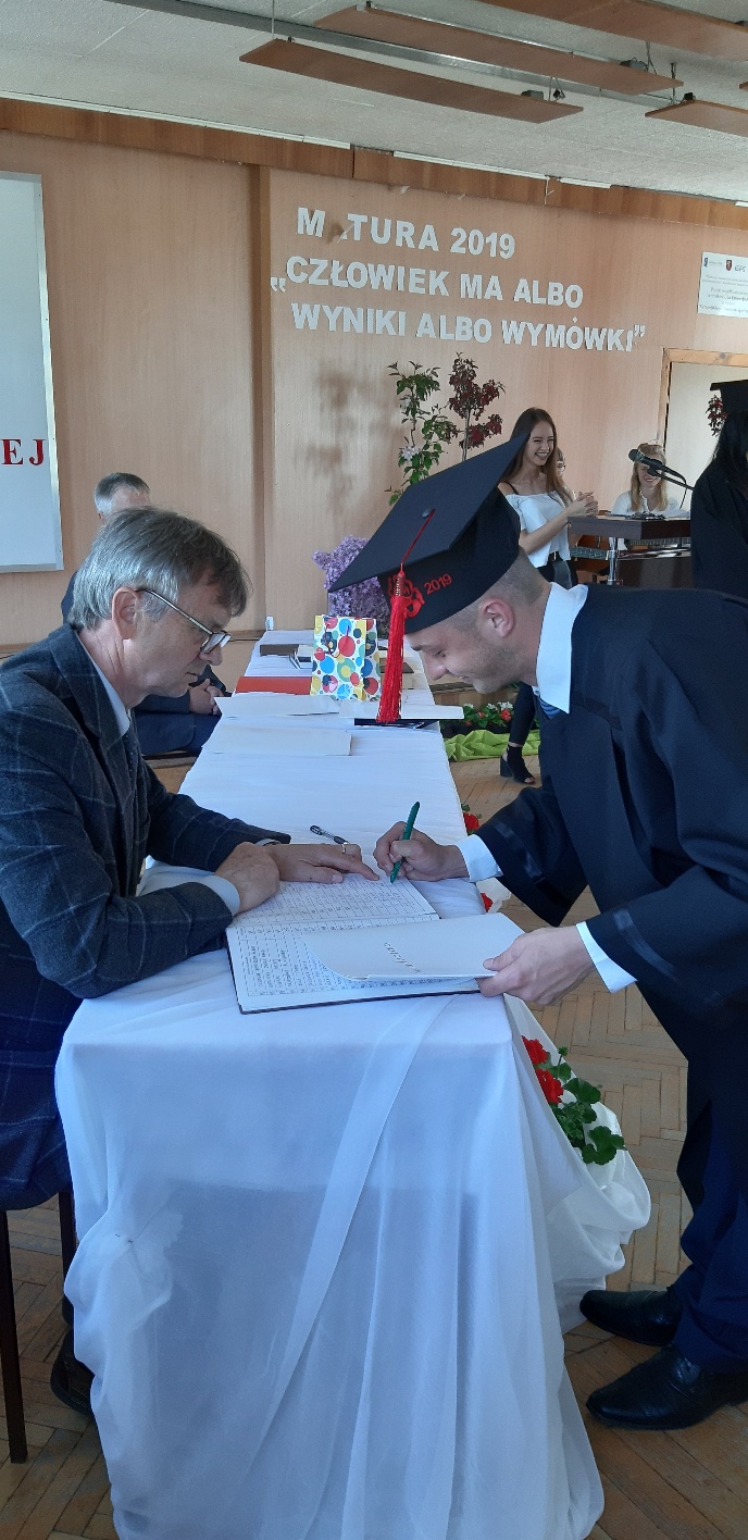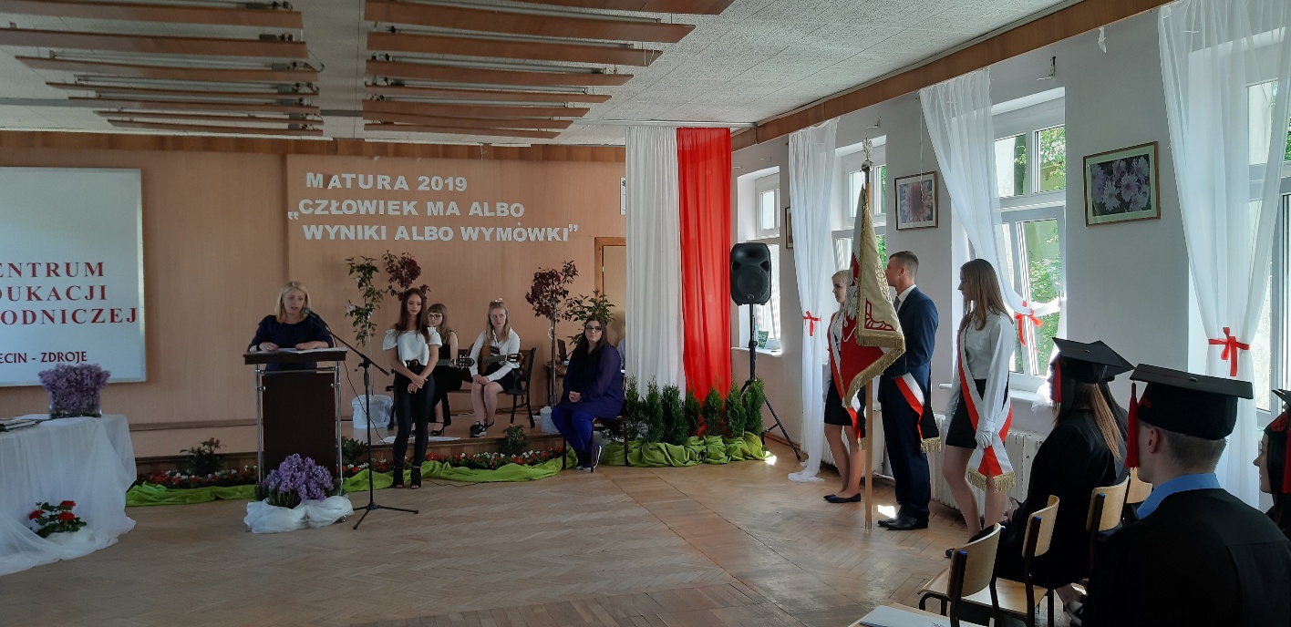 Koniec kwietnia każdego roku to chwile zarówno radości, jak i wspomnień dla przyszłych maturzystów. Niejednemu absolwentowi i nauczycielowi kręci się łezka w oku, a i serca szybciej biją na wspomnienie czterech lat wspólnie spędzonych w murach szkoły i w otoczeniu zieleni parku szkolnego i myśli, że po raz ostatni zasiedli w ławkach szkolnych… I tak 26 kwietnia odbyło się uroczyste pożegnanie ABITURIENTÓW rocznik 2019, wśród których było 7 techników architektury krajobrazu i 10 techników weterynarii. Uroczystość miała szczególny charakter, ponieważ w tym roku szkolnym zostali „wypuszczeni” po raz pierwszy „miłośnicy zwierząt”. Dlatego też Krzysztofowi Dzięciołowskiemu – pierwszemu uczniowi z listy – nadano tytuł honorowego pierwszego absolwenta w zawodzie technik weterynarii. Jak co roku czwartoklasistów żegnali uczniowie klas młodszych, którzy – pod przewodnictwem p. Wojtka Majkowskiego – przygotowali kilka piosenek, a całą imprezę poprowadziła Natalia Leśniak z klasy 3 TW. W trakcie uroczystości przyszli maturzyści złożyli uroczyste ślubowanie, w którym zobowiązali się nie tylko do sławienia imienia szkoły, ale przede wszystkim „do pomnażania” zdobytej wiedzy. Potem wręczono nagrody i podziękowania dla osób wyróżniających się w pracy na rzecz szkoły i klasy: