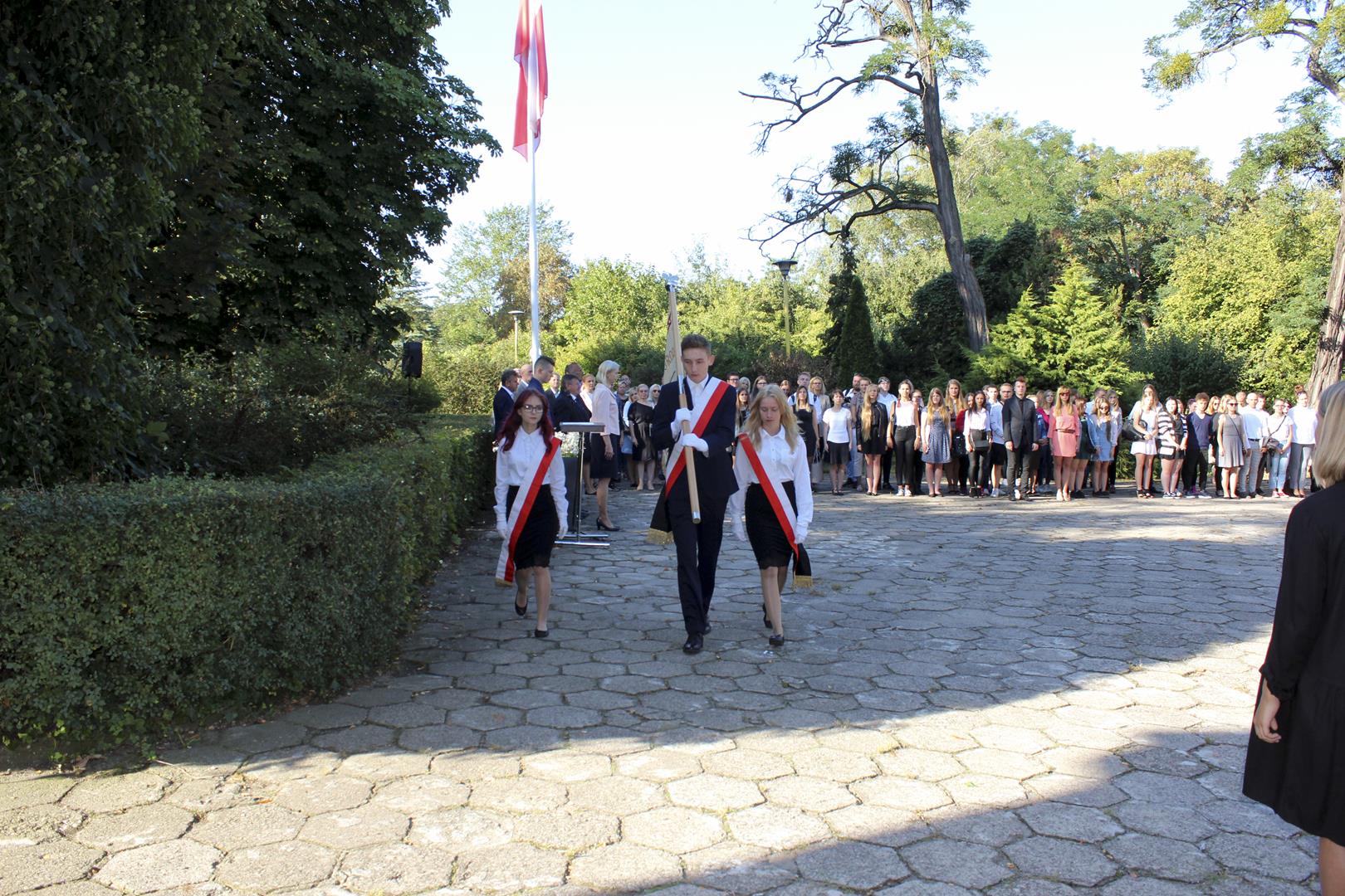 Początek września to czas rozpoczęcia nauki szkolnej. Nauczyciele i wychowawcy z pomysłami na ciekawe zajęcia, uczniowie wypoczęci, uśmiechnięci, z „naładowanymi akumulatorami”, uczestniczyli w inauguracji roku szkolnego 2019/2020. Pierwszoklasistom towarzyszyli rodzice. W uroczystości wzięli również udział pan dr inż. Dariusz Rawicki – Dyrektor Stacji Doświadczalnej Oceny Odmian Centralnego Ośrodka Badania Odmian Roślin Uprawnych w Szczecinie, pan Edward Kosmal – Przewodniczący Zachodniopomorskiej Rady Wojewódzkiej NSZZ Rolników Indywidualnych Solidarność, pani Izabela Sokół – właściciel firmy KRUKOWSKI artykuły ogrodnicze z Radziszewa k. Szczecina, pan Hubert Nawojski – Przewodniczący Rady Rodziców. Po przywitaniu gości, pani Lila Pławińska – Dyrektor Centrum Edukacji Ogrodniczej przypomniała, że 1 września to tragiczna data w historii, to data wybuchu II wojny światowej. Dlatego też minutą ciszy uczczono pamięć ofiar, a delegacja złożyła wiązankę biało-czerwonych róż pod pomnikiem Saperów Wojska Polskiego, mieszczącym się na terenie szkoły. Następnie zebrani wysłuchali szczególnych życzeń z okazji rozpoczęcia roku szkolnego, które dla społeczności szkolnej wygłosił Jan Krzysztof Ardanowski – Minister Rolnictwa i Rozwoju Wsi. W dalszym swoim wystąpieniu dyrektor stwierdziła: „przed nami kolejny ważny rok dla polskiej edukacji. W tym roku bowiem w szkołach średnich po raz pierwszy rozpoczną naukę absolwenci ośmioletnich szkół podstawowych, a ostatni – wychowankowie gimnazjów. Dla szkolnictwa zawodowego, w szczególności branży rolniczej jest to istotny rok ze względu na konieczność optymalnego kształcenia przyszłych producentów roślin i zwierząt, hodowców, architektów krajobrazu, mechaników i operatorów maszyn ogrodniczych i rolniczych w dobie przemian klimatycznych. Dla naszej Placówki jest to również ważny rok!” Po tych słowach szczególnie ciepłe powitanie skierowała do pierwszoklasistów, a na zakończenie przytoczyła sentencję Jacka Canfielda i Marka Victora Hansena: „Człowiek ma w życiu albo wymówki, albo wyniki”, życząc wszystkim udanego roku szkolnego, powodzenia, spełnienia marzeń i osiągnięcia postawionych celów.