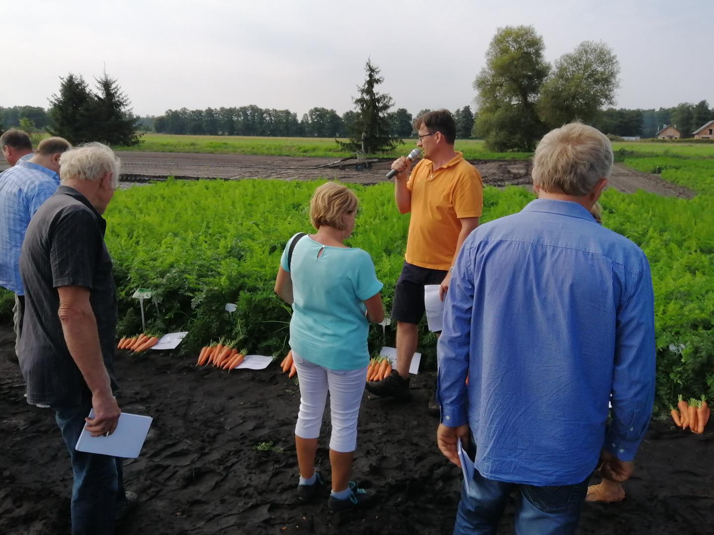 Głównym punktem tegorocznego spotkania polowego była prezentacja odmian warzyw korzeniowych (selera, marchwi, buraka ćwikłowego) na poletkach badawczych Stacji Doświadczalnej Oceny Odmian przez firmy nasienne: Hazera, PNOS Ożarów Mazowiecki, Spójnia Nochowo. Dodatkową bardzo ważną wartością dodaną spotkania – zwłaszcza dla producentów ogrodniczych środowiska lokalnego biorących w nim udział – były warsztaty z rozpoznawania szkodników marchwi, buraka ćwikłowego i selera oraz nowych zagrożeń w uprawach, które poprowadziła dr Maria Rogowska z Państwowej Wyższej Szkoły Zawodowej w Skierniewicach.