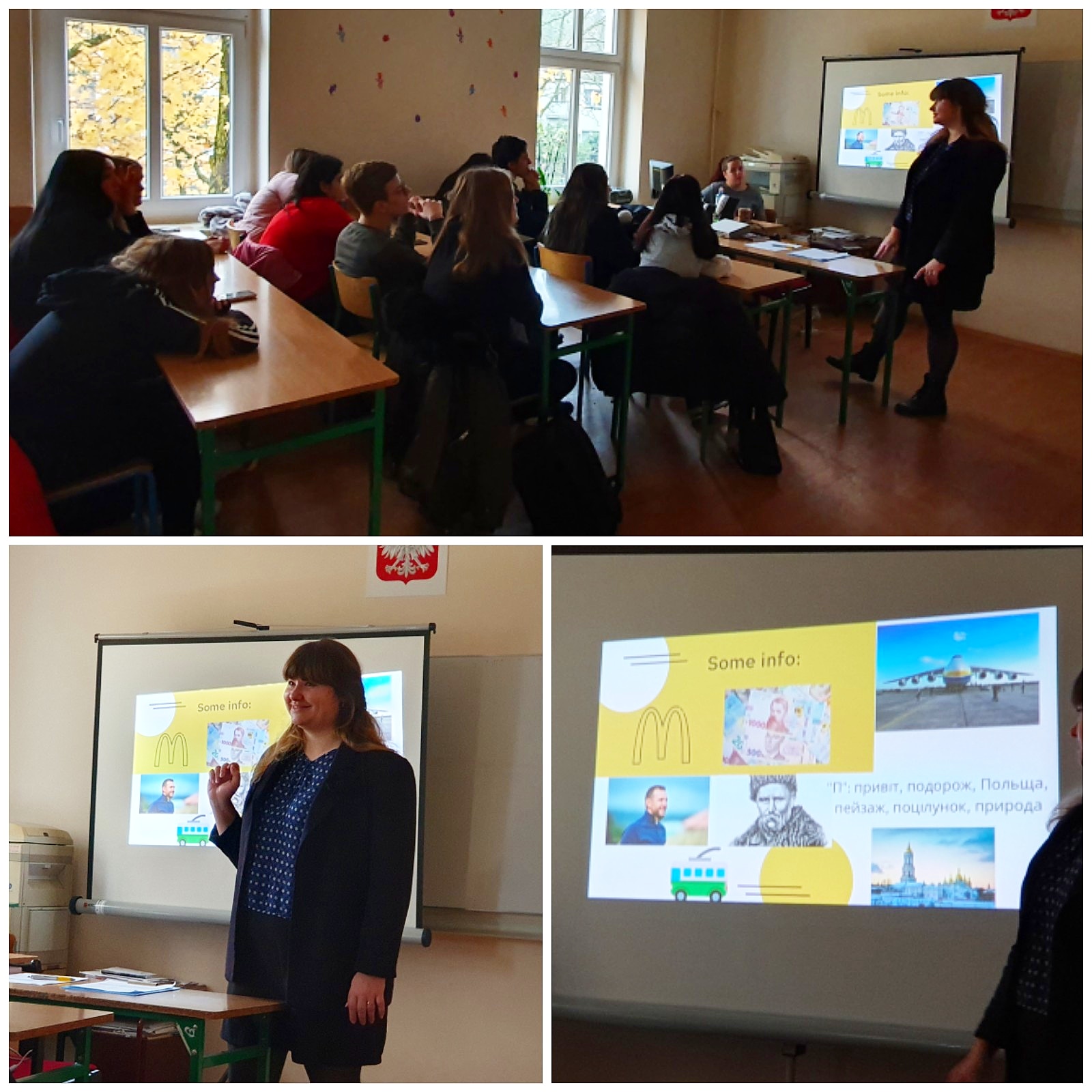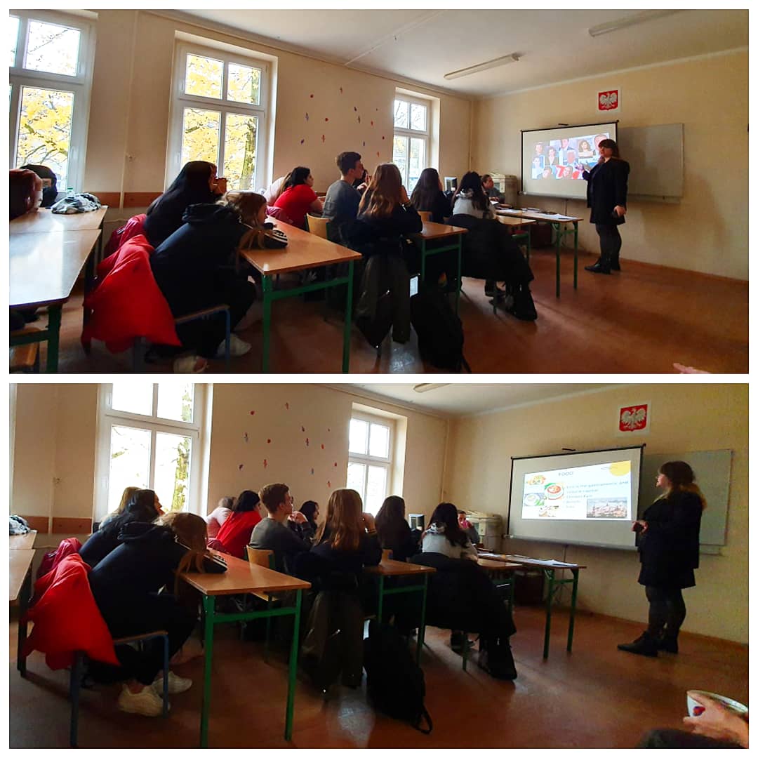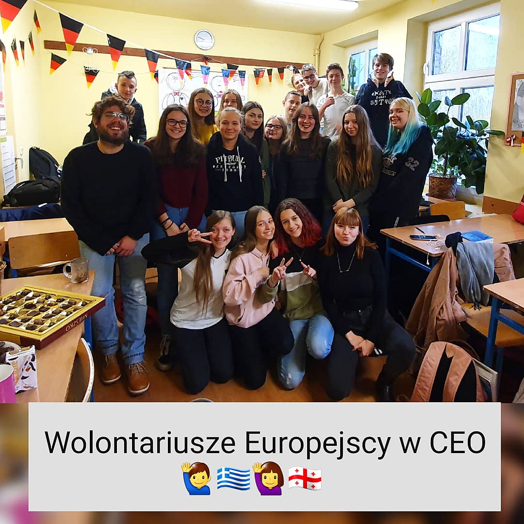 22 oraz 25 listopada 2019 roku wyżej wymieniona czwórka wolontariuszy była gościem Centrum Edukacji Ogrodniczej oraz spotkała się z uczniami klas pierwszych. Nasi goście poprowadzili dla każdej klasy z osobna bardzo ciekawe, dwugodzinne zajęcia. Podczas tego spotkania opowiadali czym jest wolontariat i dlaczego warto włączyć się do działania, podając przy tym swoje przykłady. Wyjaśniali też na czym polega wolontariat europejski (EVS), a na „deser” opowiadali ciekawostki o swoich krajach i kulturach. Wolontariusze .przedstawiali uczniom ciekawe i bogate w treści prezentacje multimedialne swoich krajów, uczyli zwrotów we własnych językach narodowych, po angielsku opowiadali o ciekawostkach historycznych, geograficznych, kulturowych, o edukacji czy tradycyjnych specjałach kulinarnych danego kraju.