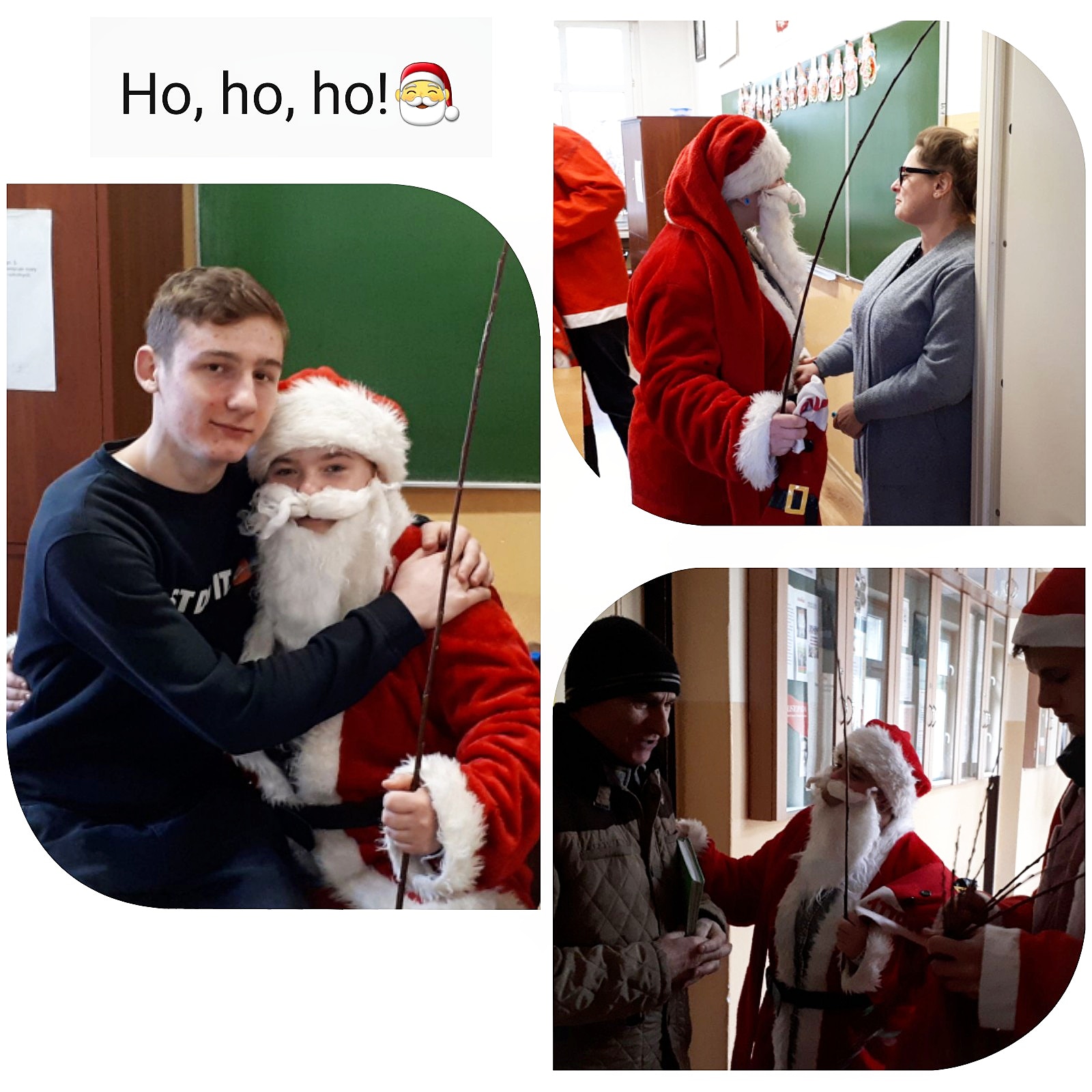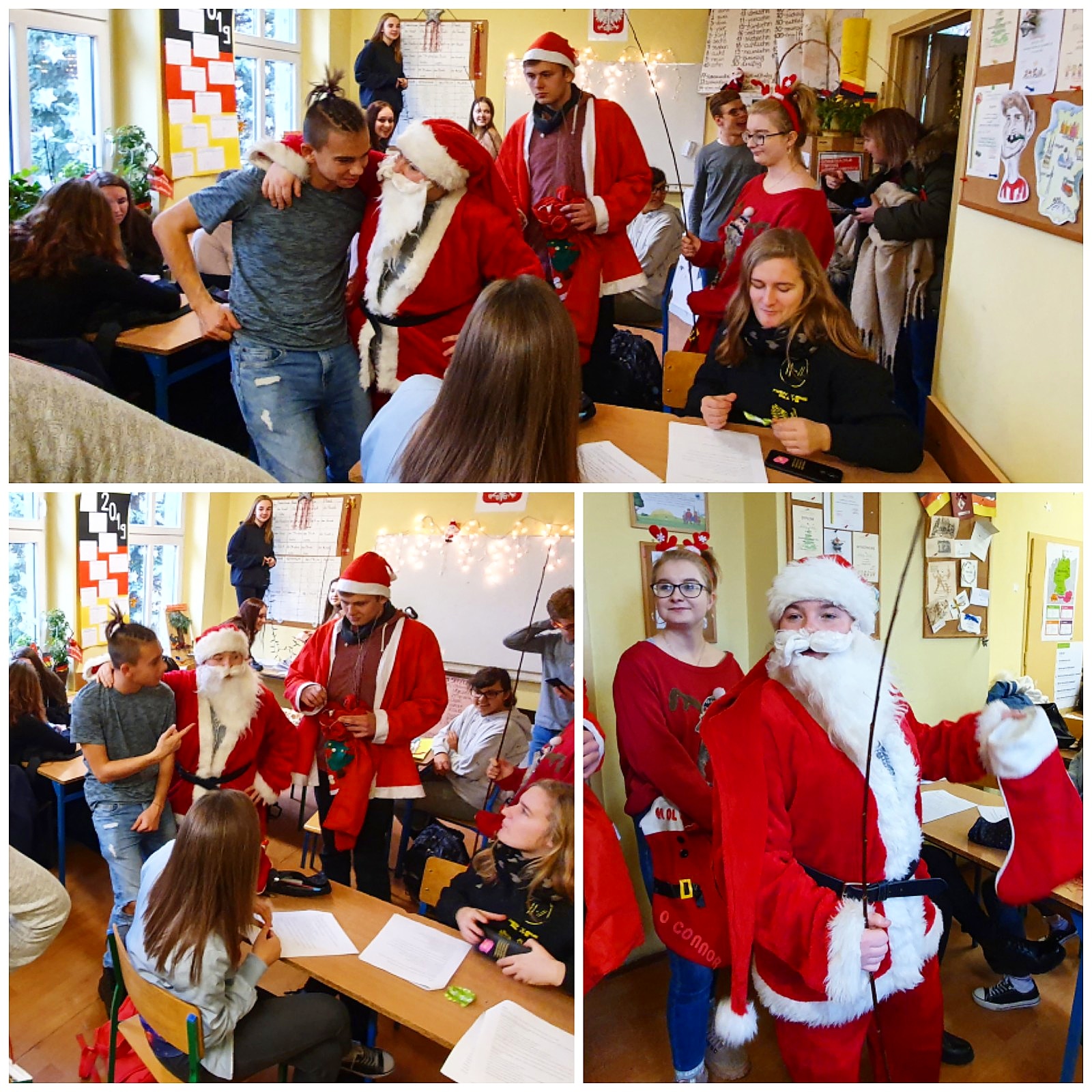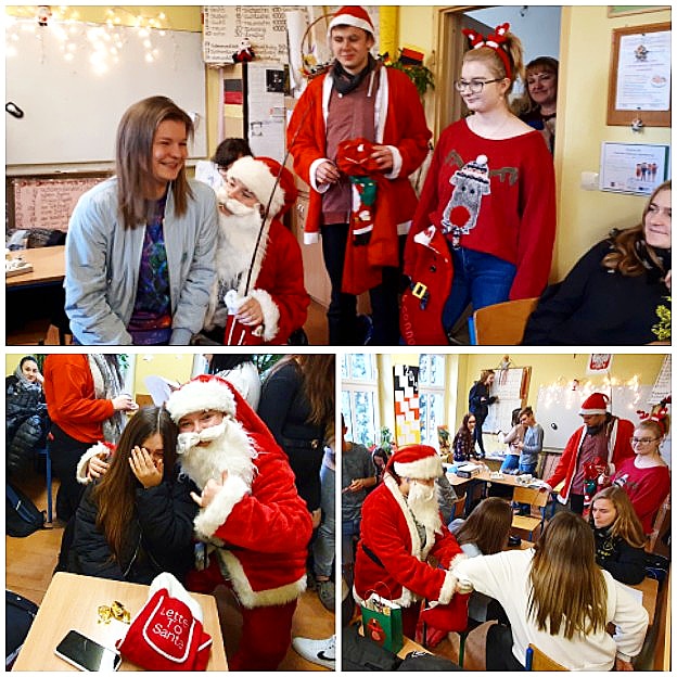 Jak co roku, mimo ciepłej aury i braku białego puchu, tak i tym razem, 6 grudnia do naszej szkoły zawitał Święty Mikołaj. Jest to dobry znak, świadczący o tym, że zarówno uczniowie naszej szkoły, jak i grono pedagogiczne było grzeczne i zasłużyło na drobne upominki i słodkości. Nasz GOŚĆ z Laponii odwiedził wszystkie klasy, nie zapomniał również o dyrekcji, nauczycielach oraz pracownikach administracji, którym wręczał czekoladowe cukierki i – żeby nie było za słodko – rózgi!:)) Wizyta ta wywołała ogrom przeżyć i uśmiechu na twarzach, zarówno uczniów, jak i nauczycieli oraz wprowadziła naszą szkołę w wyjątkowo świąteczny nastrój.
