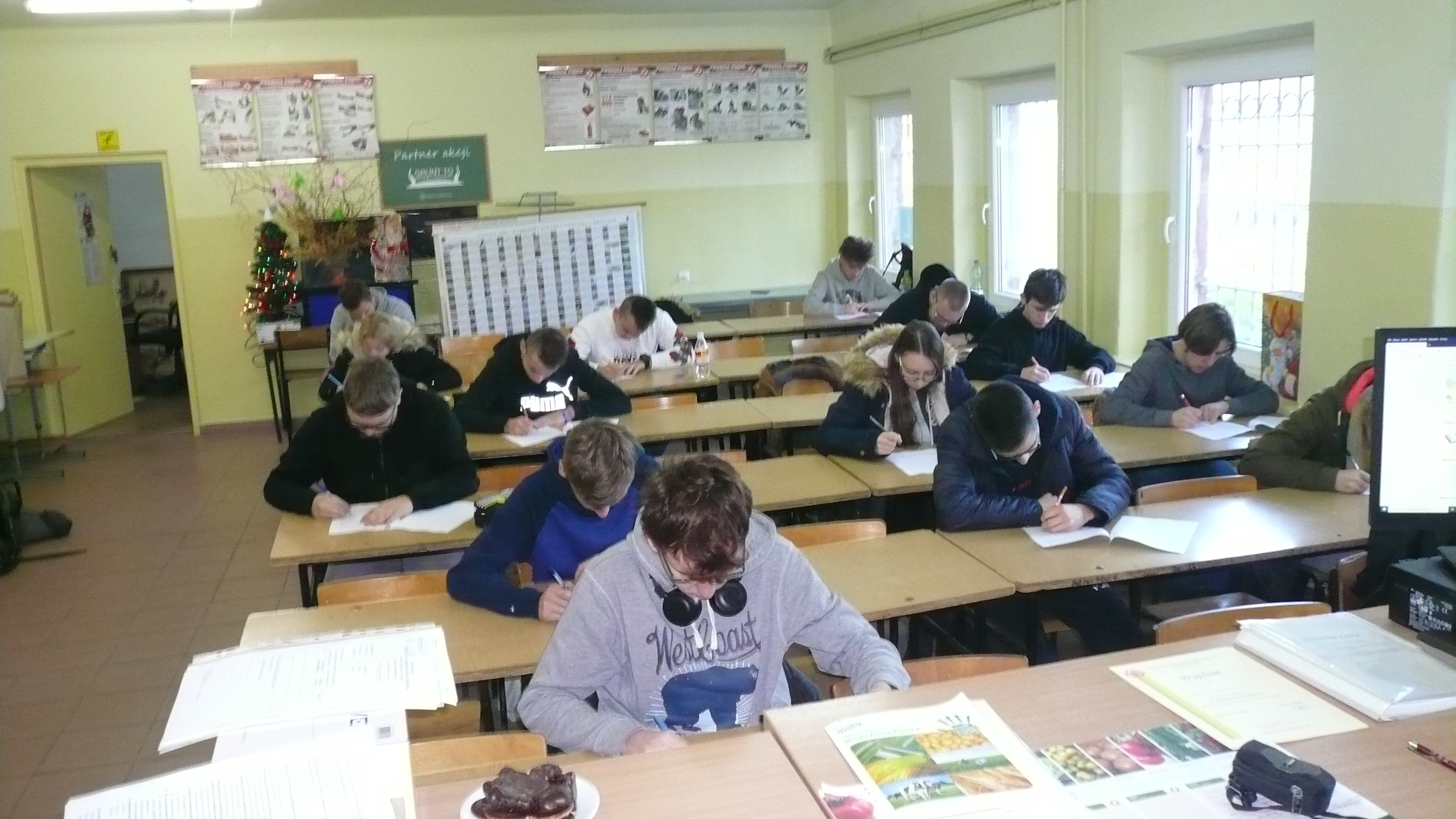 Etap szkolny polegał na rozwiązaniu testu jednokrotnego wyboru opracowanego przez przewodniczącą komisji.