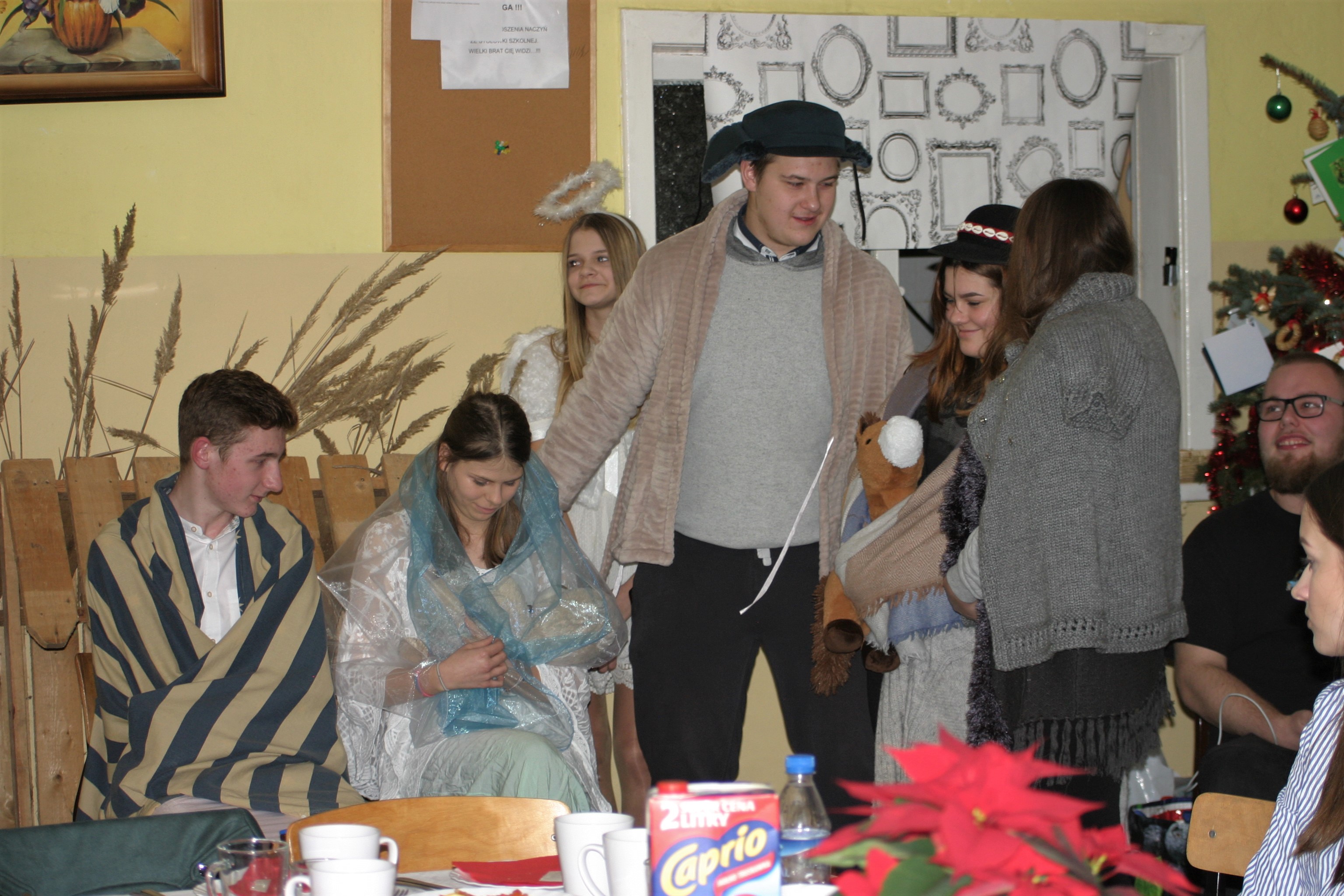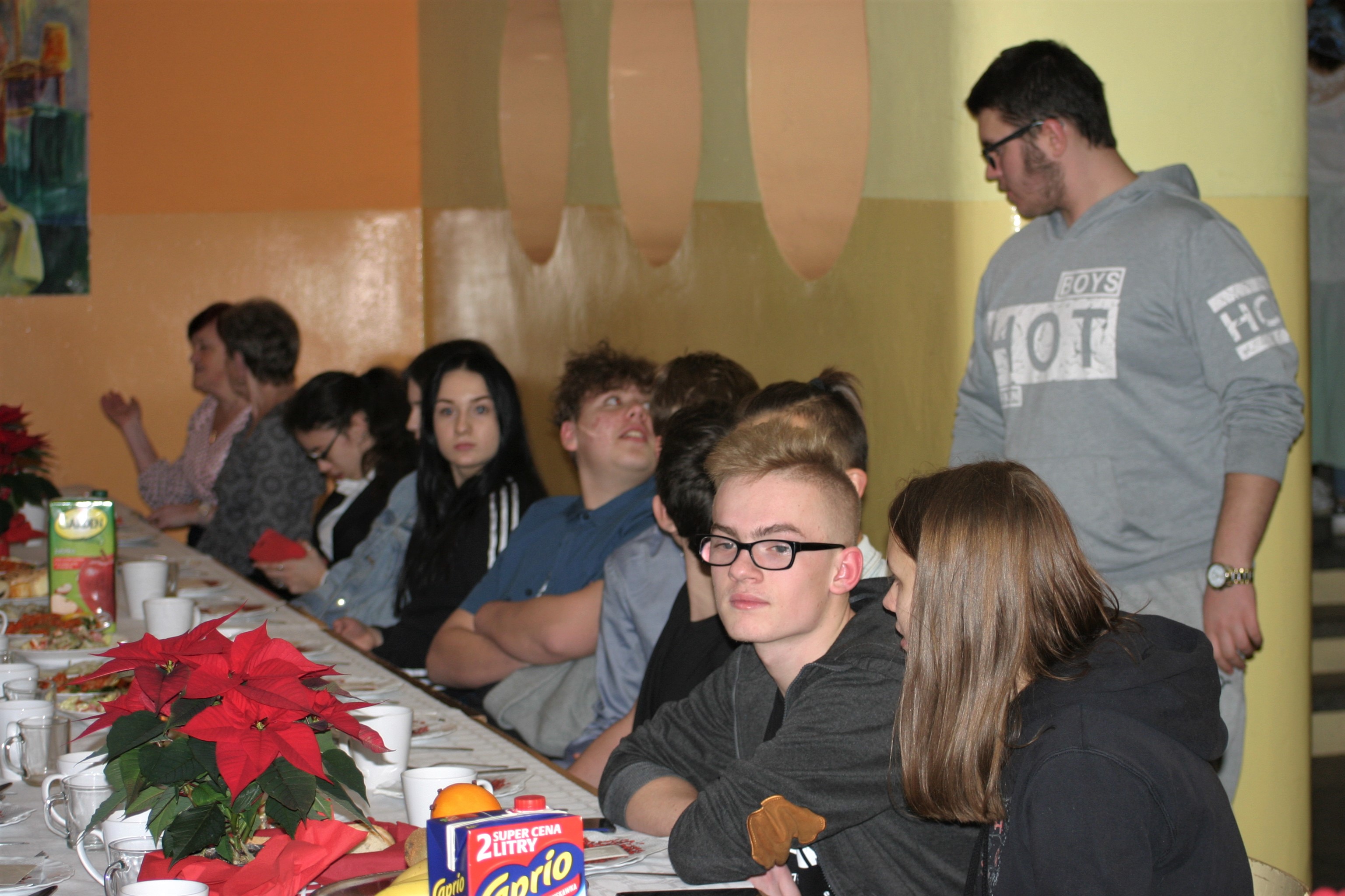 Dnia 17 grudnia 2019 w naszej szkole wychowankowie i wychowawcy internatu przygotowali kolację wigilijną, na której mieliśmy przyjemność gościć tradycyjnie podopiecznych Caritas Polska. Młodzież naszej szkoły z wielką radością i zaangażowaniem przygotowała świąteczne dekoracje, które zdobiły suto zastawiony stół. Jak co roku nie zabrakło gości – przedstawicieli Caritas Polska, Rady Osiedla „Zdroje”. Kolację rozpoczął ksiądz Łukasz Klimek z parafii pw. Świętego Ducha uroczystym odczytaniem fragmentu Pisma Świętego. Następnie wychowankowie internatu zaprezentowali bożonarodzeniowe jasełka. Oprawę artystyczną i scenograficzną przedstawienia przygotowała jak co roku pani Anna Krakowiak. Tradycyjnie młodzież w odpowiednio dobranych strojach wspaniale ukazała radość z narodzin Pana Jezusa.