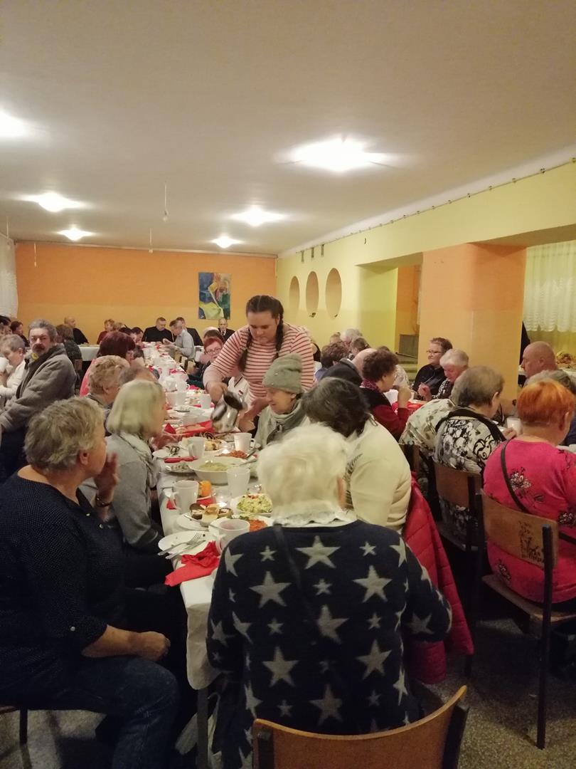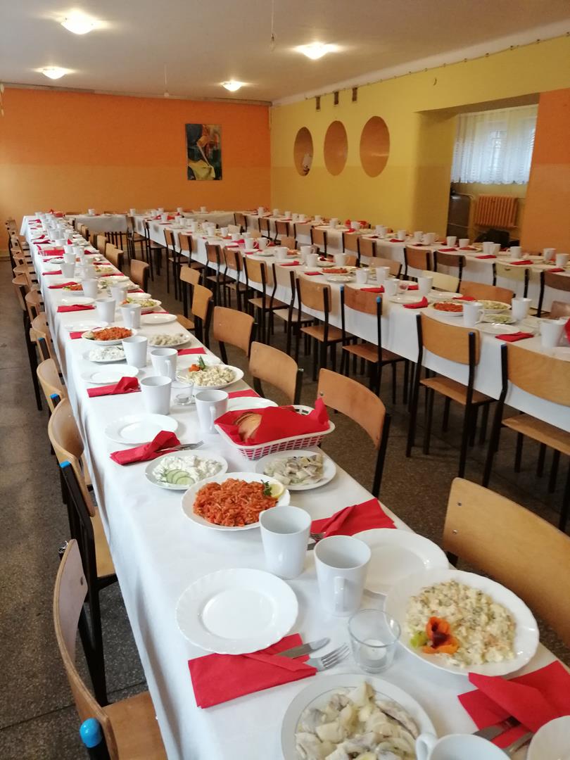 Organizacja kolacji dla osób najbardziej potrzebujących stała się tak nierozerwalnym elementem funkcjonowania naszej placówki, że już w listopadzie Pani Magda Ufnal – koordynatorka wydarzenia – ma „pełną obsadę” chętnych do pomocy uczniów i nauczycieli. Przygotowanie kolacji dla blisko 100 osób wymaga koordynacji działań osób odpowiedzialnych za wykonanie wystroju, ustawienie stołów, krzeseł, nakrycie do stołu, przygotowanie potraw, obsługę gości oraz przygotowanie programu artystycznego i… w końcu posprzątanie, jak po kolacji wigilijnej w każdym domu. Z przyjemnością angażujemy się w tę inicjatywę, która daje możliwość z jednej strony, kształtowania postawy empatii wśród uczniów naszej placówki, z drugiej zaś – możliwość integrowania środowiska nauczycieli i uczniów poprzez wspólne działanie.