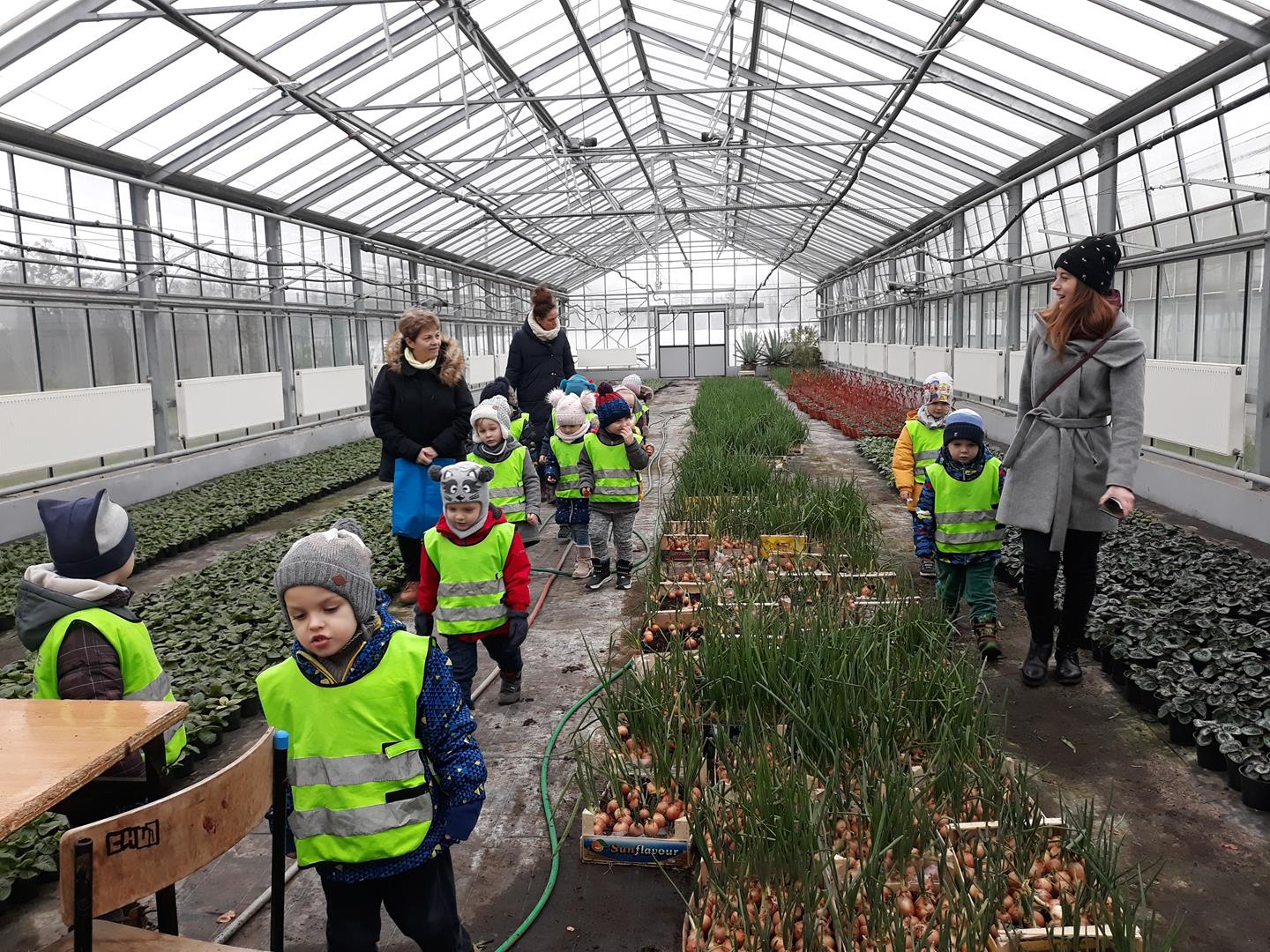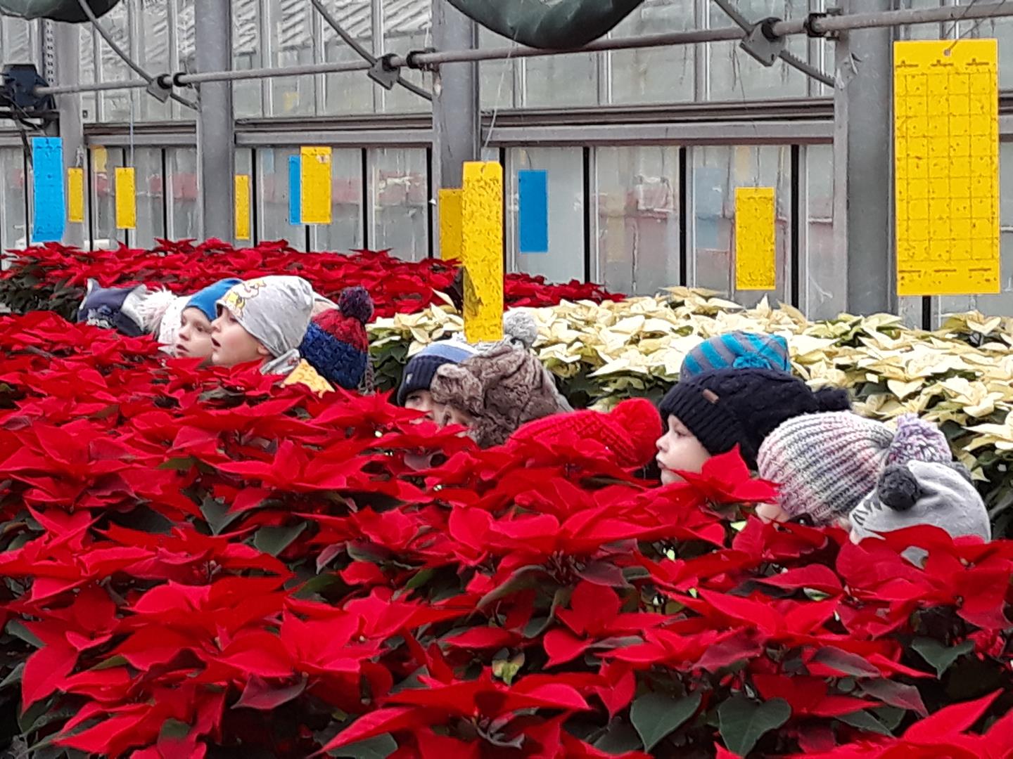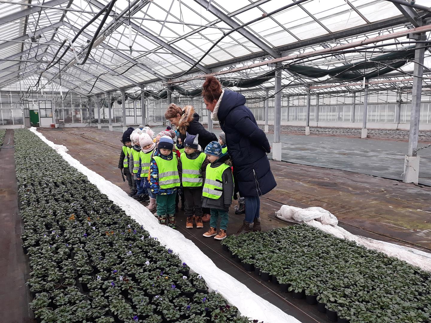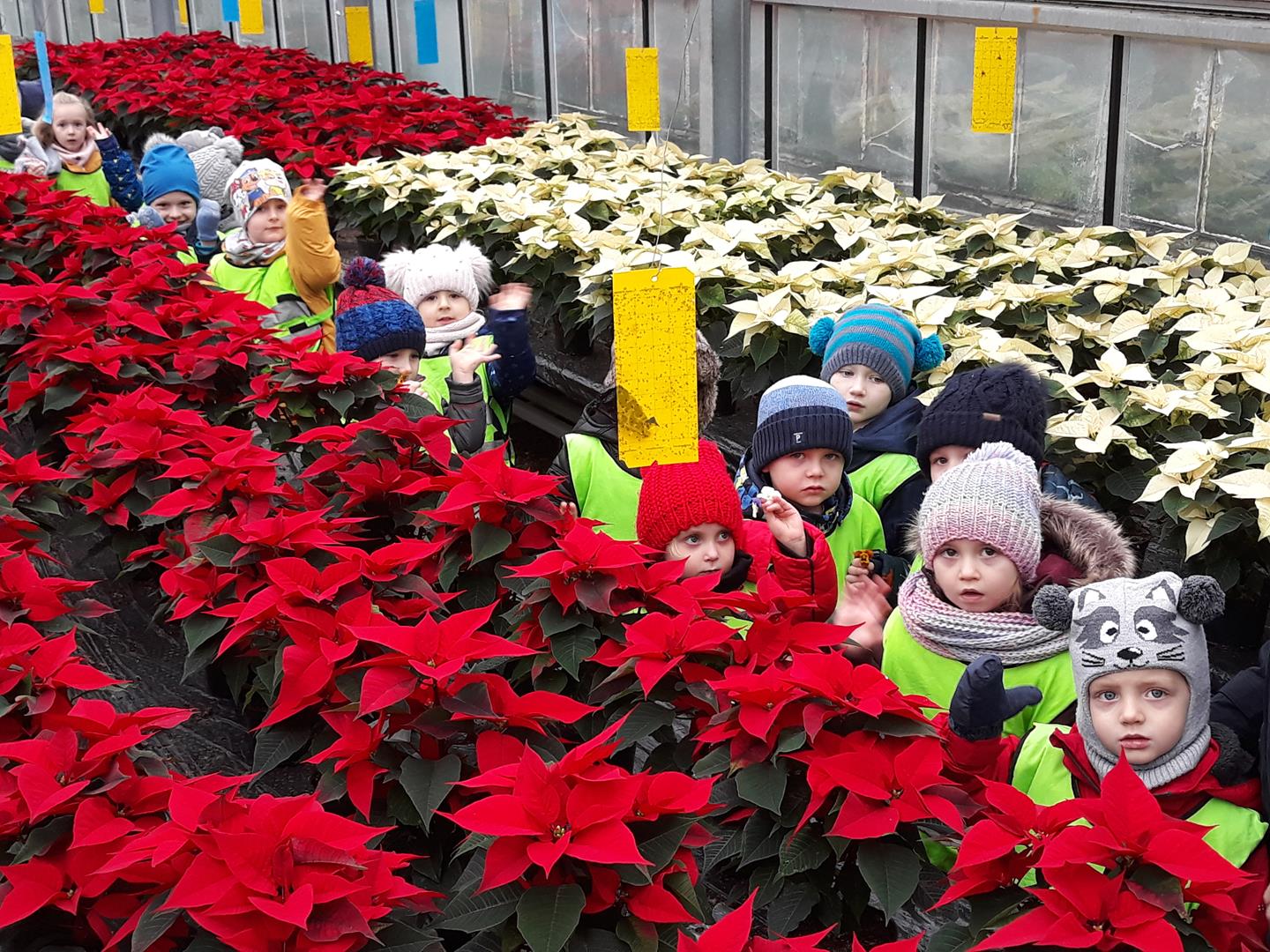 Przedszkolaki z Niepublicznego Przedszkola Artystyczno – Językowego ,,TUPTUŚ” odwiedziły nas powtórnie. Tym razem zwiedzały nasze szklarnie zimą. Obiekty szklarniowe o tej porze roku też mają swoje tajemnice. Nasi mali eksperci ogrodnictwa dowiedzieli się, że roślinki też odpoczywają, czyli zimują. Atrakcją okazały się uprawy bratka i prymuli oraz naszej królowej zimy – poinsecji. Pytań dotyczących natomiast samej budowy szklarni oraz urządzeń znajdujących się wewnątrz była cała masa.