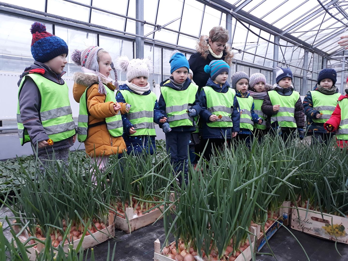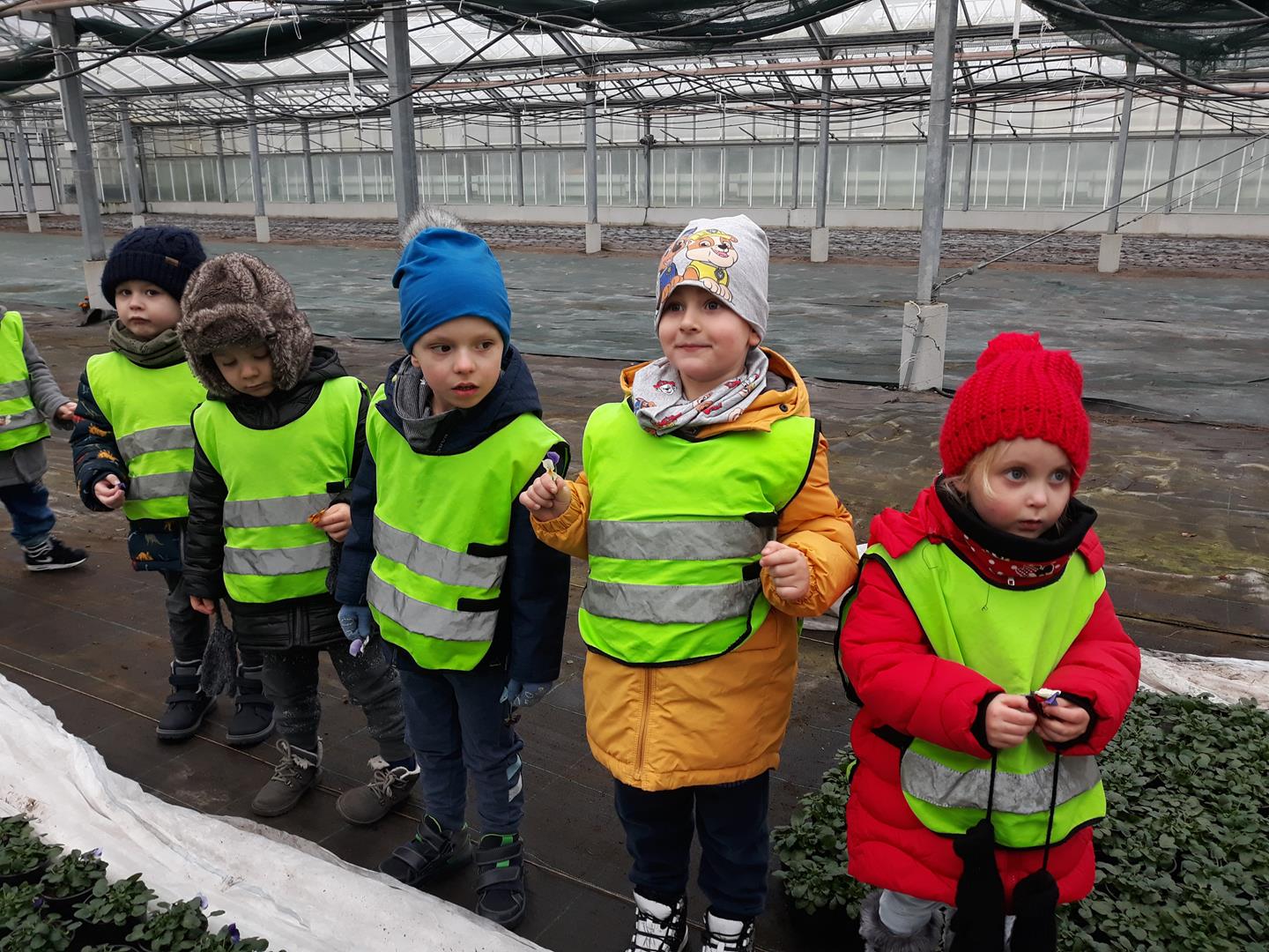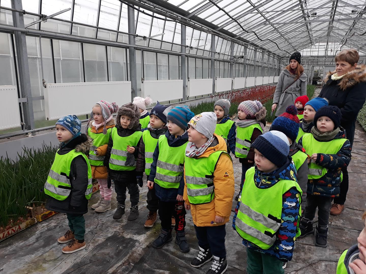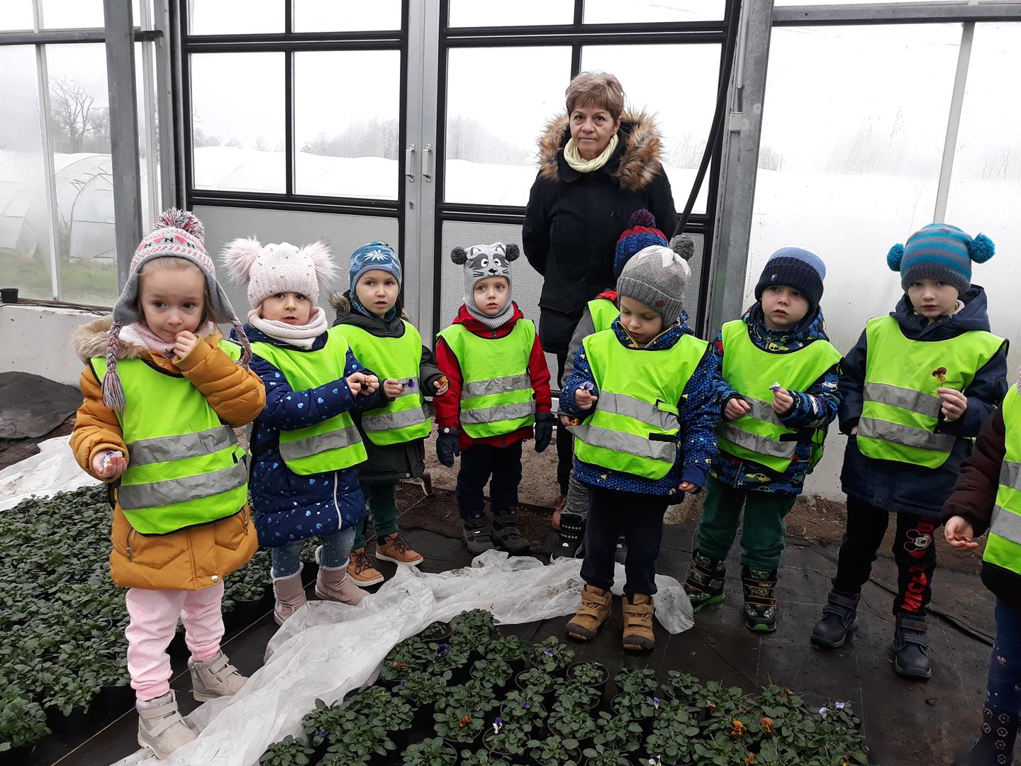 Przedszkolaki z Niepublicznego Przedszkola Artystyczno – Językowego ,,TUPTUŚ” odwiedziły nas powtórnie. Tym razem zwiedzały nasze szklarnie zimą. Obiekty szklarniowe o tej porze roku też mają swoje tajemnice. Nasi mali eksperci ogrodnictwa dowiedzieli się, że roślinki też odpoczywają, czyli zimują. Atrakcją okazały się uprawy bratka i prymuli oraz naszej królowej zimy – poinsecji. Pytań dotyczących natomiast samej budowy szklarni oraz urządzeń znajdujących się wewnątrz była cała masa.