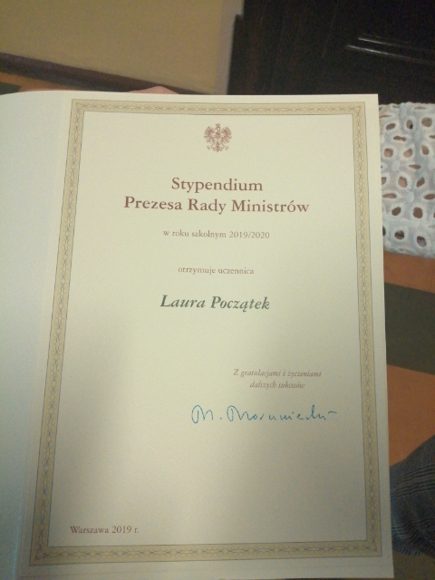 6 lutego w auli I Liceum Ogólnokształcącego w Szczecinie odbyła się uroczysta Gala Wręczenia Dyplomów Stypendystom Prezesa Rady Ministrów. Osobą, która uzyskała najwyższą średnią ocen w Technikum Ogrodniczym w Centrum Edukacji Ogrodniczej w Szczecinie w roku szkolnym 2018/2019, jest Laura Początek, uczennica II klasy w zawodzie technik weterynarii. Laura odebrała dyplom oraz gratulacje z rąk Zachodniopomorskiego Kuratora Oświaty – pani Magdaleny Zarębskiej-Kuleszy oraz Podsekretarza Stanu w Ministerstwie Edukacji Narodowej – pana Macieja Stanisława Kopcia.