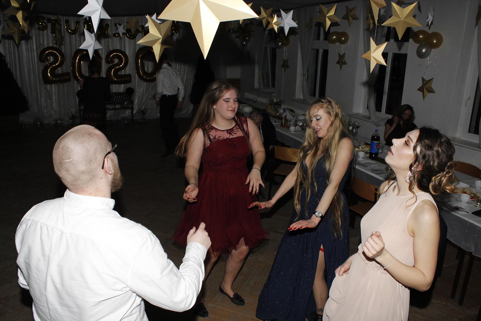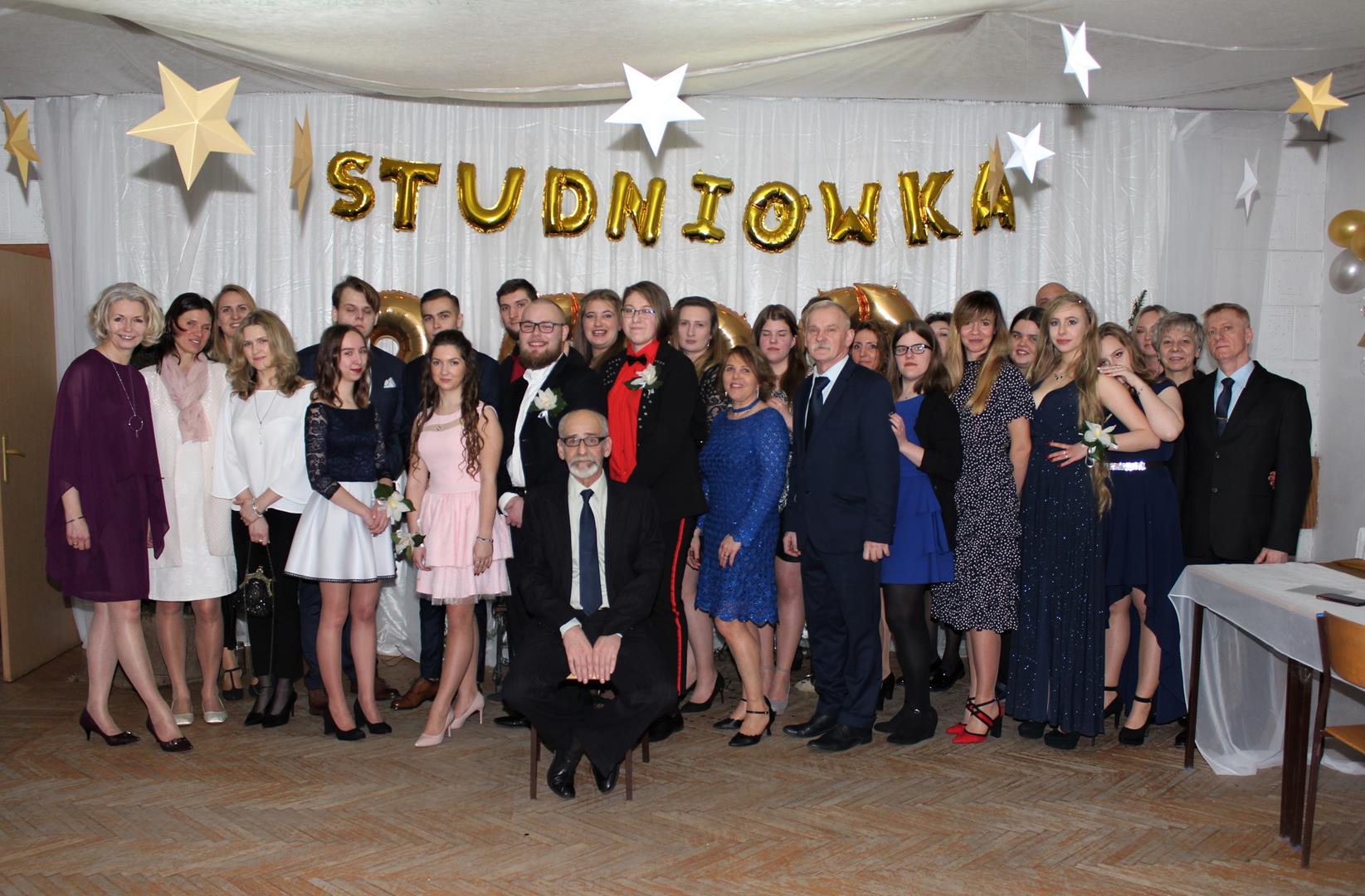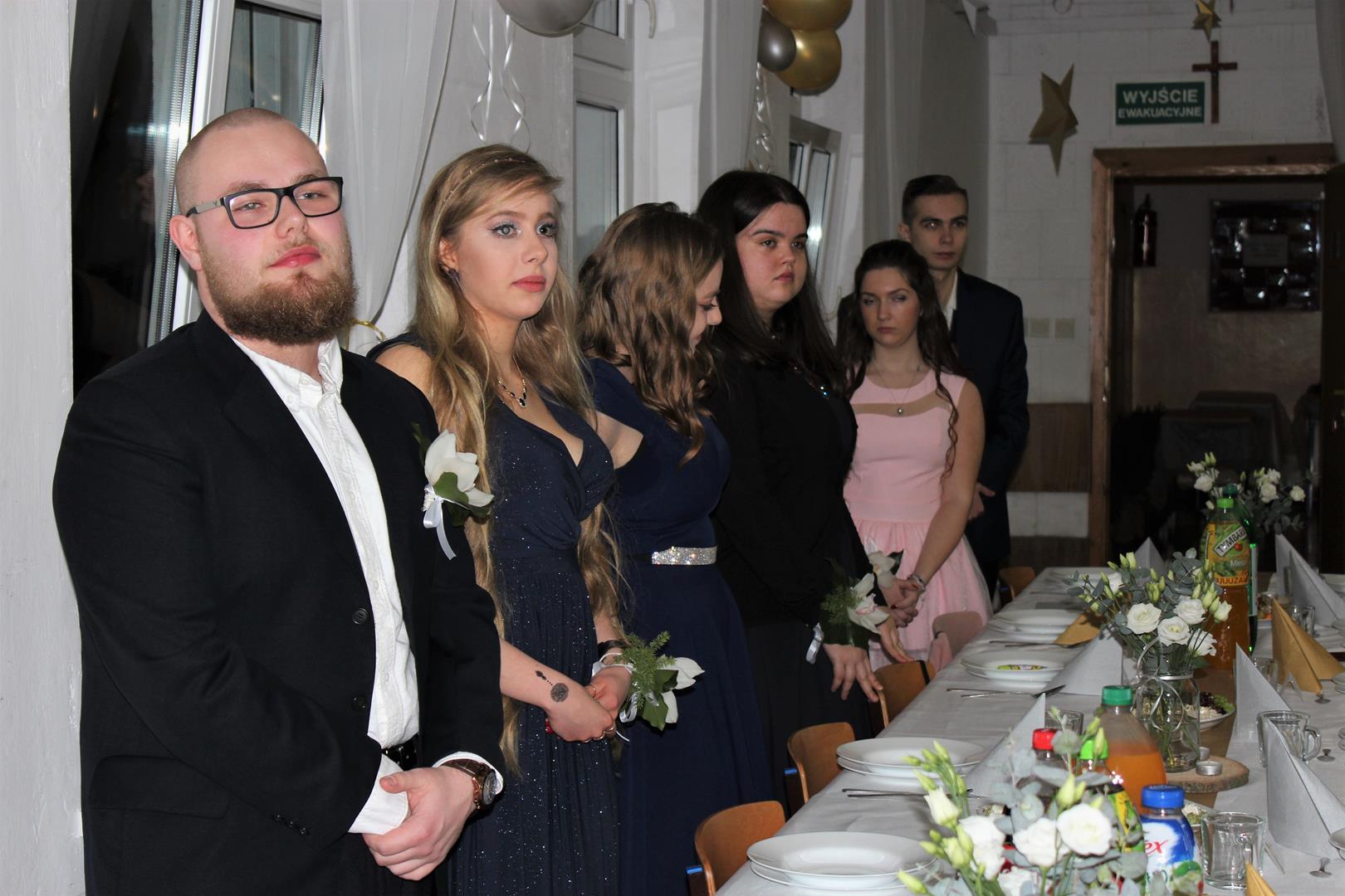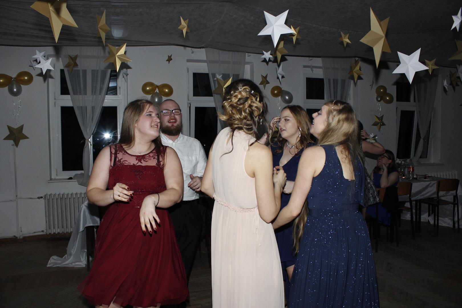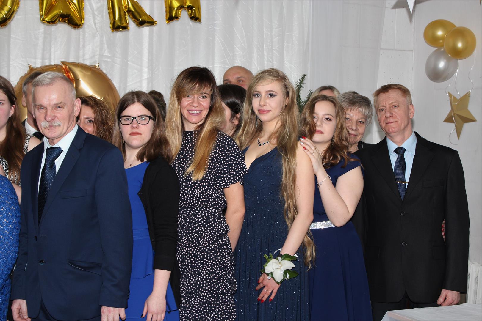 Wykorzystały wieloletnią, sprawdzoną współpracę z Technikum Gastronomicznym, które w ramach warsztatów szkolnych zadbało o catering. I, co chyba najważniejsze, włączyły do organizacji swoich rodziców. Ich pomoc i obecność na imprezie dostarczyły wszystkim wielu pozytywnych wzruszeń. Pięknie nakryte stoły, uwijający się z wdziękiem kelnerzy z młodszych klas (brawo Arek i Bartek!) i zapracowani na gastronomicznym zapleczu Państwo Majewscy, to obraz świetlicy przed godziną 19.00. Gdyby nie uśmiechy nie poznałbym swoich uczennic! Tak były odmienione w wieczorowych strojach, nawet Kuba, po wizycie u dobrego barbera, wyglądał bardzo dostojnie. Gospodynie wieczoru – Karolina i Ola – ze wzruszeniem powitały gości i uczestników balu oraz zapowiedziały tradycyjnego poloneza, którego poprowadziła, z Kubą w parze, autorka układu choreograficznego Pani Dyrektor Lila Pławińska-Kopeć. Następnie były życzenia pomyślności skierowane do maturzystów od Pani Dyrektor i obecnych nauczycieli. Szczególnie ujmujące były refleksje rodziców – mamy Emilki i Moniki oraz taty Martyny, którzy wspominali czas, kiedy prowadzili swoje dzieci na pierwszy szkolny bal, a tego dnia towarzyszą im w ostatnim balu szkolnym. Trzeba było widzieć ich wzruszenie, dumę i szczęście na twarzach! Prowadzące bal niespodziewanie zmusiły do wystąpienia swego wychowawcę, który zazwyczaj unika publicznych wypowiedzi jak diabeł święconej wody. Zaskoczony zamiast swojej zwykłej metody wychowawczej czyli „kija” – zastosował rzadko stosowaną „marchewkę” i wyraził przekonanie, że zarówno z egzaminami maturalnymi, jak i w pracy z ukochanymi zwierzętami jego podopieczni poradzą sobie tak jak z dotychczasową nauką, czyli dobrze. I powiedział jeszcze jedną herezję pedagogiczną, że jest dumny ze swoich uczniów! Był toast i zaczęły się tańce i swawole. Początkowe onieśmielenie maturzystów bardzo szybko im minęło, gdy zobaczyli na parkiecie tańczących rodziców i nauczycieli. No i wcale nie ustępowali im umiejętnościami tanecznymi, a przynajmniej werwą i ochotą do zabawy. Popatrzcie na ich fotografie z zabawy studniówkowej, a następne zobaczycie w kwietniu z uroczystego wręczenia świadectw ukończenia szkoły. Z pewnością będą równie uśmiechnięci.
