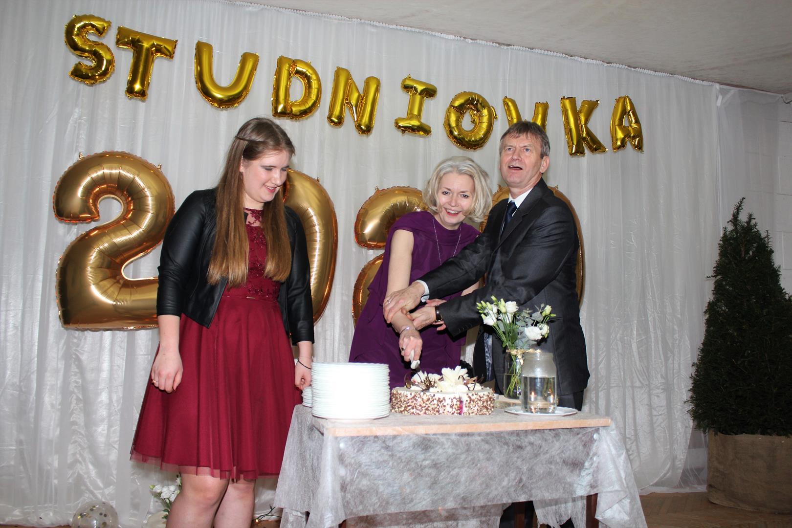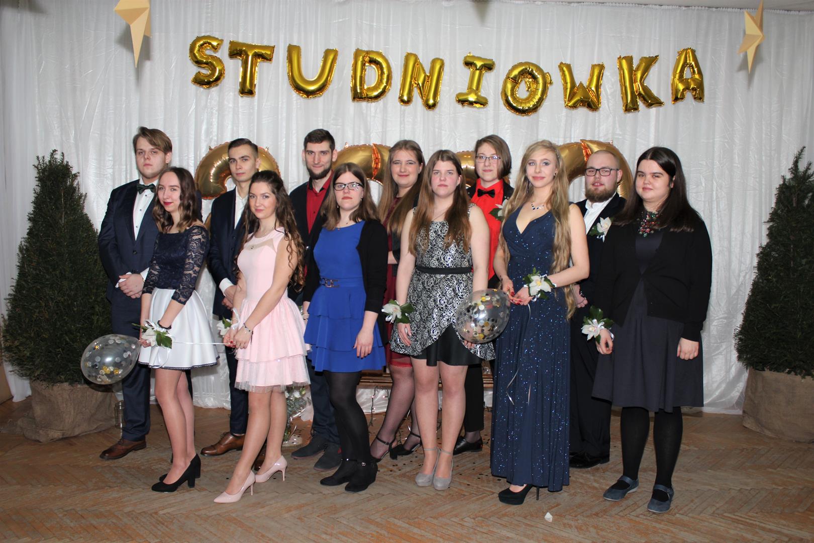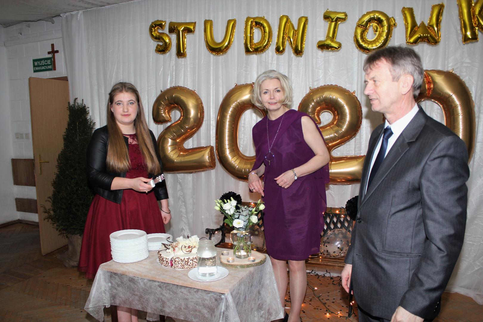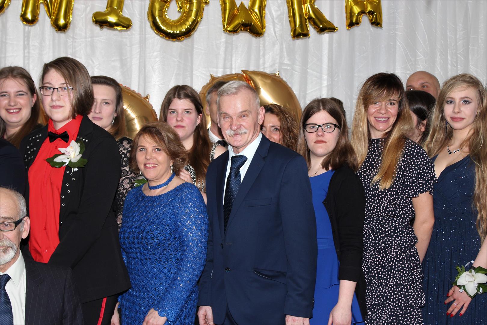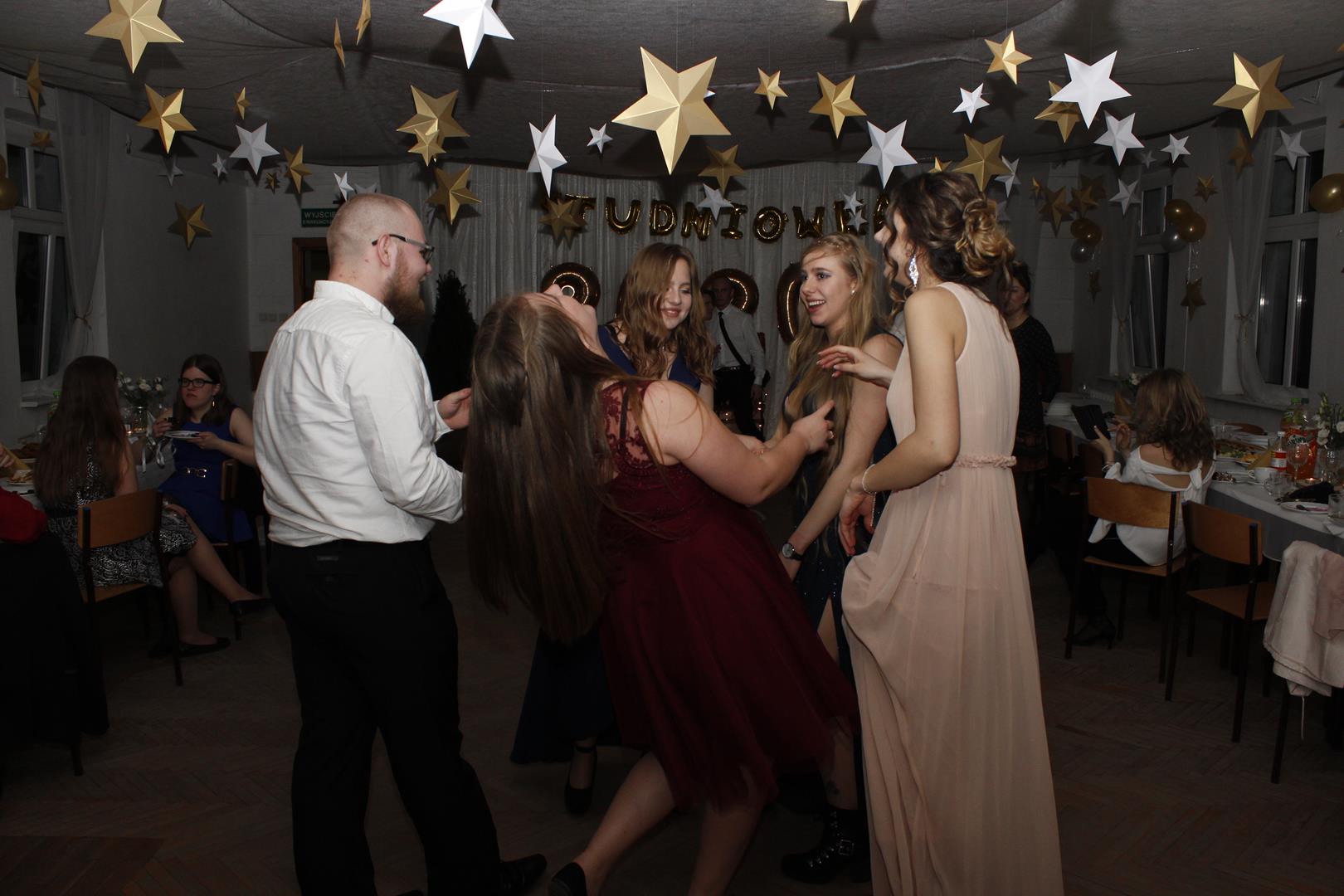 Wykorzystały wieloletnią, sprawdzoną współpracę z Technikum Gastronomicznym, które w ramach warsztatów szkolnych zadbało o catering. I, co chyba najważniejsze, włączyły do organizacji swoich rodziców. Ich pomoc i obecność na imprezie dostarczyły wszystkim wielu pozytywnych wzruszeń. Pięknie nakryte stoły, uwijający się z wdziękiem kelnerzy z młodszych klas (brawo Arek i Bartek!) i zapracowani na gastronomicznym zapleczu Państwo Majewscy, to obraz świetlicy przed godziną 19.00. Gdyby nie uśmiechy nie poznałbym swoich uczennic! Tak były odmienione w wieczorowych strojach, nawet Kuba, po wizycie u dobrego barbera, wyglądał bardzo dostojnie. Gospodynie wieczoru – Karolina i Ola – ze wzruszeniem powitały gości i uczestników balu oraz zapowiedziały tradycyjnego poloneza, którego poprowadziła, z Kubą w parze, autorka układu choreograficznego Pani Dyrektor Lila Pławińska-Kopeć. Następnie były życzenia pomyślności skierowane do maturzystów od Pani Dyrektor i obecnych nauczycieli. Szczególnie ujmujące były refleksje rodziców – mamy Emilki i Moniki oraz taty Martyny, którzy wspominali czas, kiedy prowadzili swoje dzieci na pierwszy szkolny bal, a tego dnia towarzyszą im w ostatnim balu szkolnym. Trzeba było widzieć ich wzruszenie, dumę i szczęście na twarzach! Prowadzące bal niespodziewanie zmusiły do wystąpienia swego wychowawcę, który zazwyczaj unika publicznych wypowiedzi jak diabeł święconej wody. Zaskoczony zamiast swojej zwykłej metody wychowawczej czyli „kija” – zastosował rzadko stosowaną „marchewkę” i wyraził przekonanie, że zarówno z egzaminami maturalnymi, jak i w pracy z ukochanymi zwierzętami jego podopieczni poradzą sobie tak jak z dotychczasową nauką, czyli dobrze. I powiedział jeszcze jedną herezję pedagogiczną, że jest dumny ze swoich uczniów! Był toast i zaczęły się tańce i swawole. Początkowe onieśmielenie maturzystów bardzo szybko im minęło, gdy zobaczyli na parkiecie tańczących rodziców i nauczycieli. No i wcale nie ustępowali im umiejętnościami tanecznymi, a przynajmniej werwą i ochotą do zabawy. Popatrzcie na ich fotografie z zabawy studniówkowej, a następne zobaczycie w kwietniu z uroczystego wręczenia świadectw ukończenia szkoły. Z pewnością będą równie uśmiechnięci.