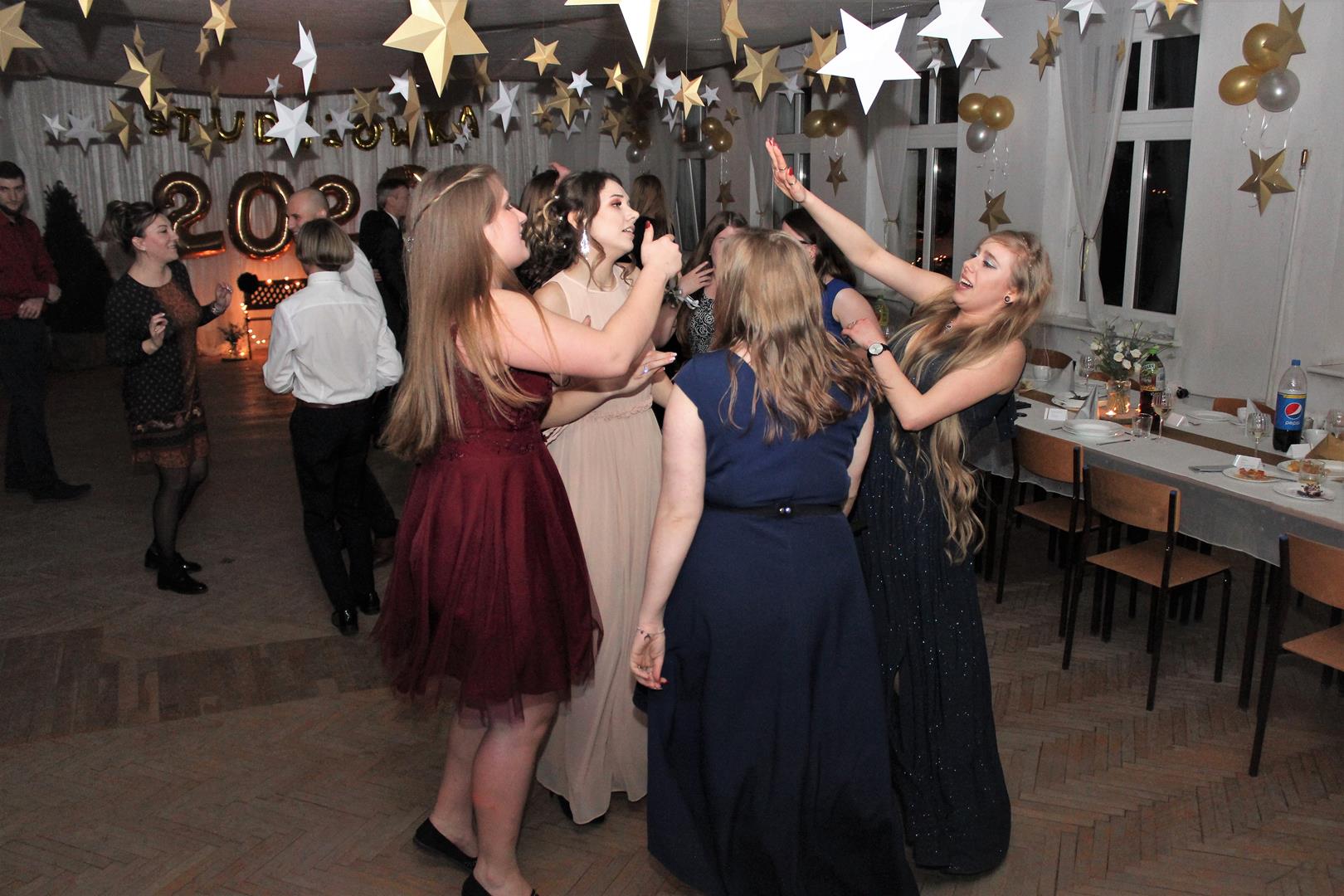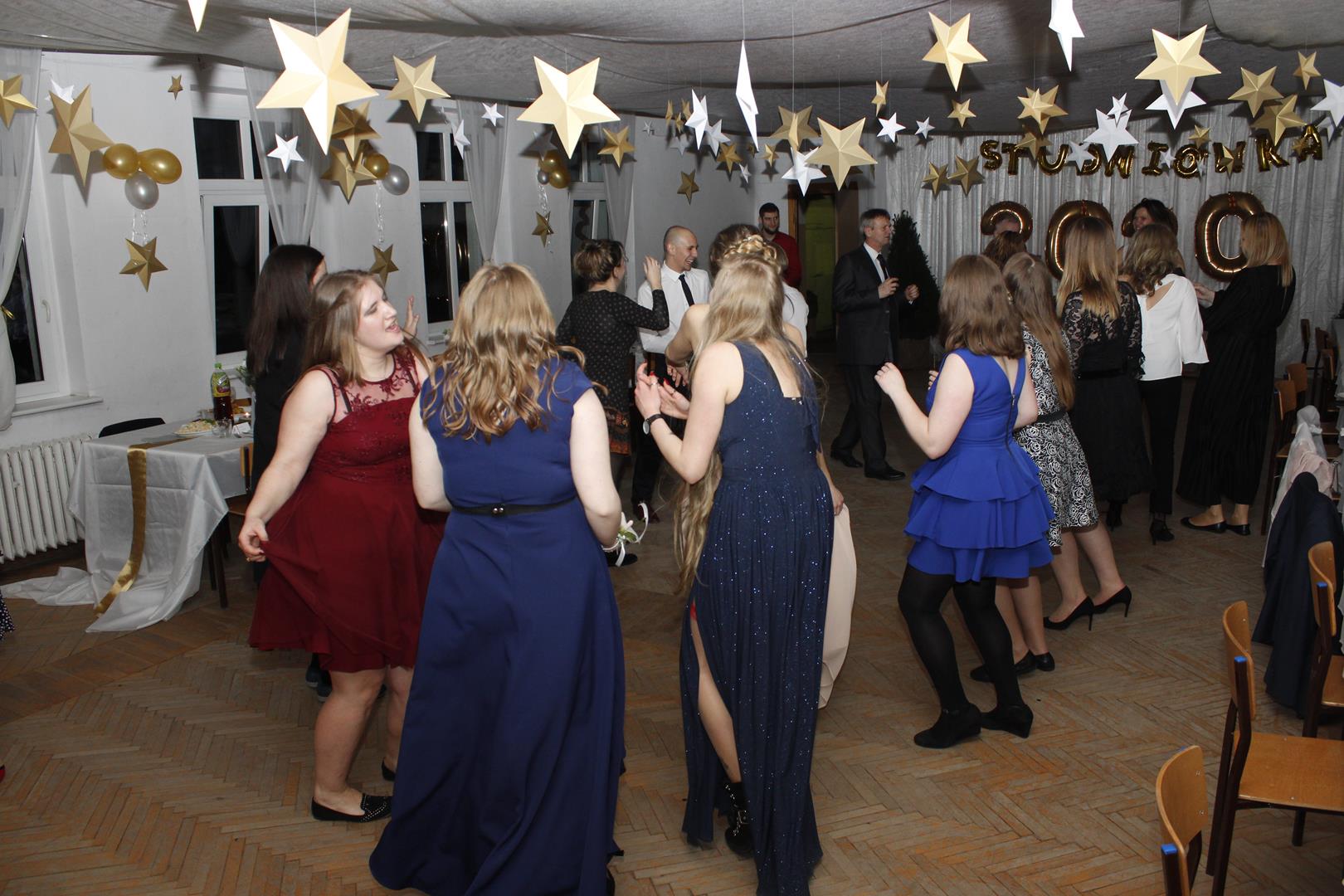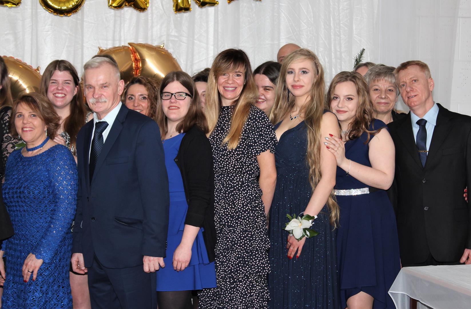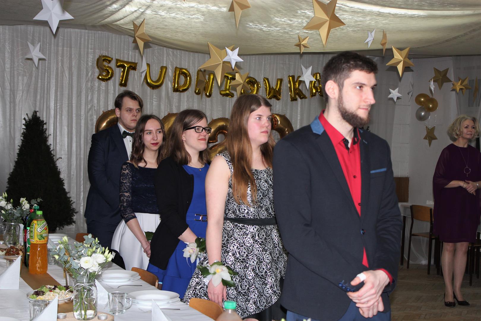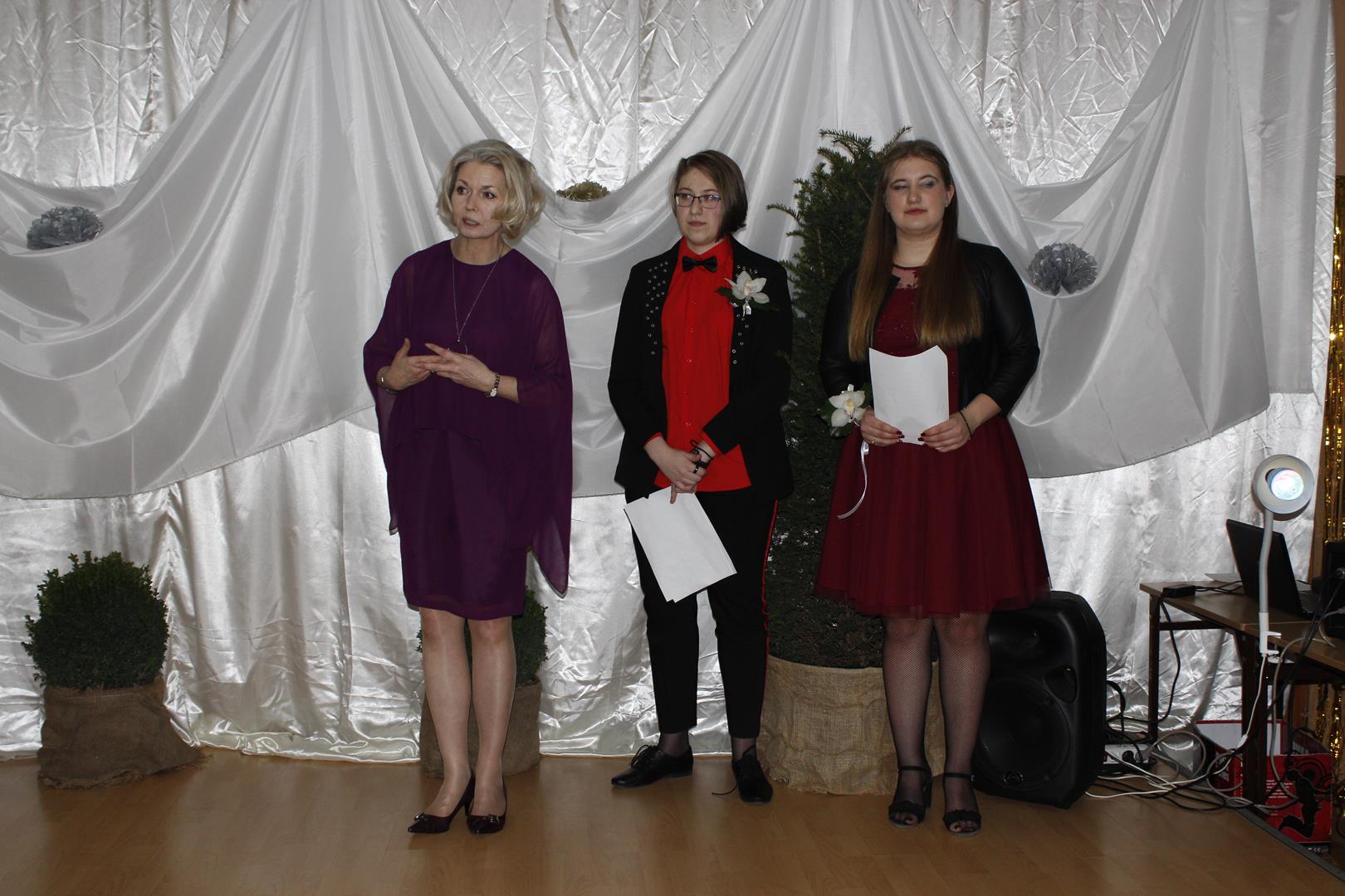 Wykorzystały wieloletnią, sprawdzoną współpracę z Technikum Gastronomicznym, które w ramach warsztatów szkolnych zadbało o catering. I, co chyba najważniejsze, włączyły do organizacji swoich rodziców. Ich pomoc i obecność na imprezie dostarczyły wszystkim wielu pozytywnych wzruszeń. Pięknie nakryte stoły, uwijający się z wdziękiem kelnerzy z młodszych klas (brawo Arek i Bartek!) i zapracowani na gastronomicznym zapleczu Państwo Majewscy, to obraz świetlicy przed godziną 19.00. Gdyby nie uśmiechy nie poznałbym swoich uczennic! Tak były odmienione w wieczorowych strojach, nawet Kuba, po wizycie u dobrego barbera, wyglądał bardzo dostojnie. Gospodynie wieczoru – Karolina i Ola – ze wzruszeniem powitały gości i uczestników balu oraz zapowiedziały tradycyjnego poloneza, którego poprowadziła, z Kubą w parze, autorka układu choreograficznego Pani Dyrektor Lila Pławińska-Kopeć. Następnie były życzenia pomyślności skierowane do maturzystów od Pani Dyrektor i obecnych nauczycieli. Szczególnie ujmujące były refleksje rodziców – mamy Emilki i Moniki oraz taty Martyny, którzy wspominali czas, kiedy prowadzili swoje dzieci na pierwszy szkolny bal, a tego dnia towarzyszą im w ostatnim balu szkolnym. Trzeba było widzieć ich wzruszenie, dumę i szczęście na twarzach! Prowadzące bal niespodziewanie zmusiły do wystąpienia swego wychowawcę, który zazwyczaj unika publicznych wypowiedzi jak diabeł święconej wody. Zaskoczony zamiast swojej zwykłej metody wychowawczej czyli „kija” – zastosował rzadko stosowaną „marchewkę” i wyraził przekonanie, że zarówno z egzaminami maturalnymi, jak i w pracy z ukochanymi zwierzętami jego podopieczni poradzą sobie tak jak z dotychczasową nauką, czyli dobrze. I powiedział jeszcze jedną herezję pedagogiczną, że jest dumny ze swoich uczniów! Był toast i zaczęły się tańce i swawole. Początkowe onieśmielenie maturzystów bardzo szybko im minęło, gdy zobaczyli na parkiecie tańczących rodziców i nauczycieli. No i wcale nie ustępowali im umiejętnościami tanecznymi, a przynajmniej werwą i ochotą do zabawy. Popatrzcie na ich fotografie z zabawy studniówkowej, a następne zobaczycie w kwietniu z uroczystego wręczenia świadectw ukończenia szkoły. Z pewnością będą równie uśmiechnięci.