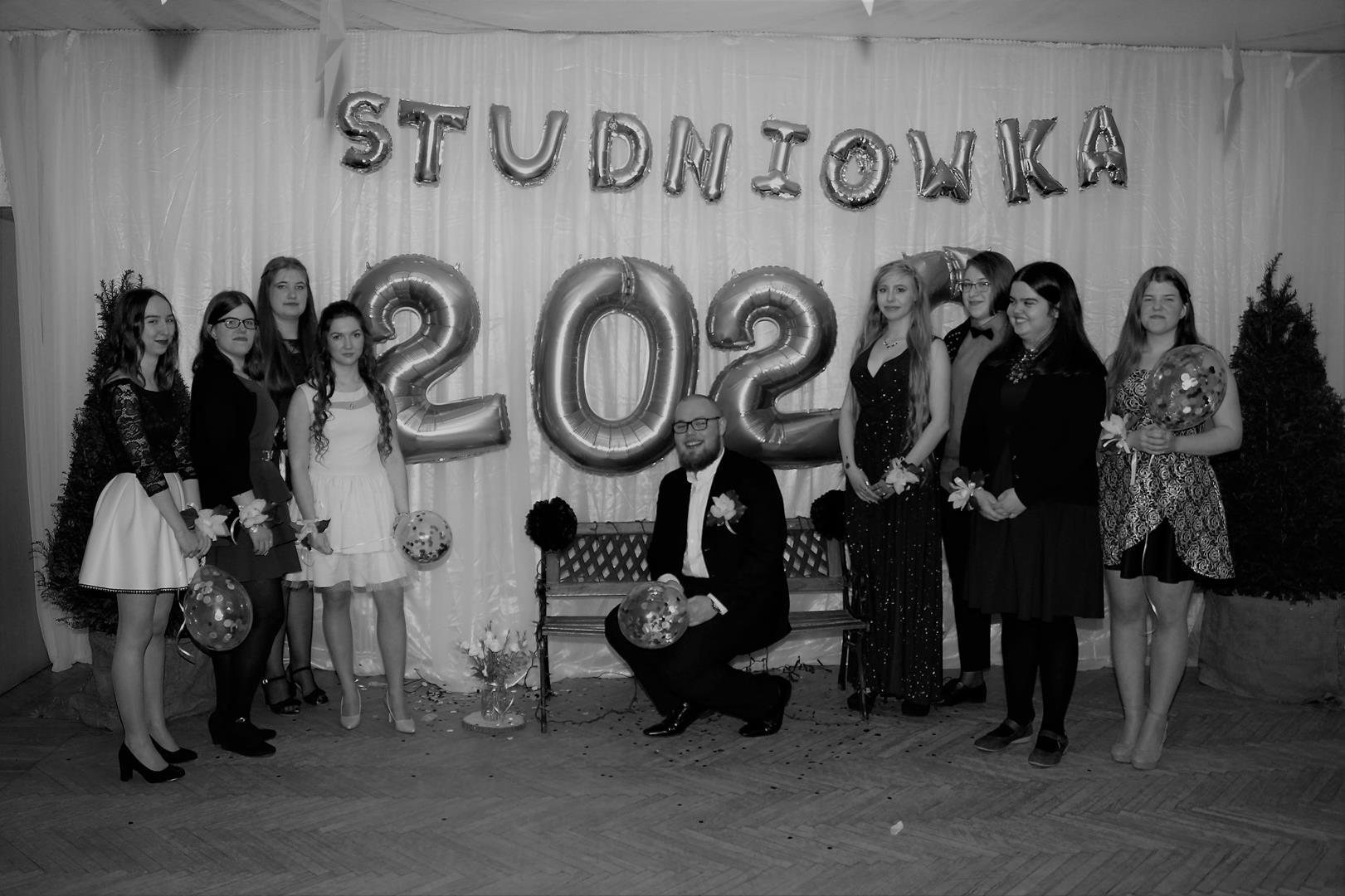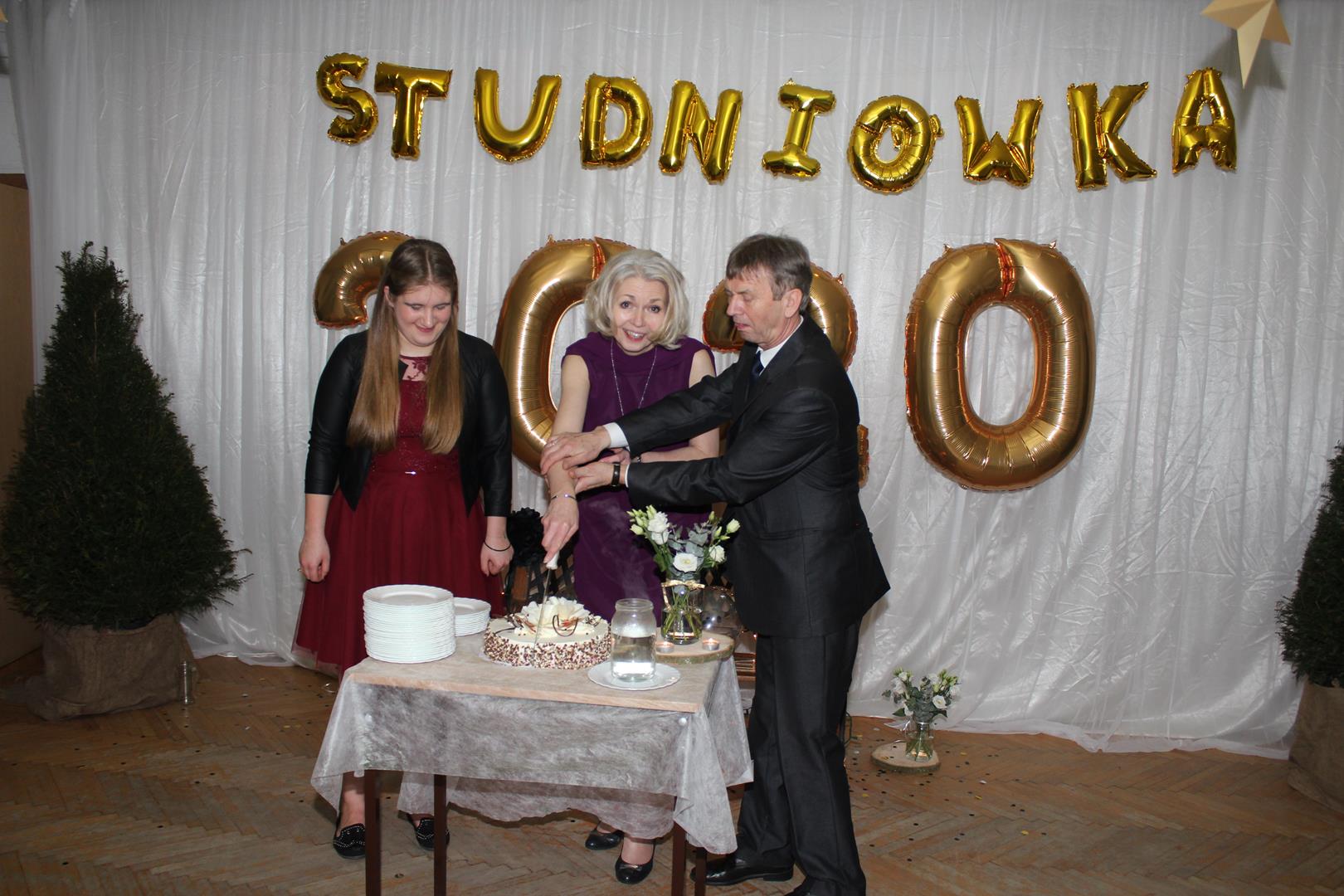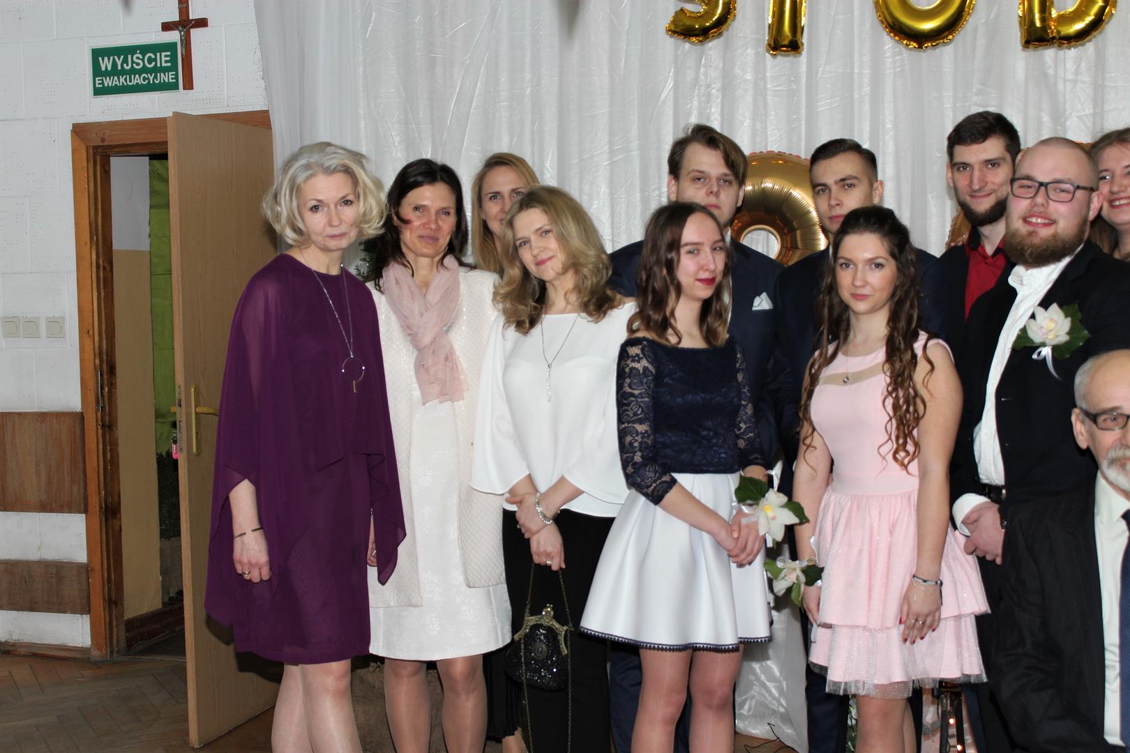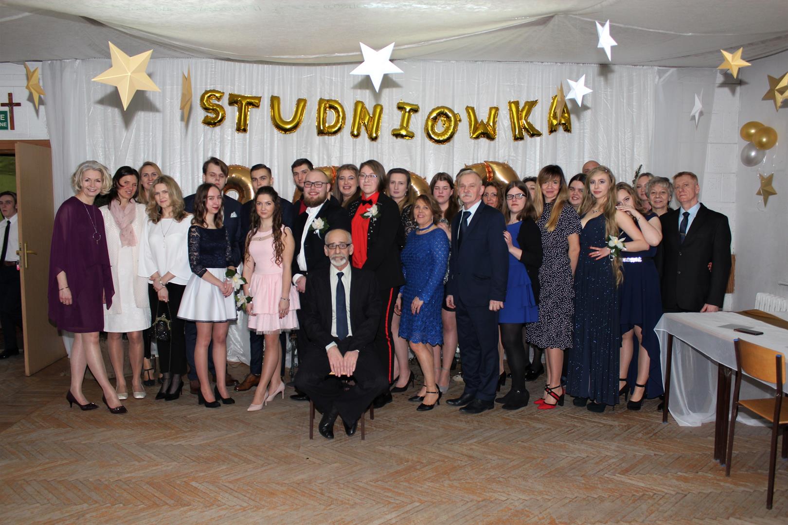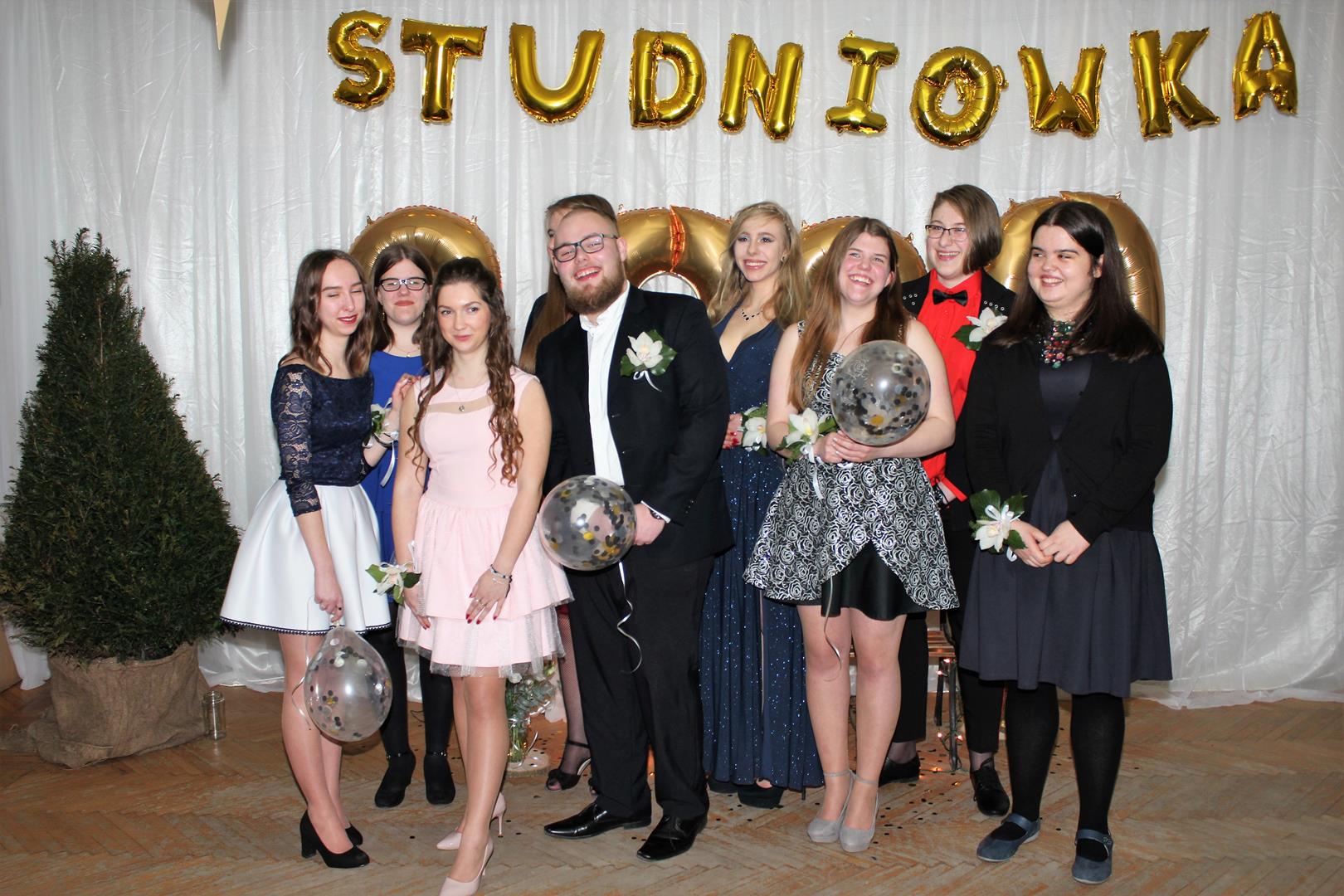 Wykorzystały wieloletnią, sprawdzoną współpracę z Technikum Gastronomicznym, które w ramach warsztatów szkolnych zadbało o catering. I, co chyba najważniejsze, włączyły do organizacji swoich rodziców. Ich pomoc i obecność na imprezie dostarczyły wszystkim wielu pozytywnych wzruszeń. Pięknie nakryte stoły, uwijający się z wdziękiem kelnerzy z młodszych klas (brawo Arek i Bartek!) i zapracowani na gastronomicznym zapleczu Państwo Majewscy, to obraz świetlicy przed godziną 19.00. Gdyby nie uśmiechy nie poznałbym swoich uczennic! Tak były odmienione w wieczorowych strojach, nawet Kuba, po wizycie u dobrego barbera, wyglądał bardzo dostojnie. Gospodynie wieczoru – Karolina i Ola – ze wzruszeniem powitały gości i uczestników balu oraz zapowiedziały tradycyjnego poloneza, którego poprowadziła, z Kubą w parze, autorka układu choreograficznego Pani Dyrektor Lila Pławińska-Kopeć. Następnie były życzenia pomyślności skierowane do maturzystów od Pani Dyrektor i obecnych nauczycieli. Szczególnie ujmujące były refleksje rodziców – mamy Emilki i Moniki oraz taty Martyny, którzy wspominali czas, kiedy prowadzili swoje dzieci na pierwszy szkolny bal, a tego dnia towarzyszą im w ostatnim balu szkolnym. Trzeba było widzieć ich wzruszenie, dumę i szczęście na twarzach! Prowadzące bal niespodziewanie zmusiły do wystąpienia swego wychowawcę, który zazwyczaj unika publicznych wypowiedzi jak diabeł święconej wody. Zaskoczony zamiast swojej zwykłej metody wychowawczej czyli „kija” – zastosował rzadko stosowaną „marchewkę” i wyraził przekonanie, że zarówno z egzaminami maturalnymi, jak i w pracy z ukochanymi zwierzętami jego podopieczni poradzą sobie tak jak z dotychczasową nauką, czyli dobrze. I powiedział jeszcze jedną herezję pedagogiczną, że jest dumny ze swoich uczniów! Był toast i zaczęły się tańce i swawole. Początkowe onieśmielenie maturzystów bardzo szybko im minęło, gdy zobaczyli na parkiecie tańczących rodziców i nauczycieli. No i wcale nie ustępowali im umiejętnościami tanecznymi, a przynajmniej werwą i ochotą do zabawy. Popatrzcie na ich fotografie z zabawy studniówkowej, a następne zobaczycie w kwietniu z uroczystego wręczenia świadectw ukończenia szkoły. Z pewnością będą równie uśmiechnięci.