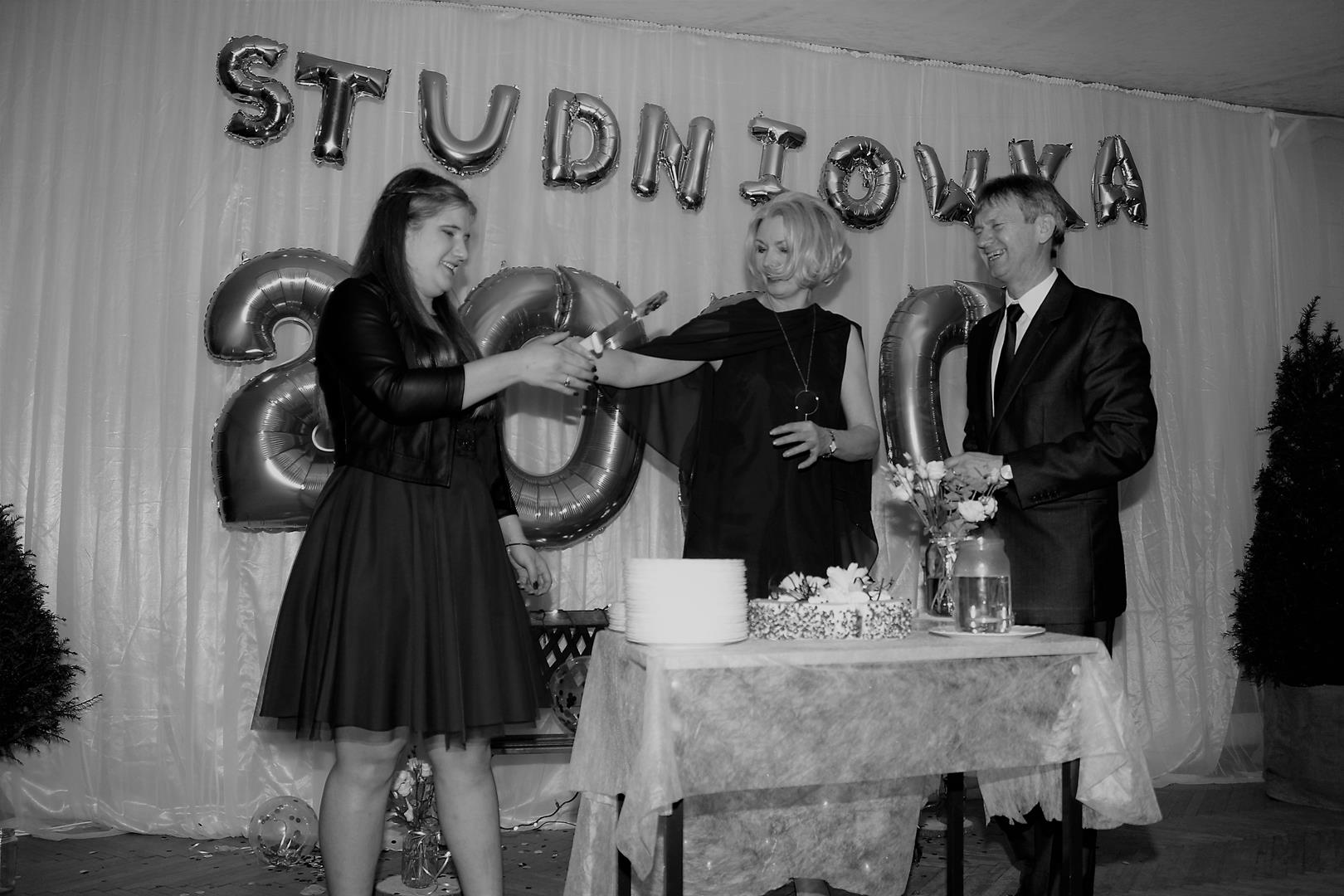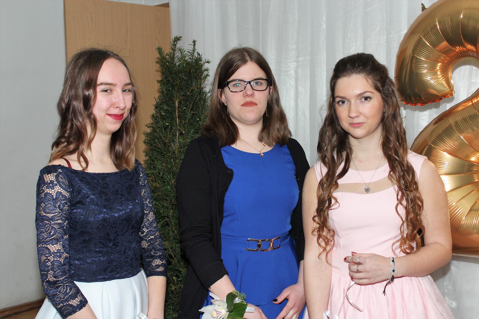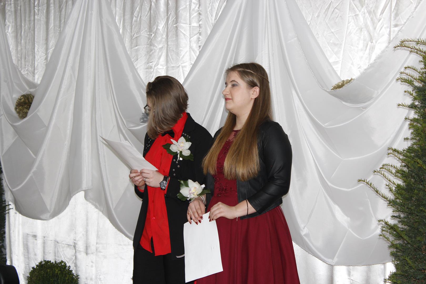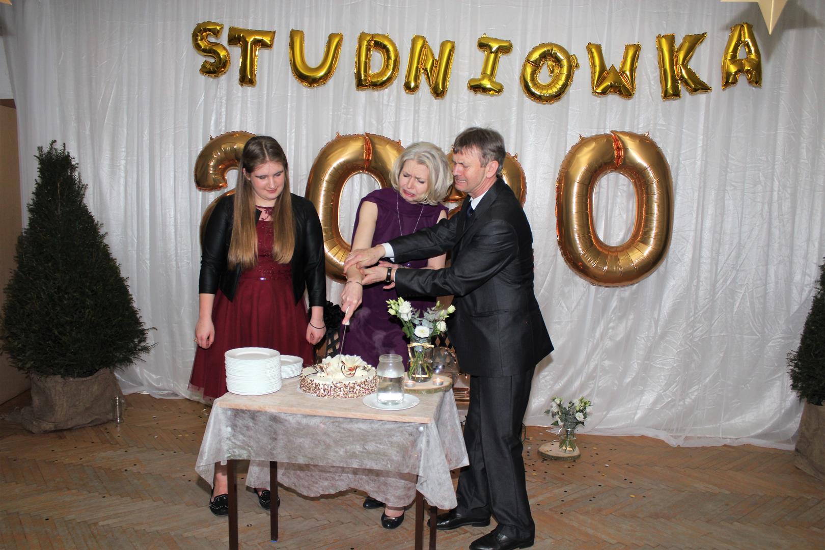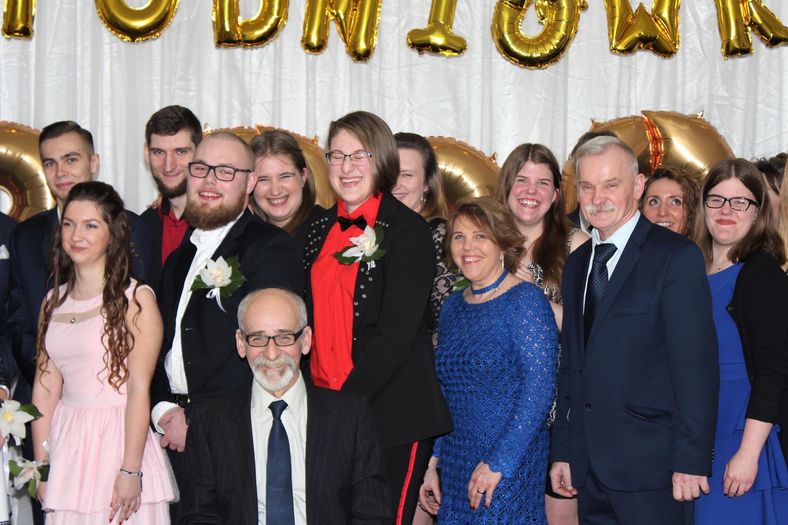 Wykorzystały wieloletnią, sprawdzoną współpracę z Technikum Gastronomicznym, które w ramach warsztatów szkolnych zadbało o catering. I, co chyba najważniejsze, włączyły do organizacji swoich rodziców. Ich pomoc i obecność na imprezie dostarczyły wszystkim wielu pozytywnych wzruszeń. Pięknie nakryte stoły, uwijający się z wdziękiem kelnerzy z młodszych klas (brawo Arek i Bartek!) i zapracowani na gastronomicznym zapleczu Państwo Majewscy, to obraz świetlicy przed godziną 19.00. Gdyby nie uśmiechy nie poznałbym swoich uczennic! Tak były odmienione w wieczorowych strojach, nawet Kuba, po wizycie u dobrego barbera, wyglądał bardzo dostojnie. Gospodynie wieczoru – Karolina i Ola – ze wzruszeniem powitały gości i uczestników balu oraz zapowiedziały tradycyjnego poloneza, którego poprowadziła, z Kubą w parze, autorka układu choreograficznego Pani Dyrektor Lila Pławińska-Kopeć. Następnie były życzenia pomyślności skierowane do maturzystów od Pani Dyrektor i obecnych nauczycieli. Szczególnie ujmujące były refleksje rodziców – mamy Emilki i Moniki oraz taty Martyny, którzy wspominali czas, kiedy prowadzili swoje dzieci na pierwszy szkolny bal, a tego dnia towarzyszą im w ostatnim balu szkolnym. Trzeba było widzieć ich wzruszenie, dumę i szczęście na twarzach! Prowadzące bal niespodziewanie zmusiły do wystąpienia swego wychowawcę, który zazwyczaj unika publicznych wypowiedzi jak diabeł święconej wody. Zaskoczony zamiast swojej zwykłej metody wychowawczej czyli „kija” – zastosował rzadko stosowaną „marchewkę” i wyraził przekonanie, że zarówno z egzaminami maturalnymi, jak i w pracy z ukochanymi zwierzętami jego podopieczni poradzą sobie tak jak z dotychczasową nauką, czyli dobrze. I powiedział jeszcze jedną herezję pedagogiczną, że jest dumny ze swoich uczniów! Był toast i zaczęły się tańce i swawole. Początkowe onieśmielenie maturzystów bardzo szybko im minęło, gdy zobaczyli na parkiecie tańczących rodziców i nauczycieli. No i wcale nie ustępowali im umiejętnościami tanecznymi, a przynajmniej werwą i ochotą do zabawy. Popatrzcie na ich fotografie z zabawy studniówkowej, a następne zobaczycie w kwietniu z uroczystego wręczenia świadectw ukończenia szkoły. Z pewnością będą równie uśmiechnięci.