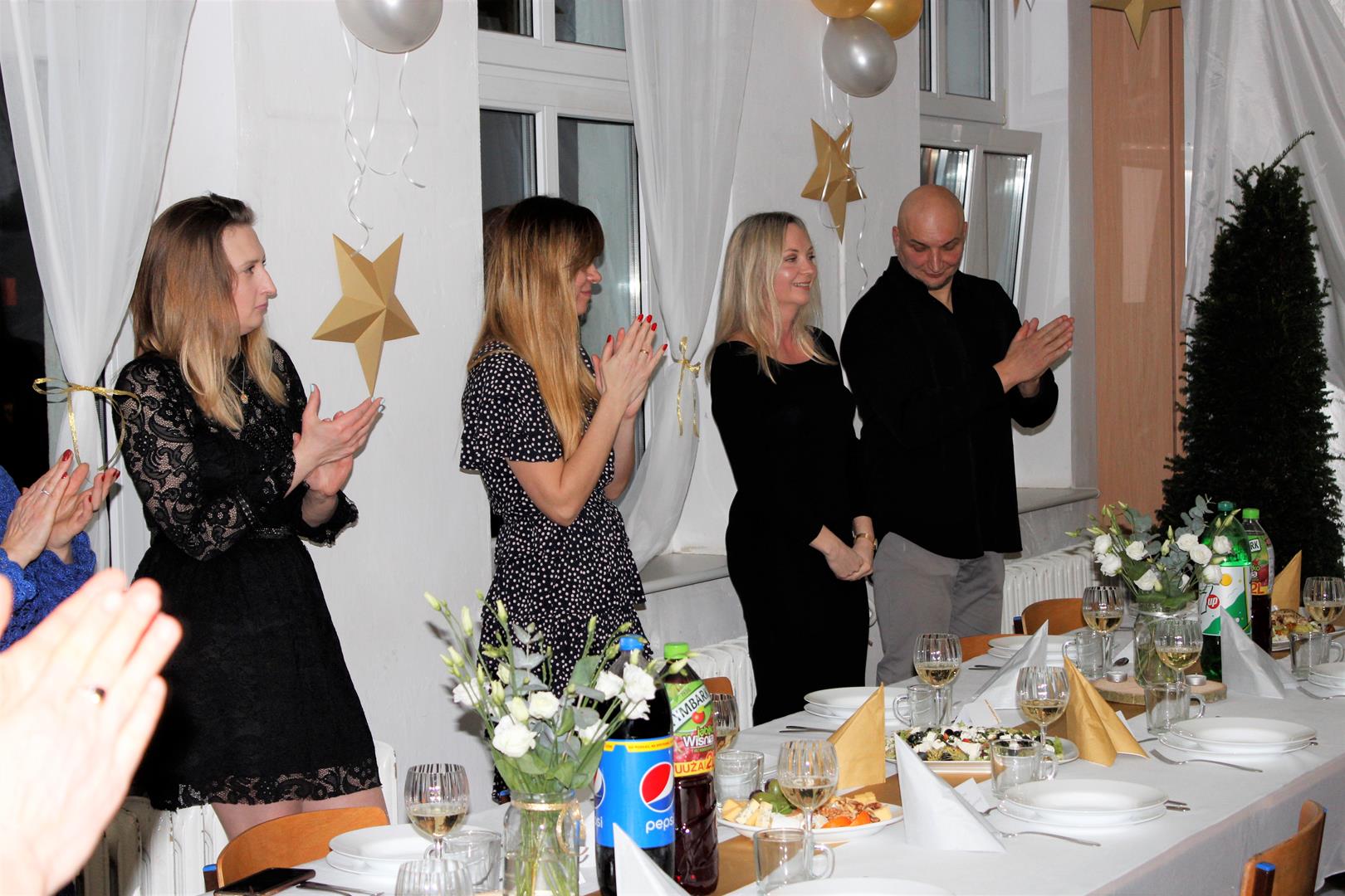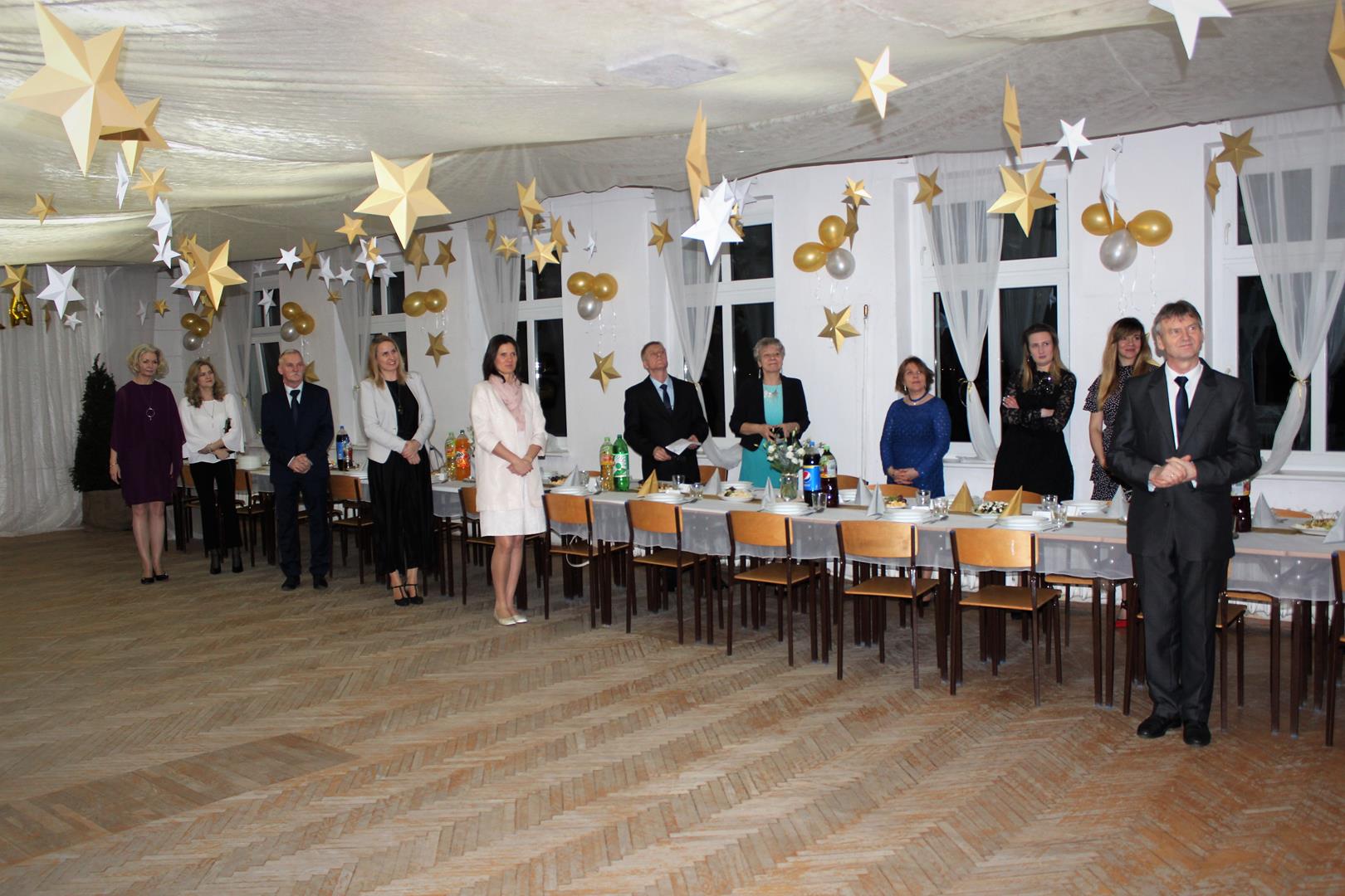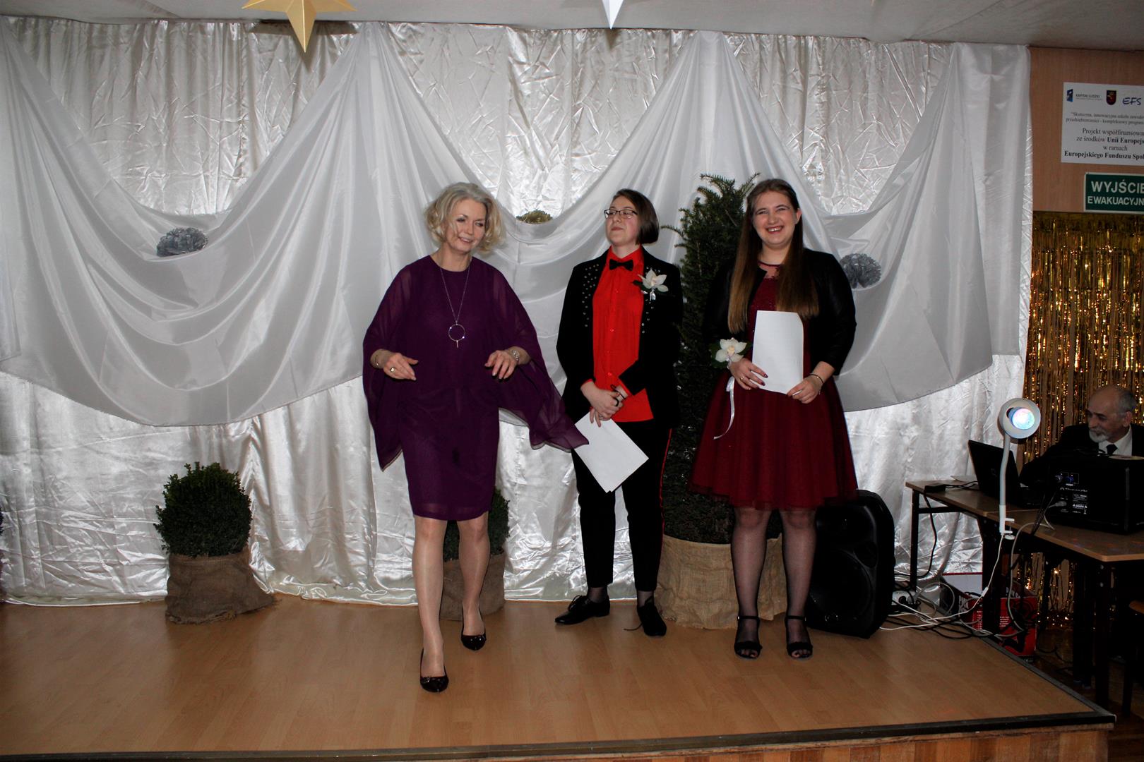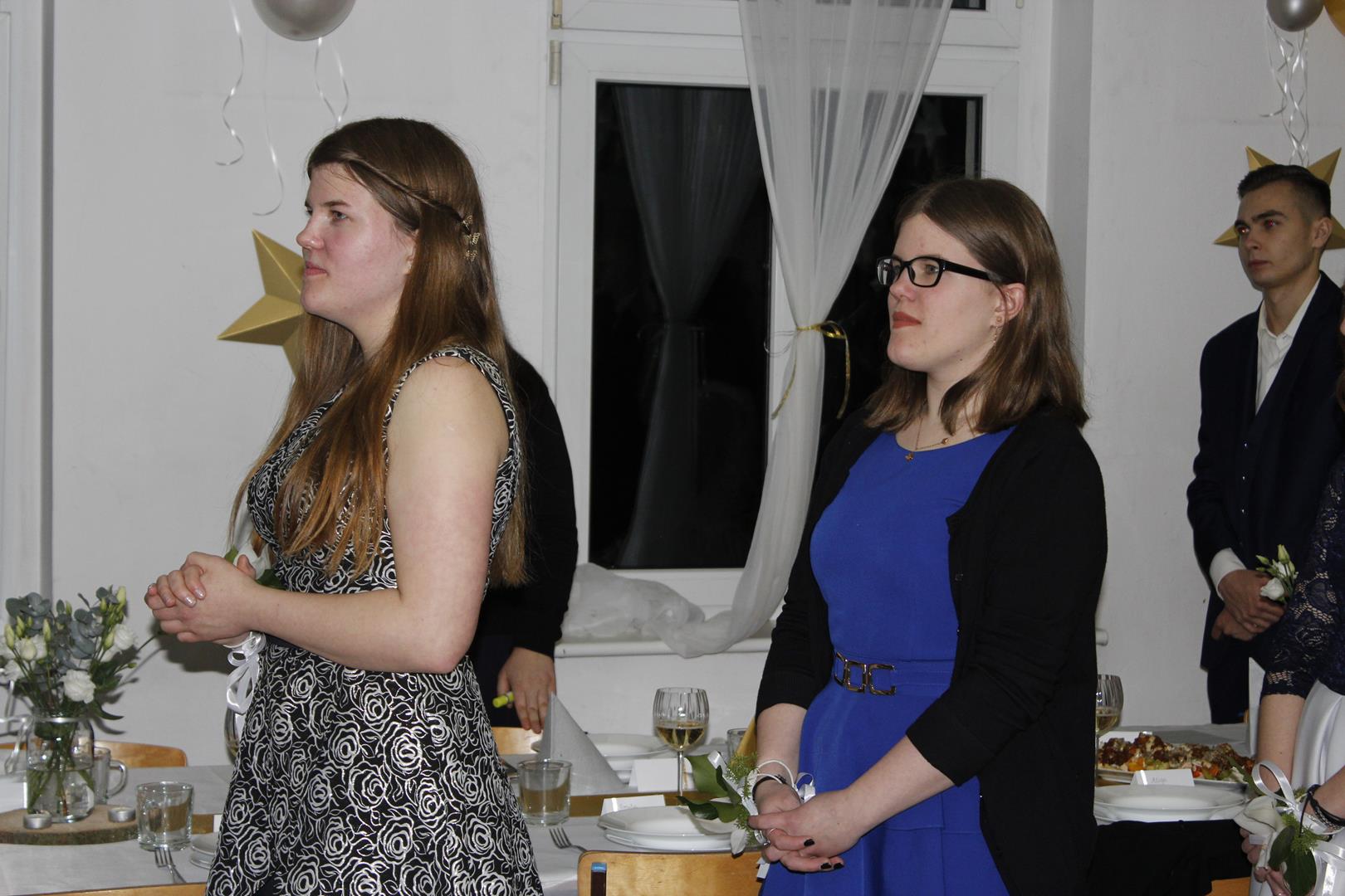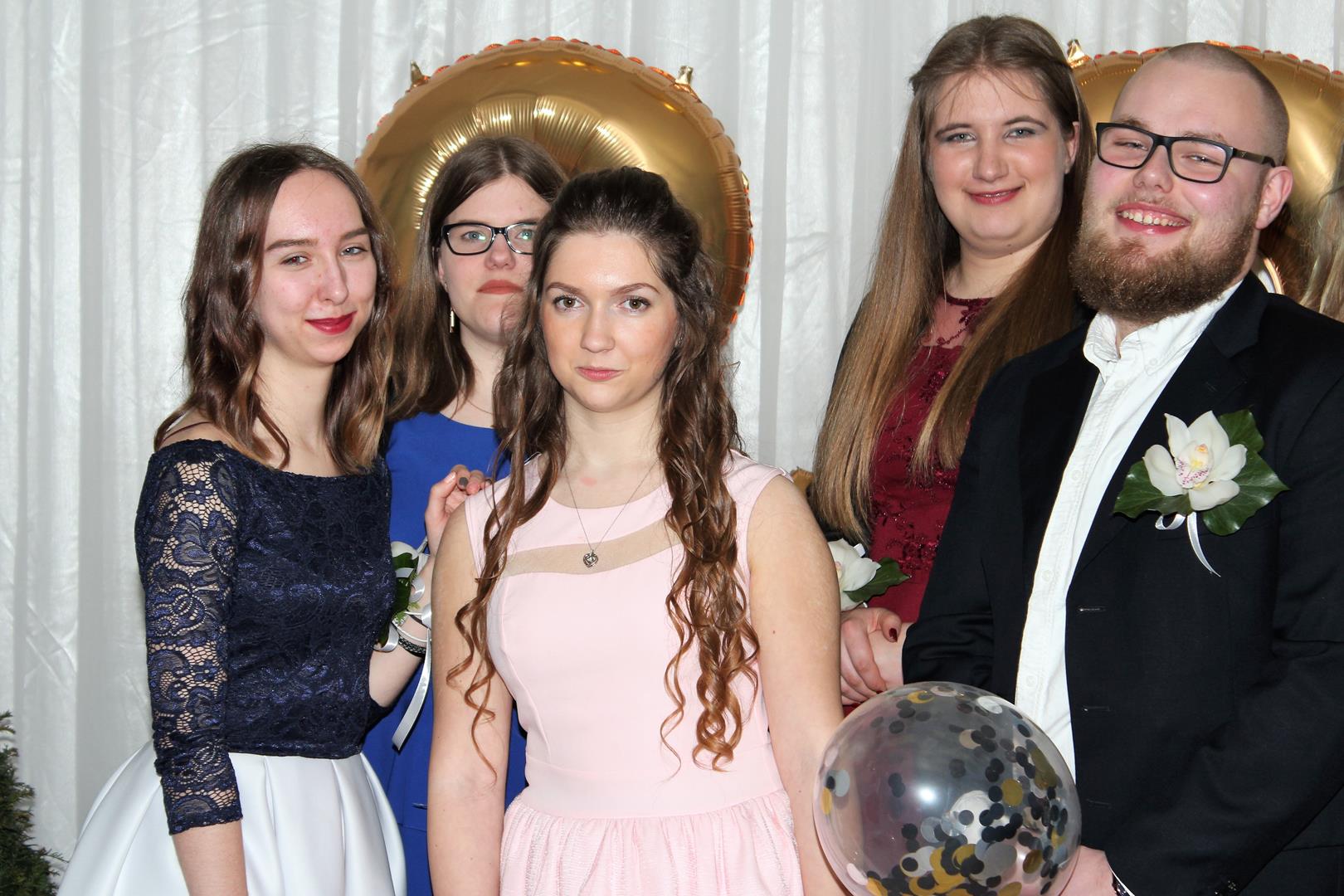 Wykorzystały wieloletnią, sprawdzoną współpracę z Technikum Gastronomicznym, które w ramach warsztatów szkolnych zadbało o catering. I, co chyba najważniejsze, włączyły do organizacji swoich rodziców. Ich pomoc i obecność na imprezie dostarczyły wszystkim wielu pozytywnych wzruszeń. Pięknie nakryte stoły, uwijający się z wdziękiem kelnerzy z młodszych klas (brawo Arek i Bartek!) i zapracowani na gastronomicznym zapleczu Państwo Majewscy, to obraz świetlicy przed godziną 19.00. Gdyby nie uśmiechy nie poznałbym swoich uczennic! Tak były odmienione w wieczorowych strojach, nawet Kuba, po wizycie u dobrego barbera, wyglądał bardzo dostojnie. Gospodynie wieczoru – Karolina i Ola – ze wzruszeniem powitały gości i uczestników balu oraz zapowiedziały tradycyjnego poloneza, którego poprowadziła, z Kubą w parze, autorka układu choreograficznego Pani Dyrektor Lila Pławińska-Kopeć. Następnie były życzenia pomyślności skierowane do maturzystów od Pani Dyrektor i obecnych nauczycieli. Szczególnie ujmujące były refleksje rodziców – mamy Emilki i Moniki oraz taty Martyny, którzy wspominali czas, kiedy prowadzili swoje dzieci na pierwszy szkolny bal, a tego dnia towarzyszą im w ostatnim balu szkolnym. Trzeba było widzieć ich wzruszenie, dumę i szczęście na twarzach! Prowadzące bal niespodziewanie zmusiły do wystąpienia swego wychowawcę, który zazwyczaj unika publicznych wypowiedzi jak diabeł święconej wody. Zaskoczony zamiast swojej zwykłej metody wychowawczej czyli „kija” – zastosował rzadko stosowaną „marchewkę” i wyraził przekonanie, że zarówno z egzaminami maturalnymi, jak i w pracy z ukochanymi zwierzętami jego podopieczni poradzą sobie tak jak z dotychczasową nauką, czyli dobrze. I powiedział jeszcze jedną herezję pedagogiczną, że jest dumny ze swoich uczniów! Był toast i zaczęły się tańce i swawole. Początkowe onieśmielenie maturzystów bardzo szybko im minęło, gdy zobaczyli na parkiecie tańczących rodziców i nauczycieli. No i wcale nie ustępowali im umiejętnościami tanecznymi, a przynajmniej werwą i ochotą do zabawy. Popatrzcie na ich fotografie z zabawy studniówkowej, a następne zobaczycie w kwietniu z uroczystego wręczenia świadectw ukończenia szkoły. Z pewnością będą równie uśmiechnięci.