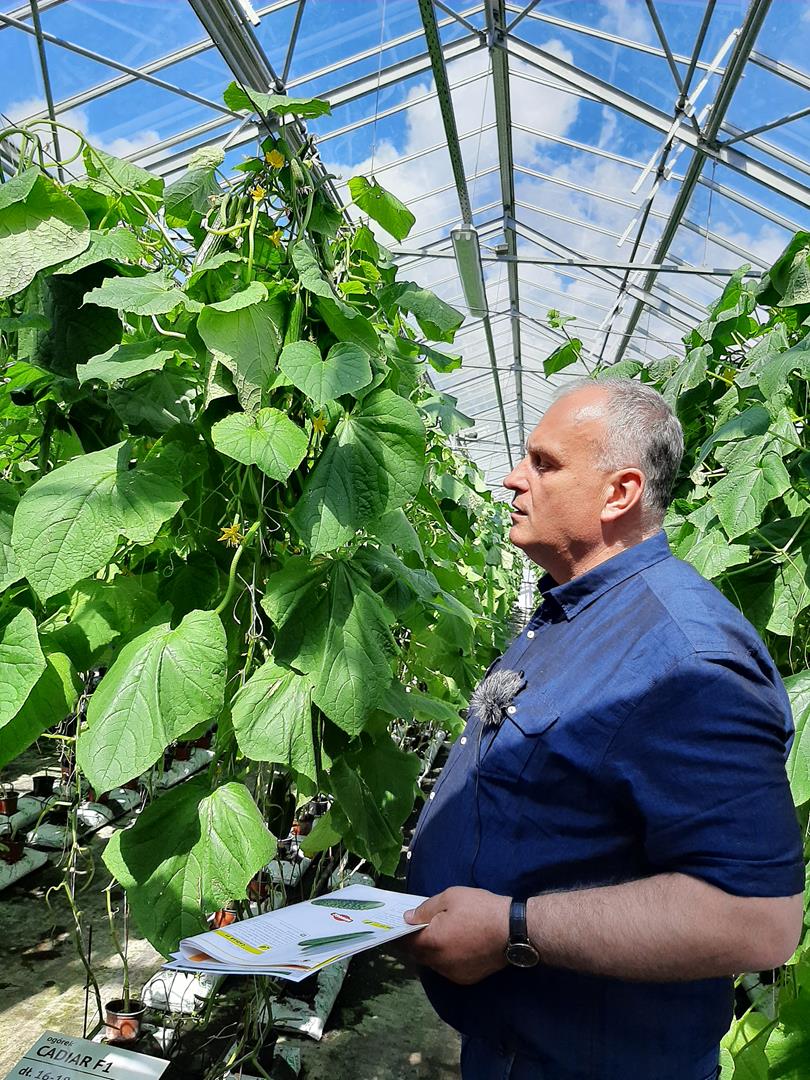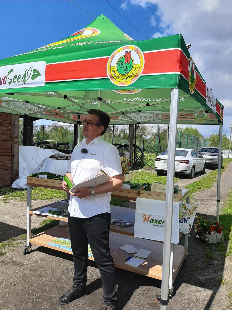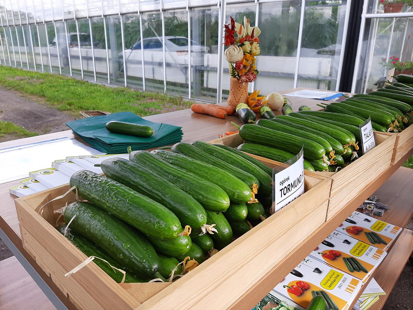 Po oficjalnym otwarciu spotkania i przywitaniu gości głos zabrał Pan Andrzej Fidos – kierownik warsztatów szkolnych, który scharakteryzował cały proces produkcji, w szczególności sposób prowadzenia, nawadniania, ochrony założonej kolekcji ogórka oraz wielkość i jakość plonu handlowego dla poszczególnych odmian. Przedstawiciele handlowi firm nasiennych natomiast dokonali krótkiej charakterystyki swoich odmian ogórka szklarniowego.