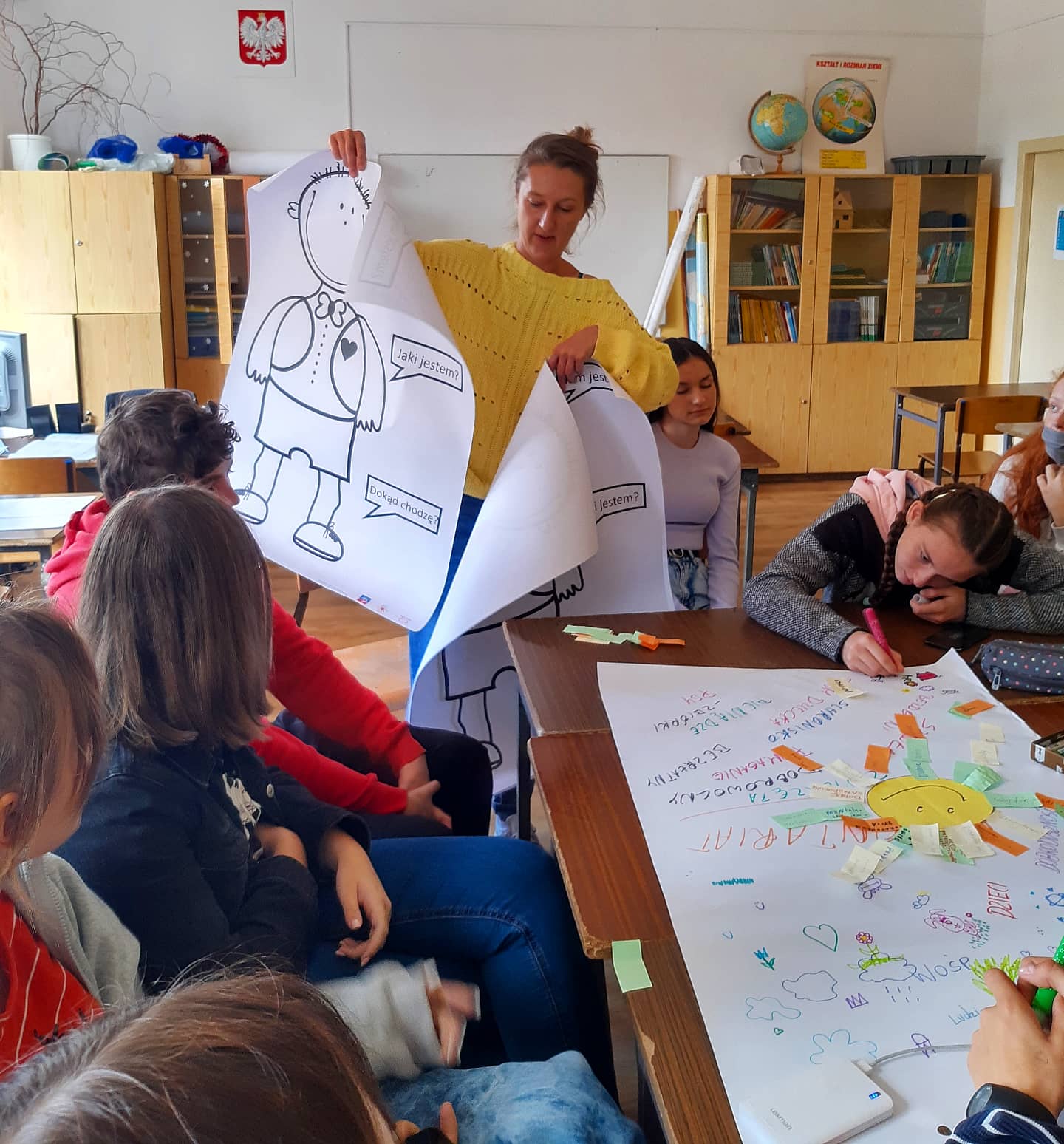 Nasi pierwszoklasiści od samego rana wspólnie z prowadzącymi zastanawiali się nad tym, jakie korzyści niesie za sobą wolontariat. Wspólnie próbowali znaleźć odpowiedź na pytania: