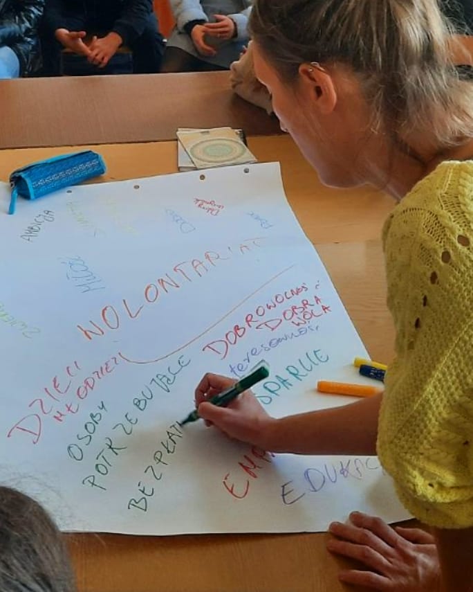 Każdy z uczestników miał ponadto okazję do podzielenia się osobistymi refleksjami i spostrzeżeniami np. na temat pracy w wolontariacie. Uczniowie chętnie mówili o swoich sukcesach, doświadczeniach, mogli też wyrazić swoje wątpliwości i opowiedzieć o trudnościach jakich codziennie doświadczają. Wszystko po to, aby w przyszłości móc jak najlepiej angażować się w działanie na rzecz społeczności lokalnej.