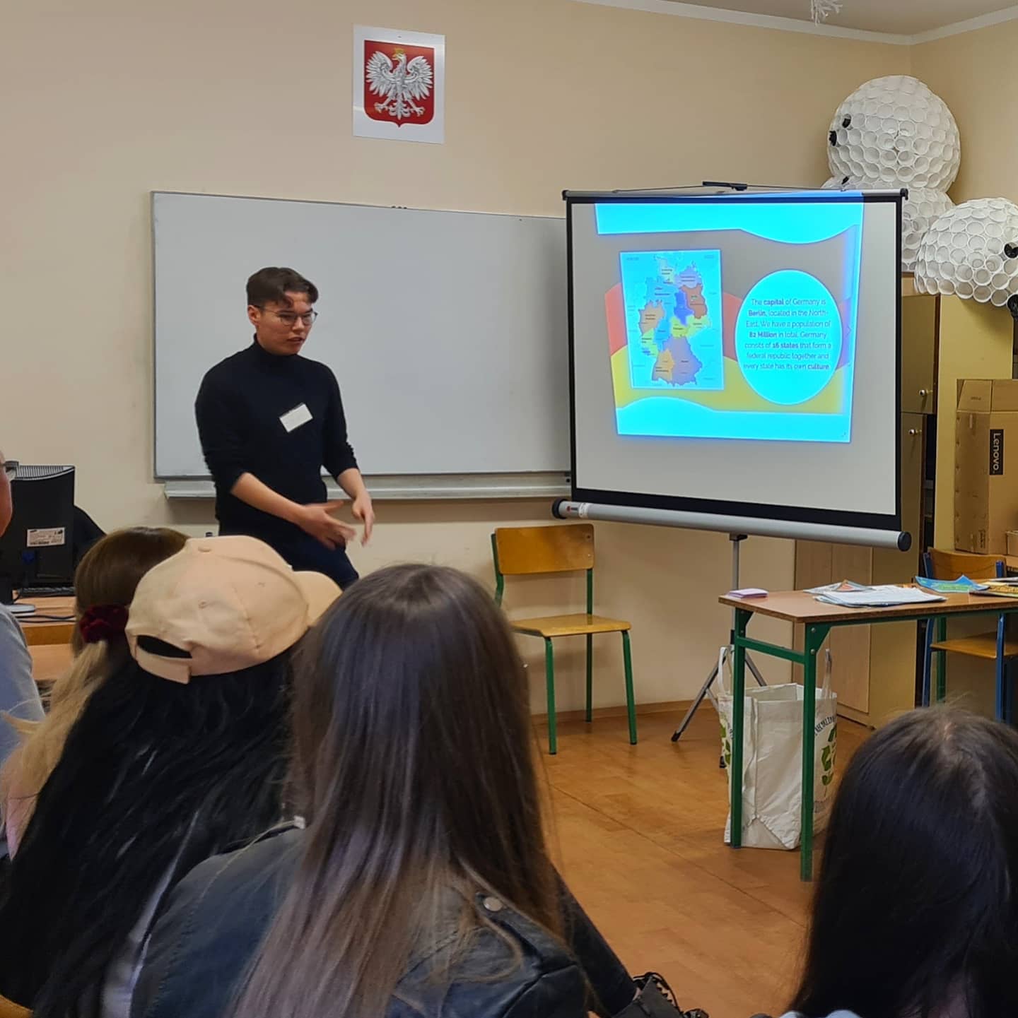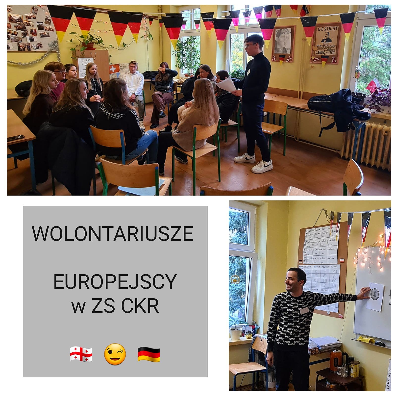 18 października 2021 roku dwoje wolontariuszy z Niemiec i Gruzji było gościem ZS Centrum Kształcenia Rolniczego w Szczecinie. Sören i Ika poprowadzili w klasach drugich oraz czwartych bardzo ciekawe, godzinne zajęcia podczas których opowiadali o swojej przygodzie z wolontariatem. Nie zabrakło opowieści o ojczystych krajach naszych gości, kulturze, zwyczajach. Nasza młodzież została „rzucona na głęboką wodę” i musiała porozumiewać się z wolontariuszami w języku angielskim lub niemieckim. Nasi zagraniczni goście spotkali się z ciepłym przyjęciem ze strony uczestników warsztatów. Uczniowie wszystkich klas starali się bardzo aktywnie uczestniczyć w zajęciach oraz pokonywać bariery nie tylko w komunikacji w obcym języku, ale przede wszystkim w komunikacji międzykulturowej.