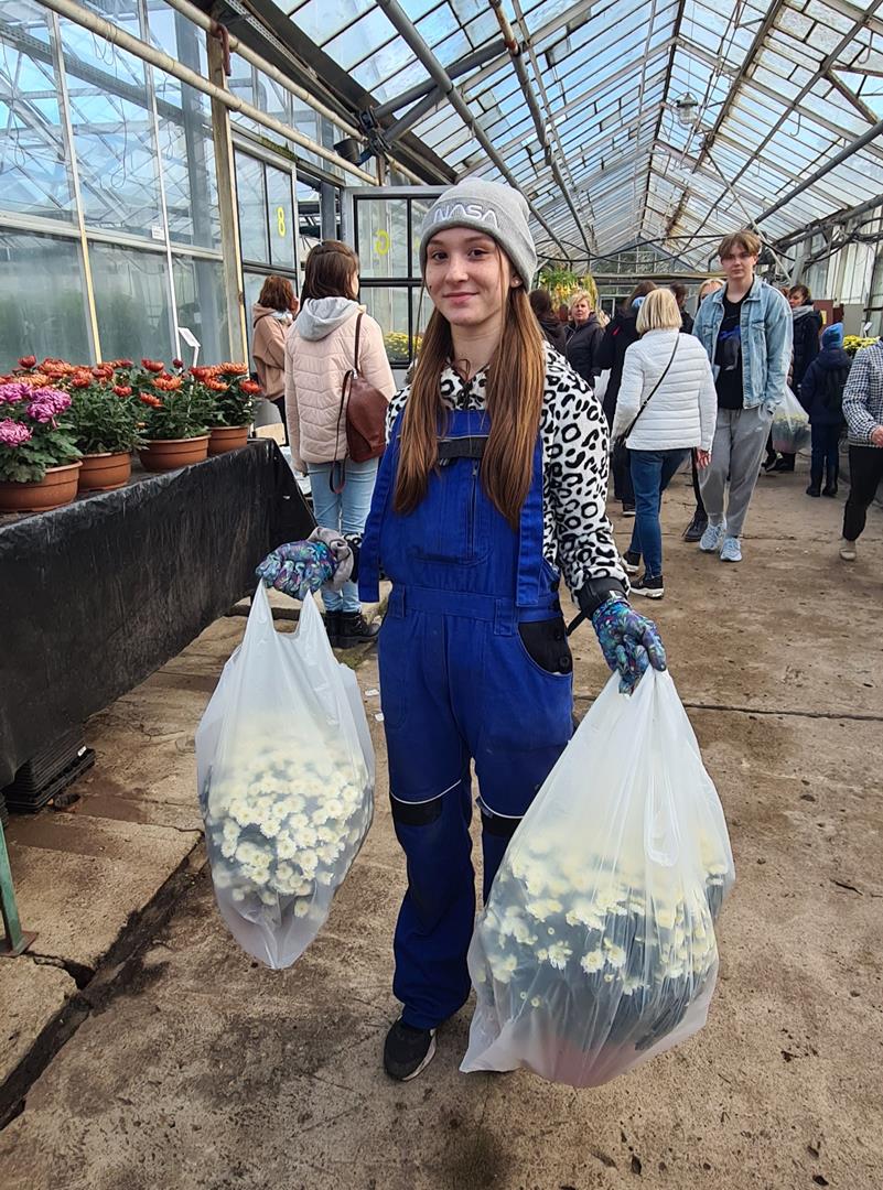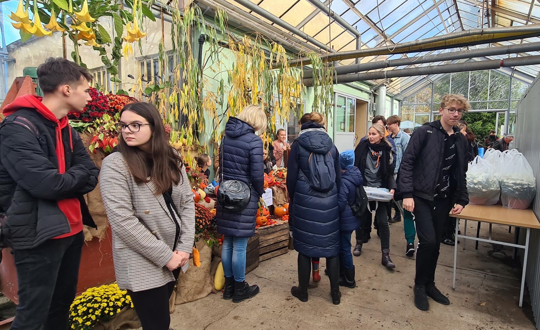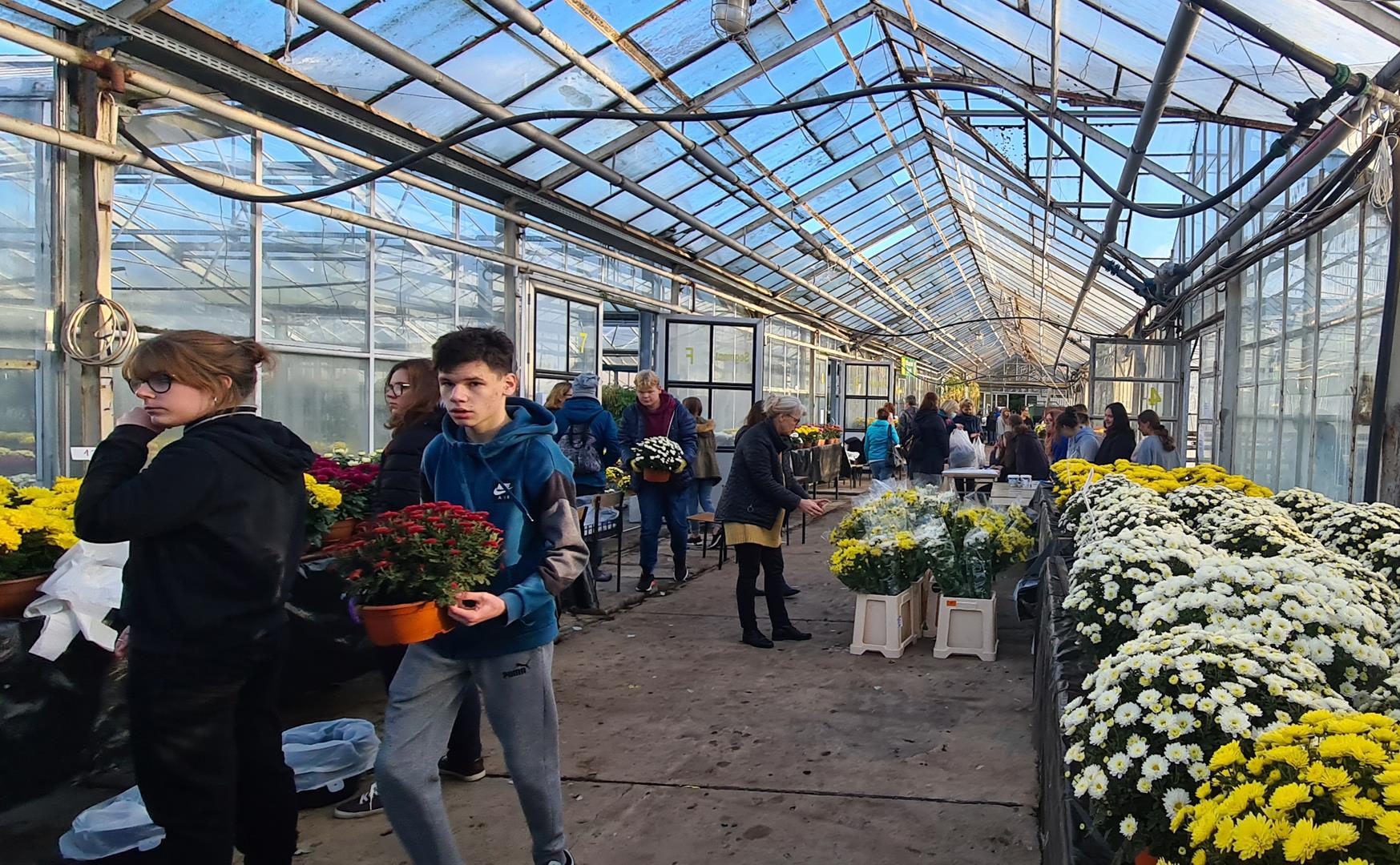 W programie przewidziano bowiem nie tylko sprzedaż chryzantem wyhodowanych przez uczniów w warsztatach szkolnych, ale również pozostałych darów jesieni wystawionych na stoiskach lokalnych producentów rolno-ogrodniczych – od lat współpracujących z naszą szkołą – takich jak: drzewka i krzewy owocowe, warzywa korzeniowe i kapustne, kapustę szatkowaną i kiszoną, gruszki i jabłka w wielu odmianach.
