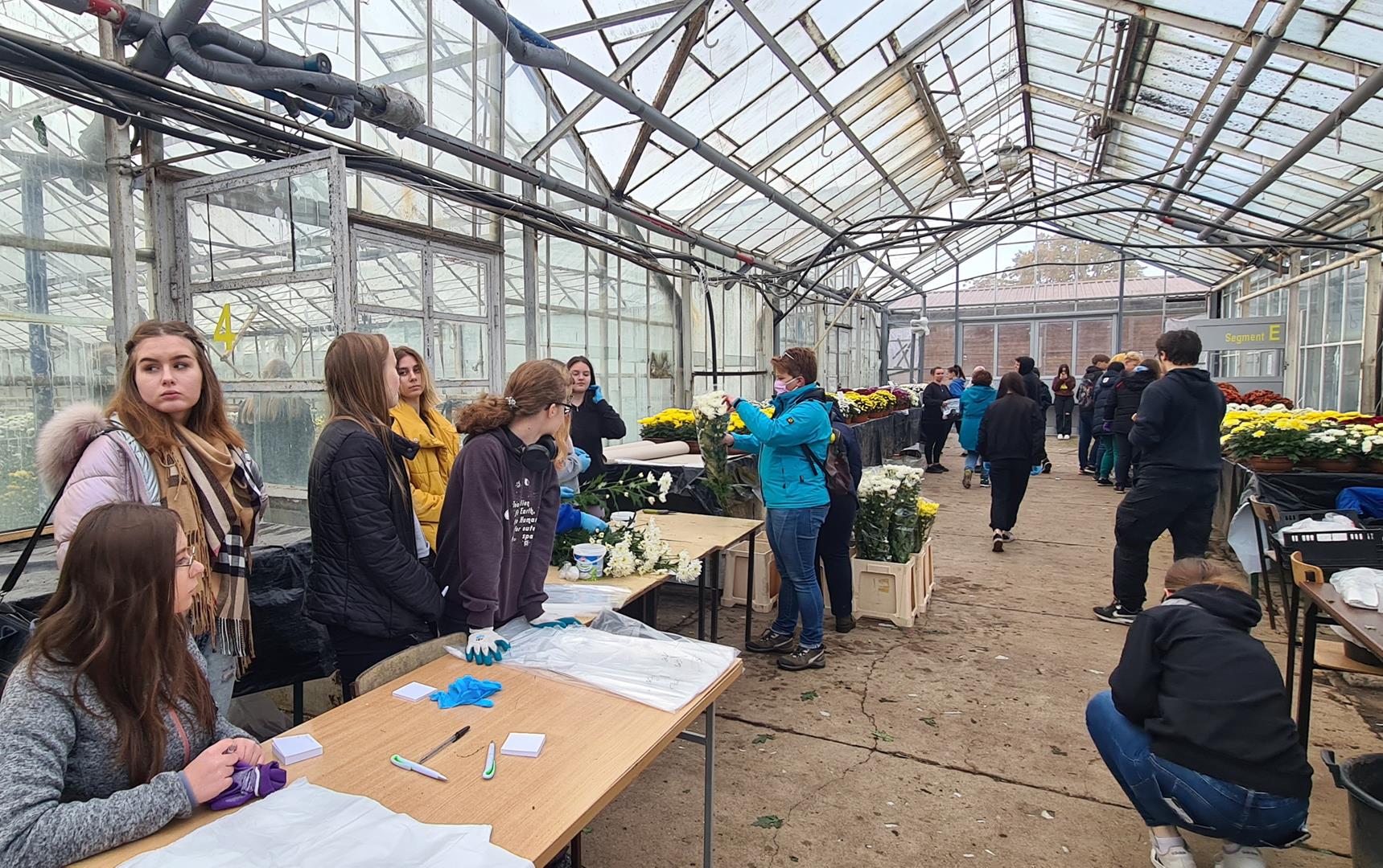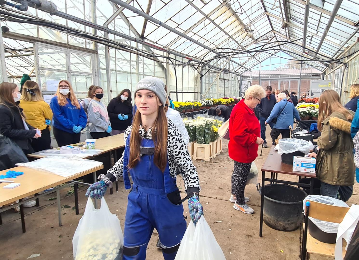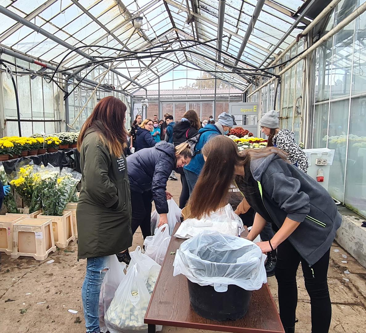 W programie przewidziano bowiem nie tylko sprzedaż chryzantem wyhodowanych przez uczniów w warsztatach szkolnych, ale również pozostałych darów jesieni wystawionych na stoiskach lokalnych producentów rolno-ogrodniczych – od lat współpracujących z naszą szkołą – takich jak: drzewka i krzewy owocowe, warzywa korzeniowe i kapustne, kapustę szatkowaną i kiszoną, gruszki i jabłka w wielu odmianach.
