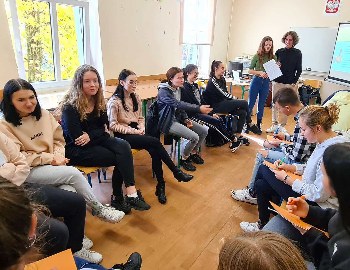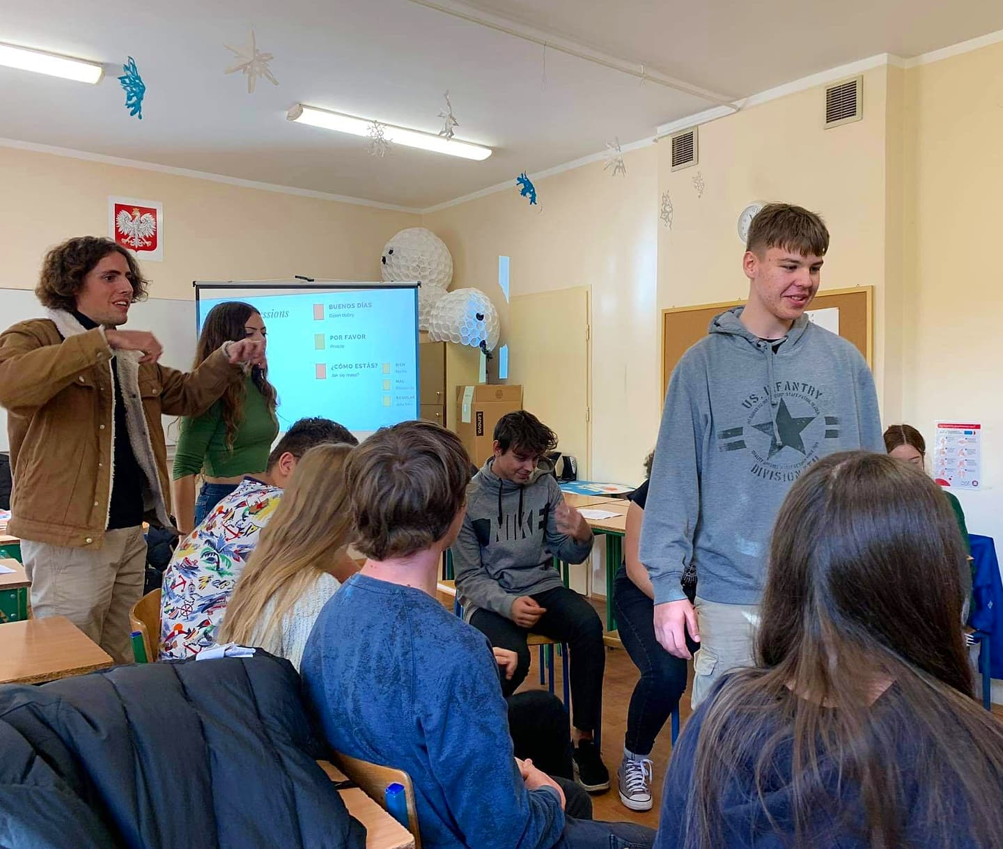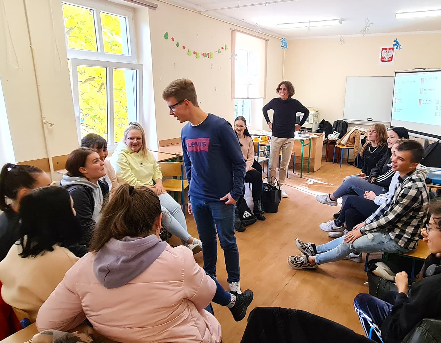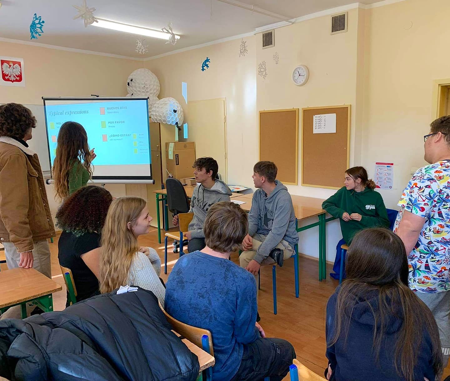 27. października 2021 roku po raz drugi gościliśmy u nas w szkole wolontariuszy ze Stowarzyszenie POLITES. Pochodzący z Hiszpanii Carmen i Juande poprowadzili w klasach trzecich równie ciekawe zajęcia podczas których opowiadali o swojej przygodzie z wolontariatem. Razem z trzecioklasistami dyskutowali o tym, jakie korzyści przynosi pomaganie innym. Nasi goście opowiedzieli również o kulturze, zwyczajach i tradycjach narodowych, potrawach regionalnych, miejscach godnych odwiedzenia oraz podzielili się z uczniami ciekawostkami o swojej ojczyźnie.