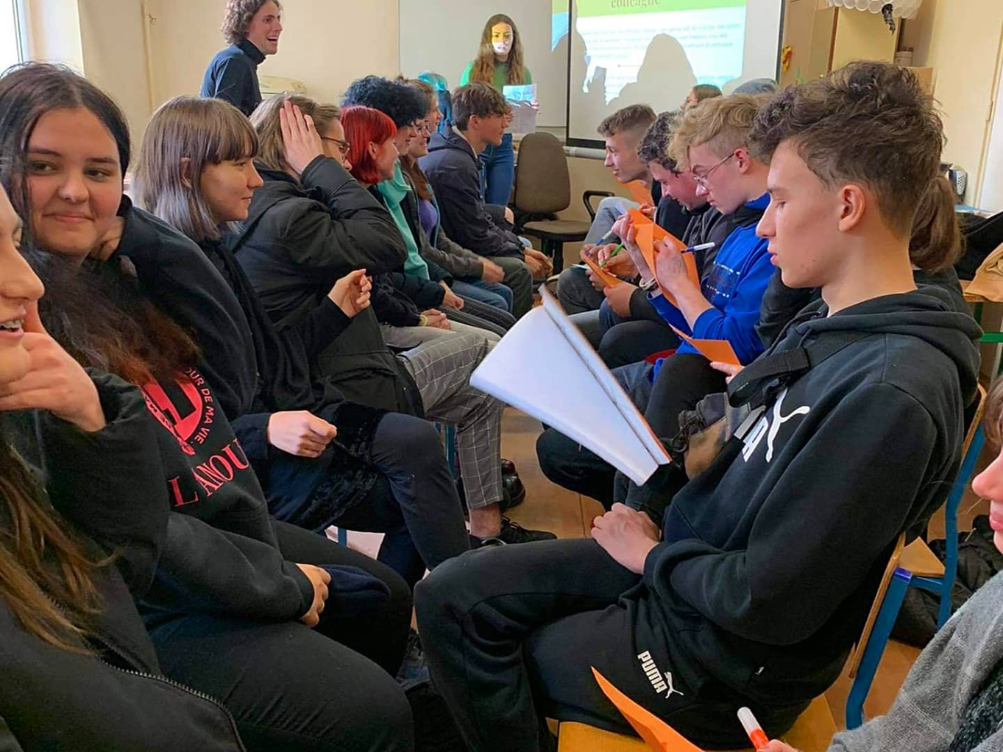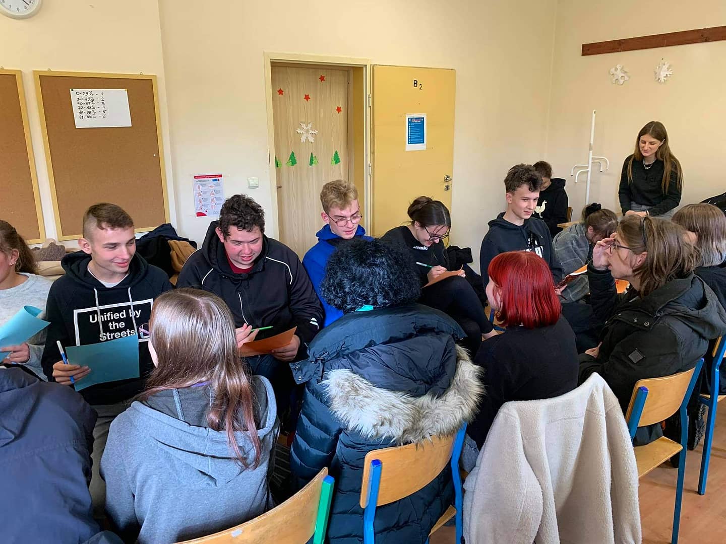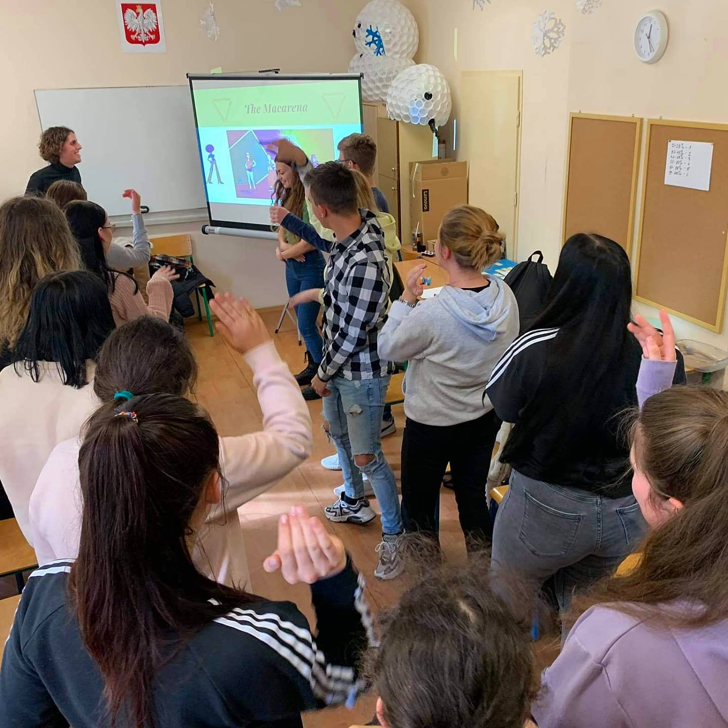 Uczniowie klas trzecich rzuceni na „głęboką wodę” starali się bardzo aktywnie uczestniczyć w zajęciach oraz pokonywać bariery językowe. Komunikowanie się z wolontariuszami wzbudziło u wszystkich wielki entuzjazm i uświadomiło, jak ważna jest znajomość języków obcych. Było sporo pytań, sporo śmiechu i dobrej zabawy.