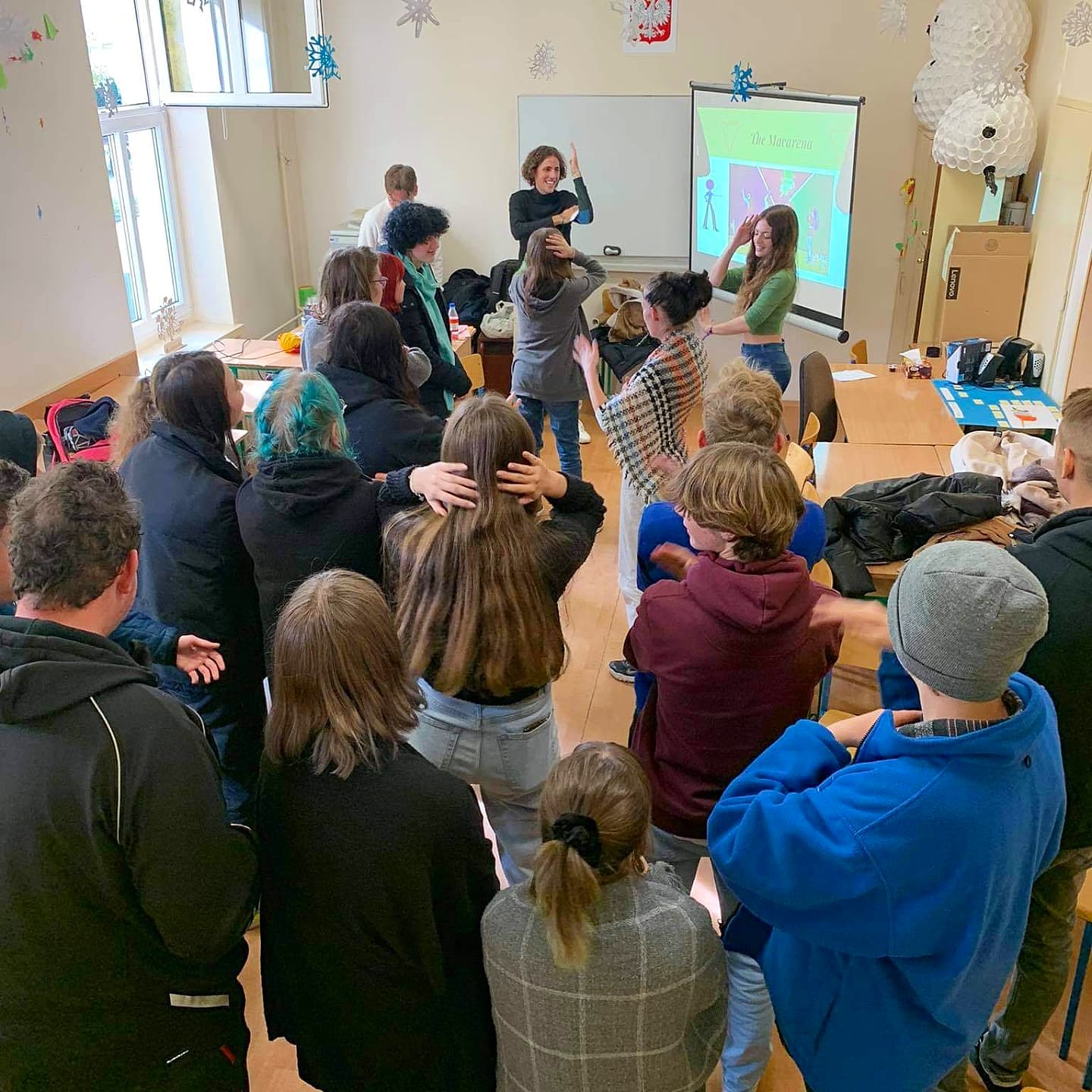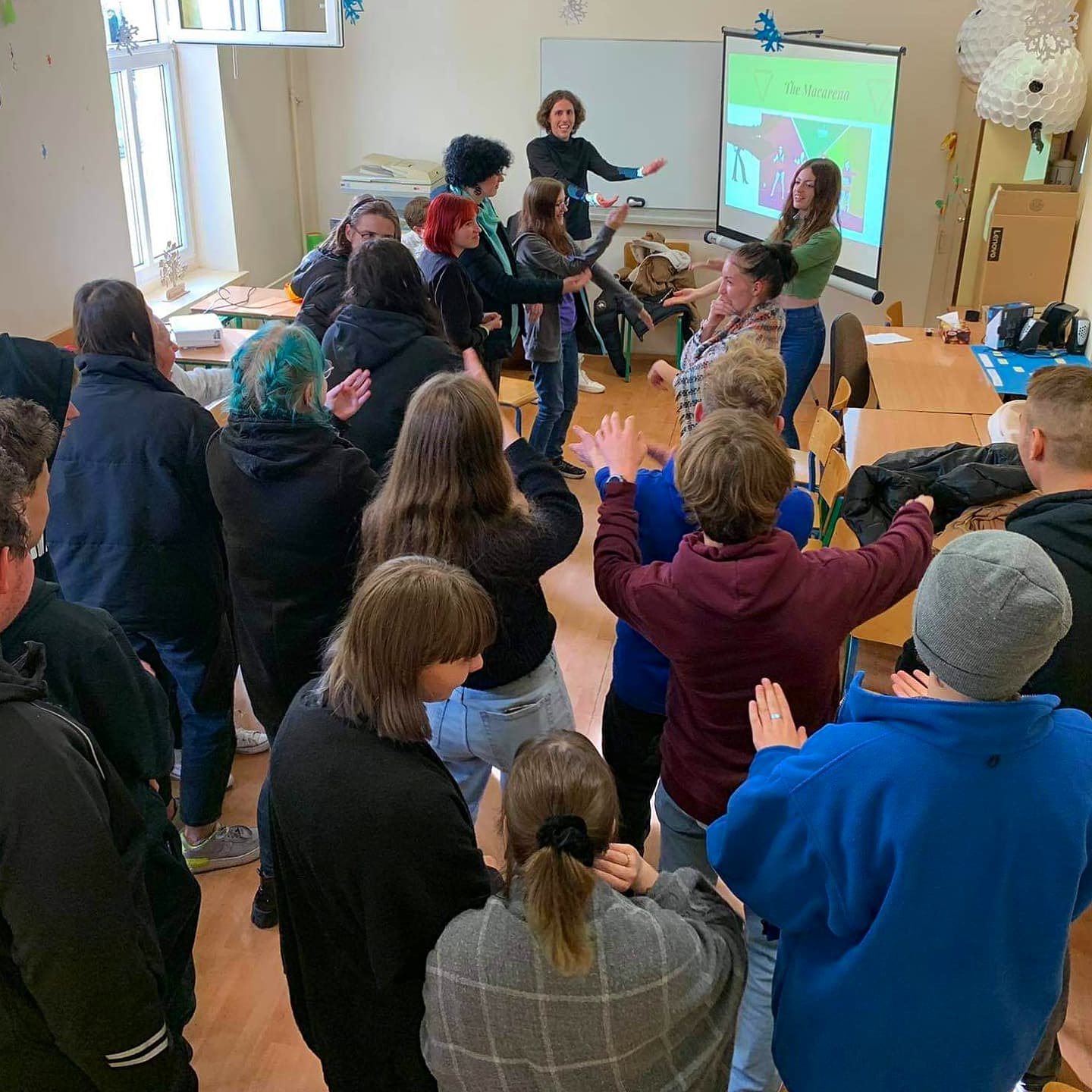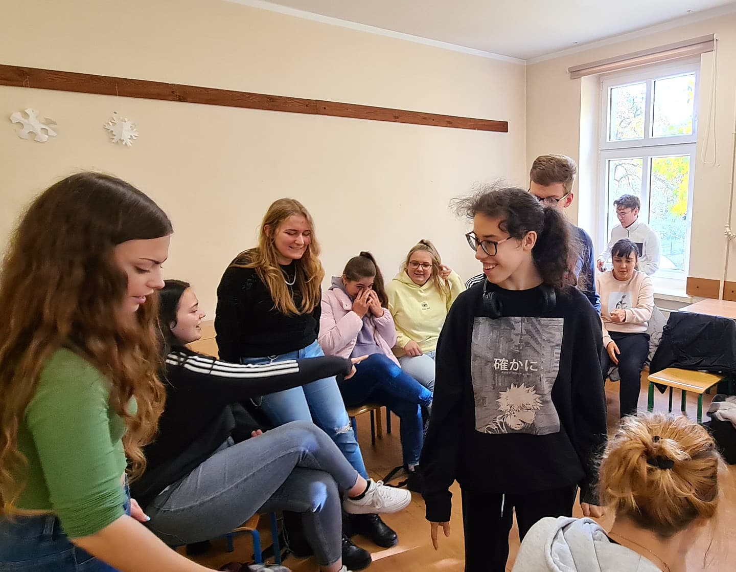 Uczniowie klas trzecich rzuceni na „głęboką wodę” starali się bardzo aktywnie uczestniczyć w zajęciach oraz pokonywać bariery językowe. Komunikowanie się z wolontariuszami wzbudziło u wszystkich wielki entuzjazm i uświadomiło, jak ważna jest znajomość języków obcych. Było sporo pytań, sporo śmiechu i dobrej zabawy.
