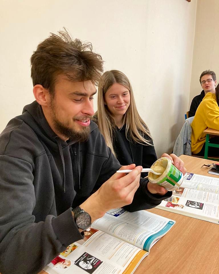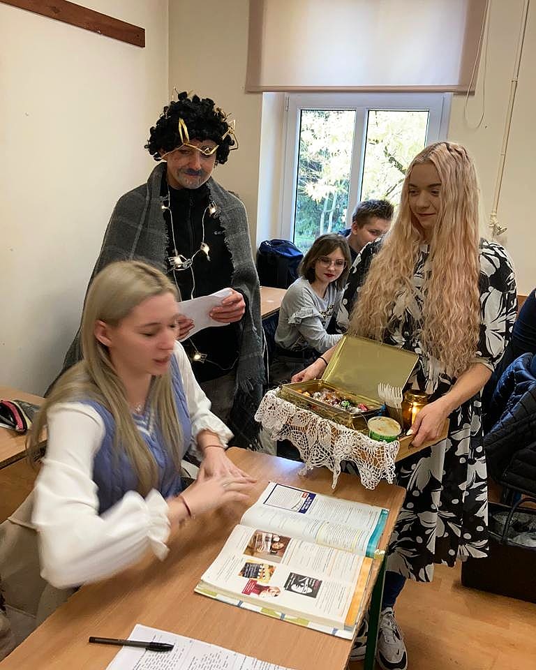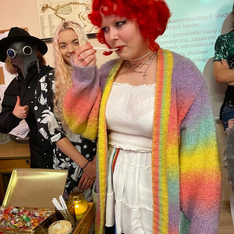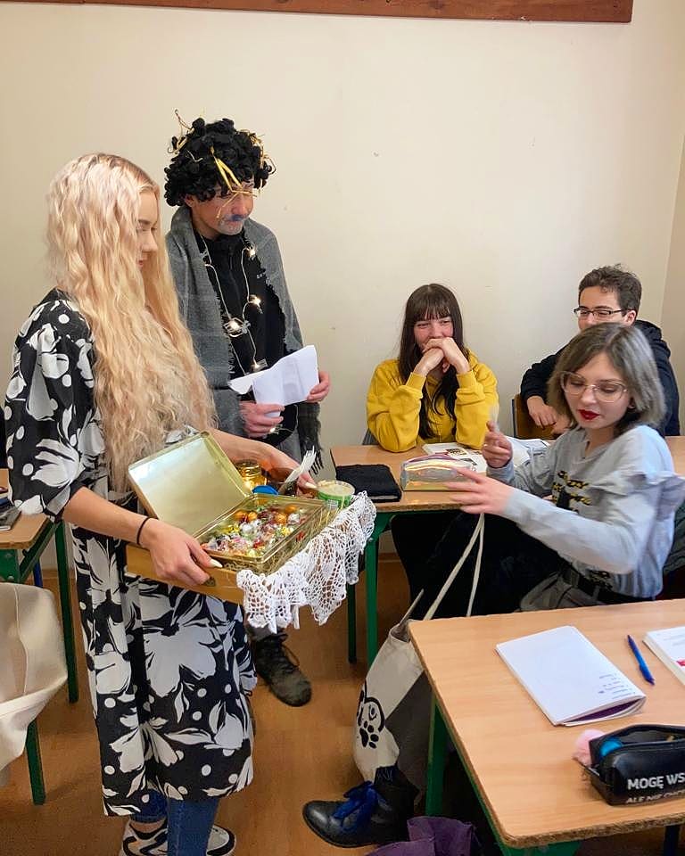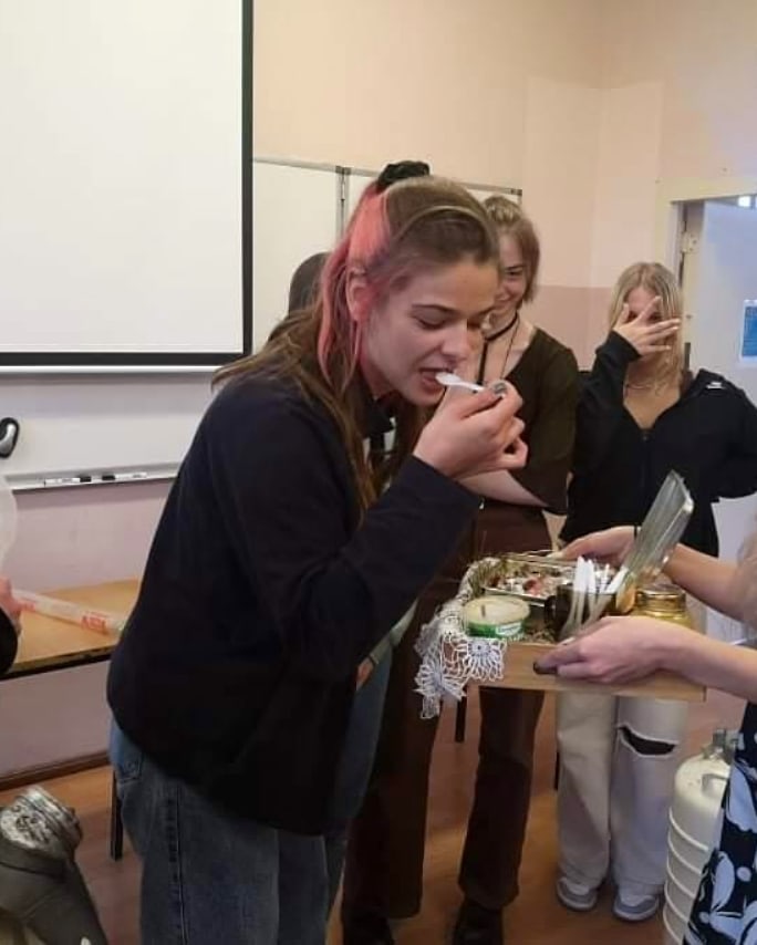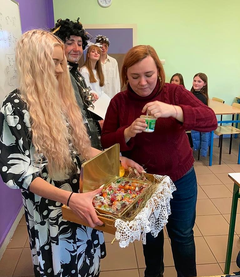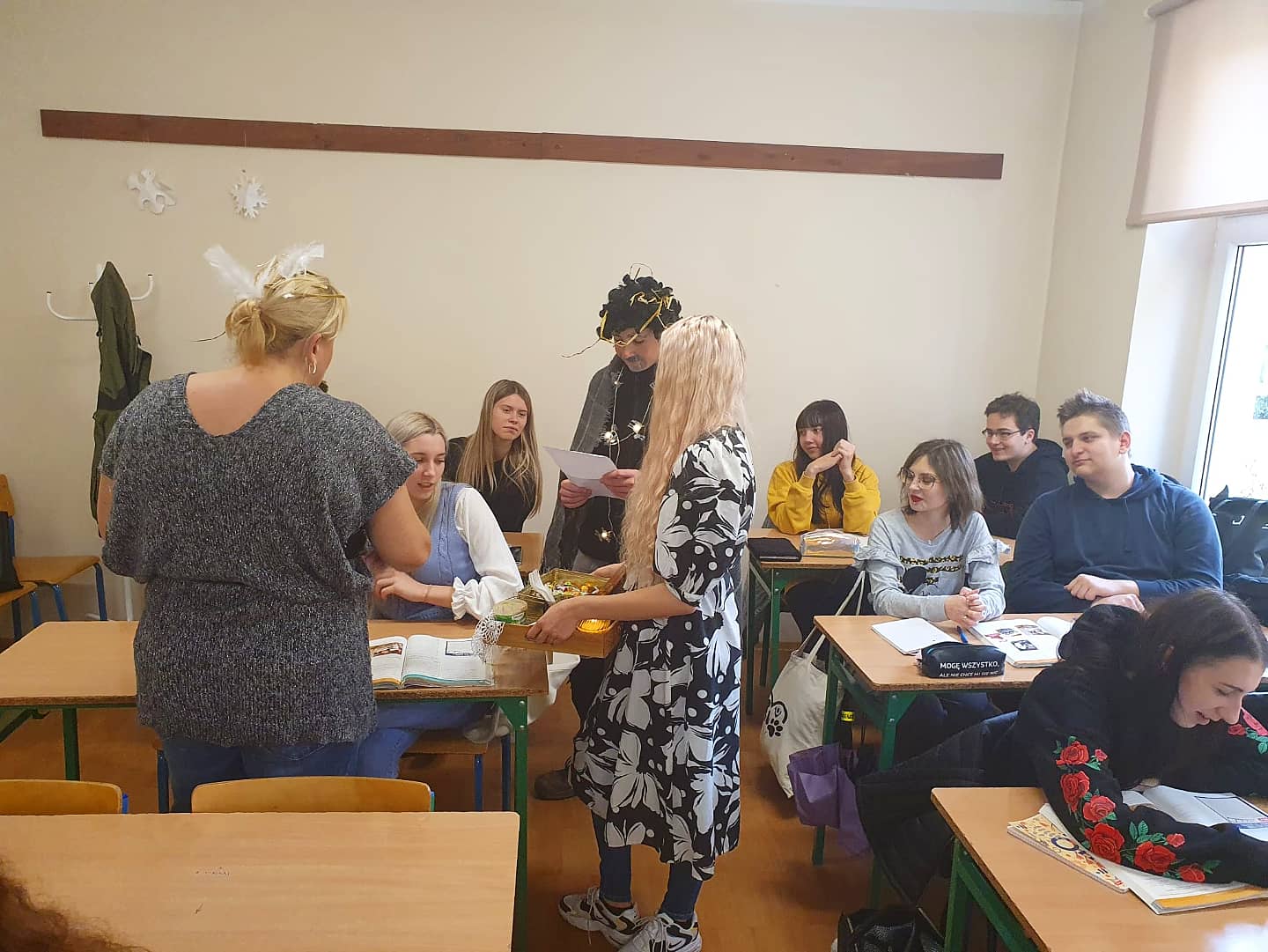 Uczniowie naszej szkoły przygotowali quiz dotyczący ,,Dziadów, część II”. Uczestnicy musieli odpowiadać na pytania dotyczące utworu. Brak wiedzy na temat treści dramatu skutkował zaznaniem goryczy w życiu ( zjedzenie porcji musztardy – symbol gorczycy która dzieci powinny dostać aby trafić do nieba), a udzielenie poprawnej odpowiedzi zaznaniem słodyczy (cukierek).