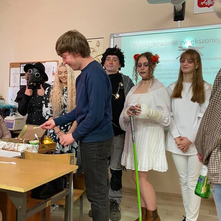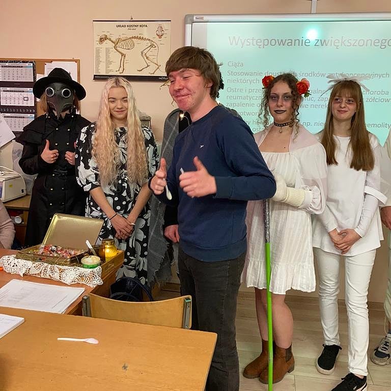Młodzież z naszej szkoły chętnie brała udział w quizie dzielnie znosząc ,, karę” za brak swojej niewiedzy.