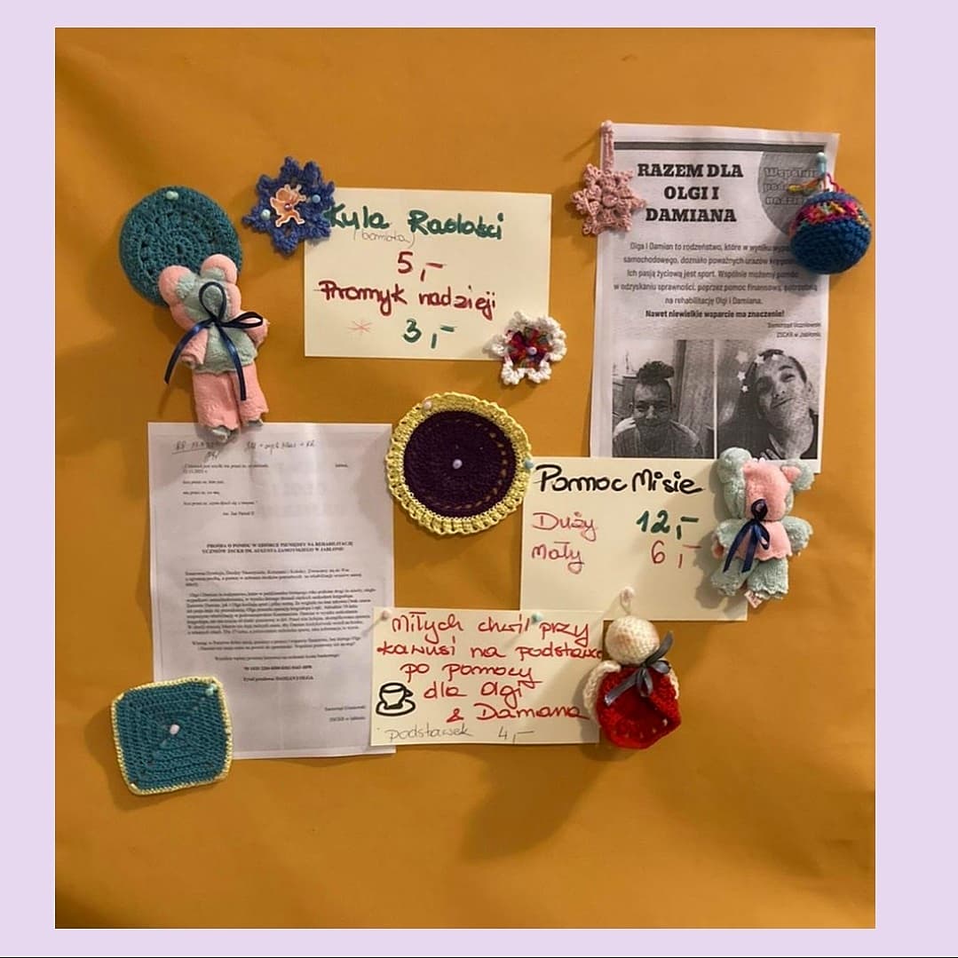 Olga i Damian to uczniowie, którzy doznali w wyniku wypadku samochodowego poważnego urazu kręgosłupa. Czeka ich bardzo długa i kosztowna rehabilitacja, bez której ci młodzi ludzie mogą nie mieć szans na powrót do sprawności. Do akcji włączyli się nasi uczniowie, którzy przygotowali słodkie wypieki. Podczas kiermaszu było można dodatkowo zakupić ozdoby bożonarodzeniowe wykonane przez naszych uczniów.
