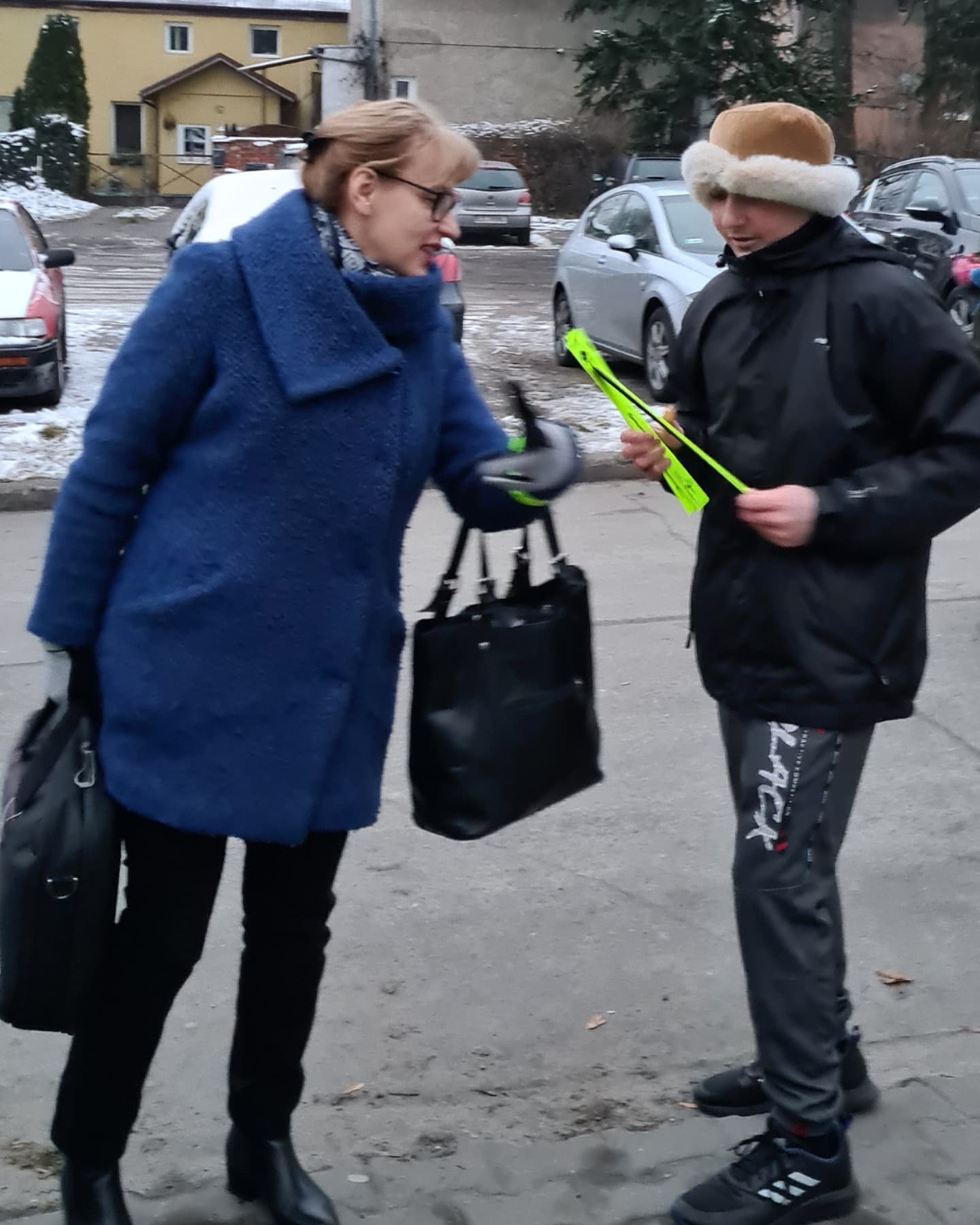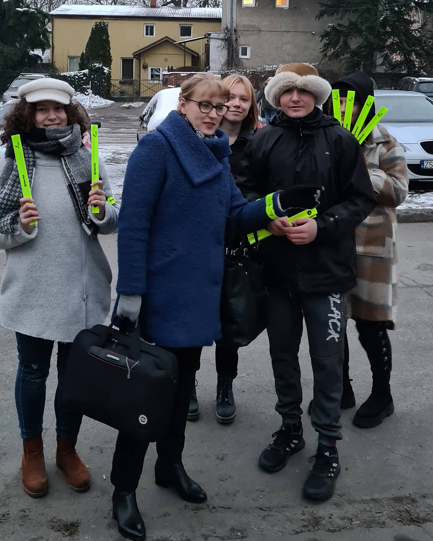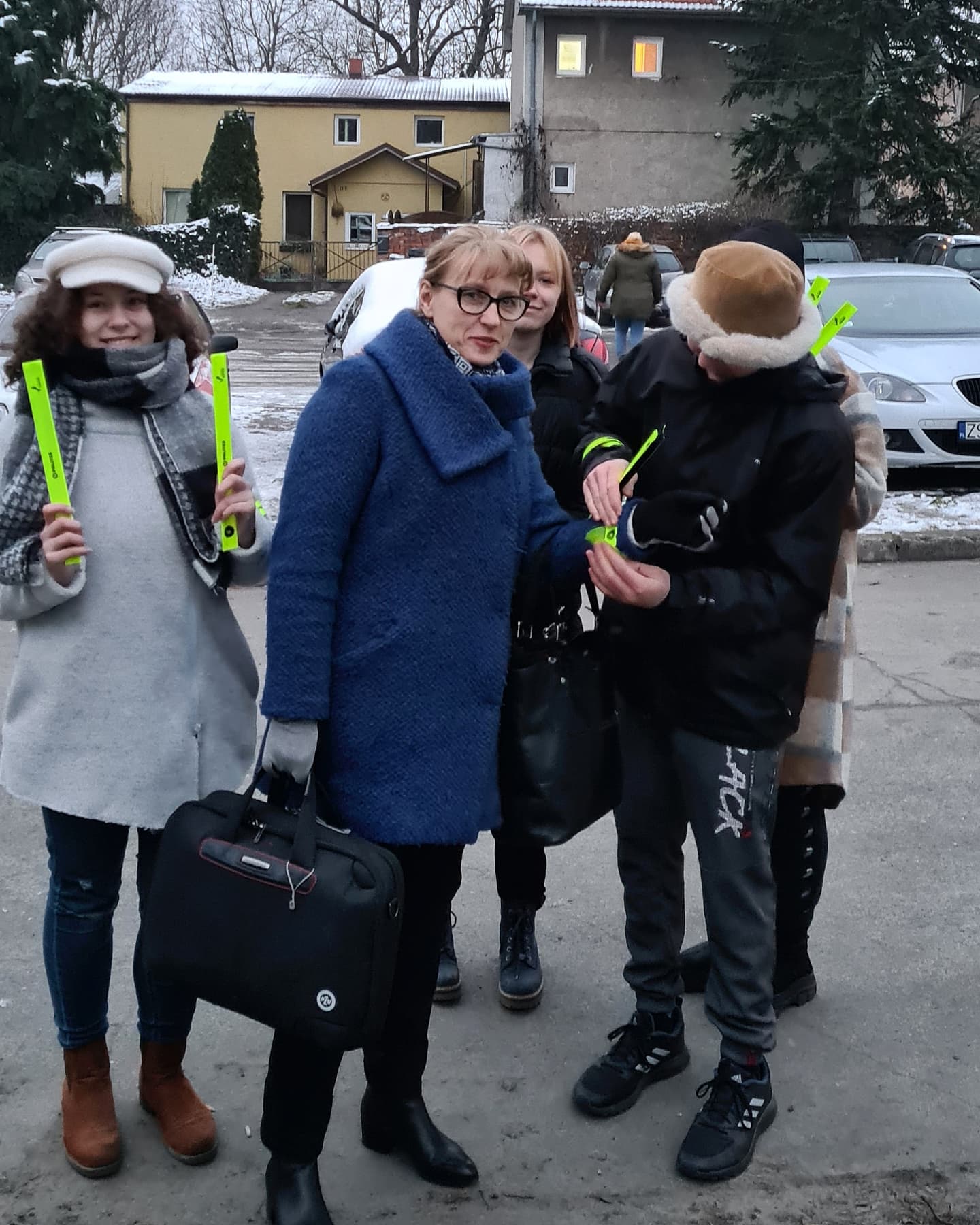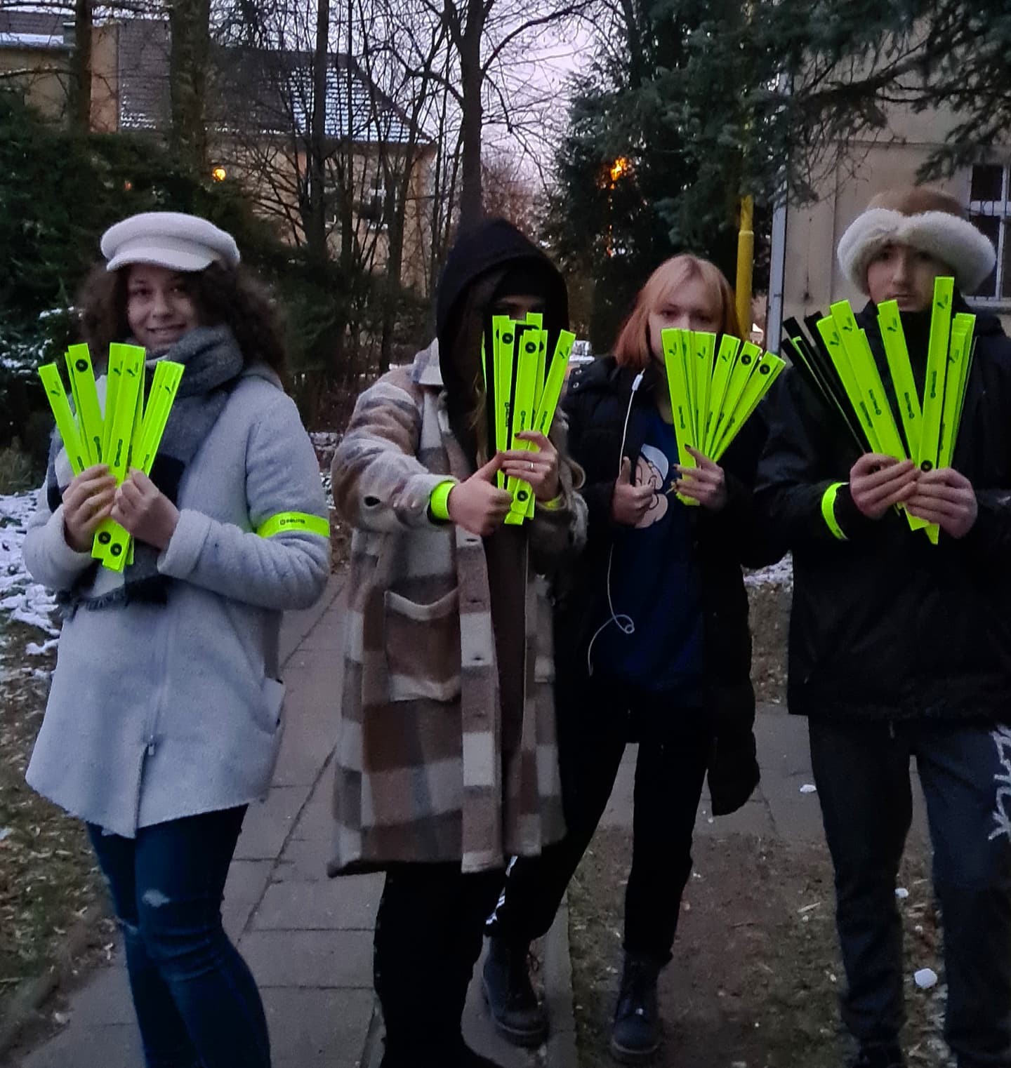 W ramach akcji „Blaski wolontariatu” organizowanej przez Stowarzyszenie POLITES grupa wolontariuszy z naszej szkoły, pod czujnym okiem opiekuna Szkolnego Koła Wolontariatu oraz opiekuna Samorządu Uczniowskiego, w czwartkowy poranek oraz w czwartkowe popołudnie rozdawała fluorescencyjne odblaski. Wolontariusze rozdawali elementy odblaskowe nie tylko swoim kolegom i koleżankom, ale również nauczycielom, pracownikom szkoły i mieszkańcom dzielnicy Zdroje.