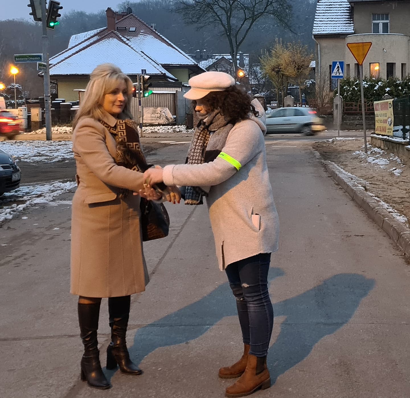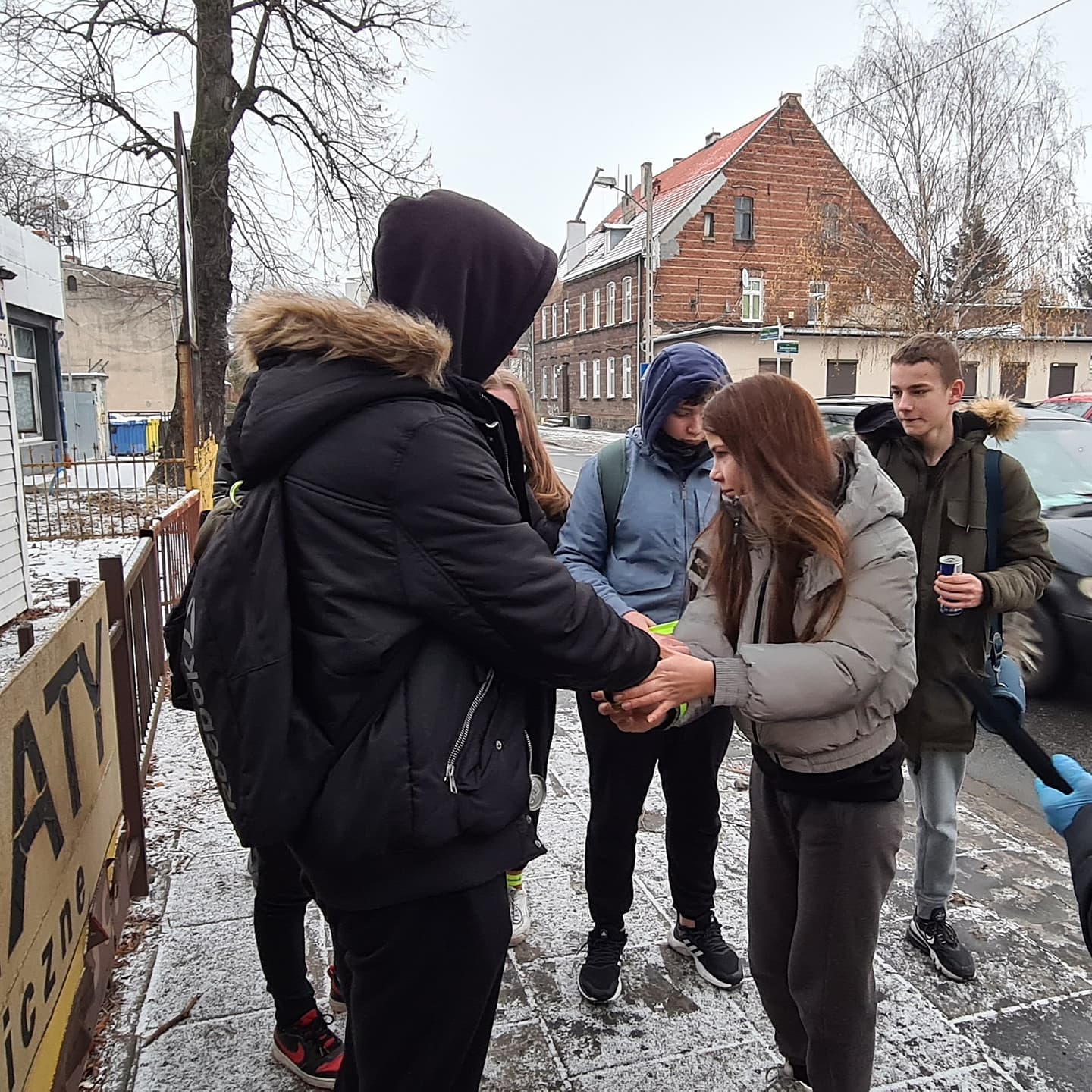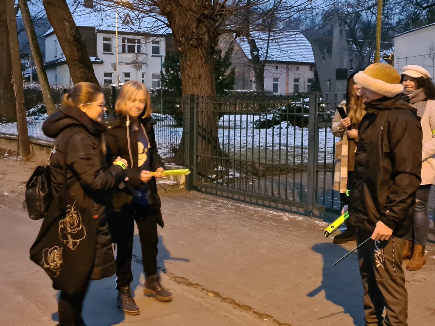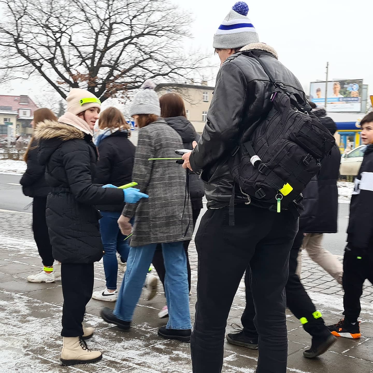 W ramach akcji „Blaski wolontariatu” organizowanej przez Stowarzyszenie POLITES grupa wolontariuszy z naszej szkoły, pod czujnym okiem opiekuna Szkolnego Koła Wolontariatu oraz opiekuna Samorządu Uczniowskiego, w czwartkowy poranek oraz w czwartkowe popołudnie rozdawała fluorescencyjne odblaski. Wolontariusze rozdawali elementy odblaskowe nie tylko swoim kolegom i koleżankom, ale również nauczycielom, pracownikom szkoły i mieszkańcom dzielnicy Zdroje.