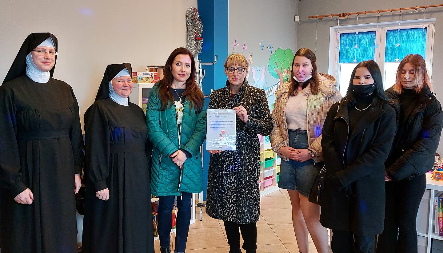 Siostra Nikodema ze Zgromadzenia Sióstr Benedyktynek Samarytanek Krzyża Chrystusowego, wręczając naszej szkole podziękowania za otrzymane dary podkreśliła, że jest to świadectwo miłosierdzia oraz przykład szlachetnej postawy ludzi, którzy swoim bezinteresownym działaniem dają nadzieję innym oraz siłę do przezwyciężania trudnych sytuacji życiowych.