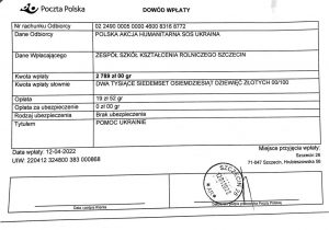 Akcja „Razem dla Ukrainy” w ZS CKR w Szczecinie dobiegła końca. Udało nam się w sumie zebrać 2,789zł. Zebrana kwota została przelana na konto Polskiej Akcji Humanitarnej, która jest obecna na miejscu od początku konfliktu. Dla ludzi, którzy musieli uciekać ze swoich domów zapewniana jest pomoc bezpośrednia, włączając w to żywność, pomoc psychologiczną i inne formy wsparcia. Wsparcie akcji PAH obejmuje nie tylko osoby poszkodowane w wyniku konfliktu, które przemieszczają się wewnątrz kraju jak również uchodźczynie i uchodźców przyjeżdżających do Polski.