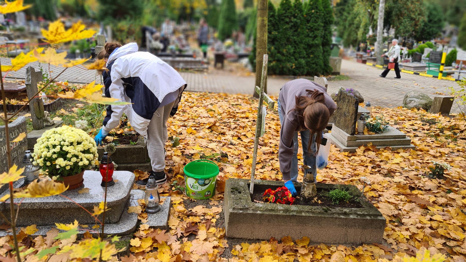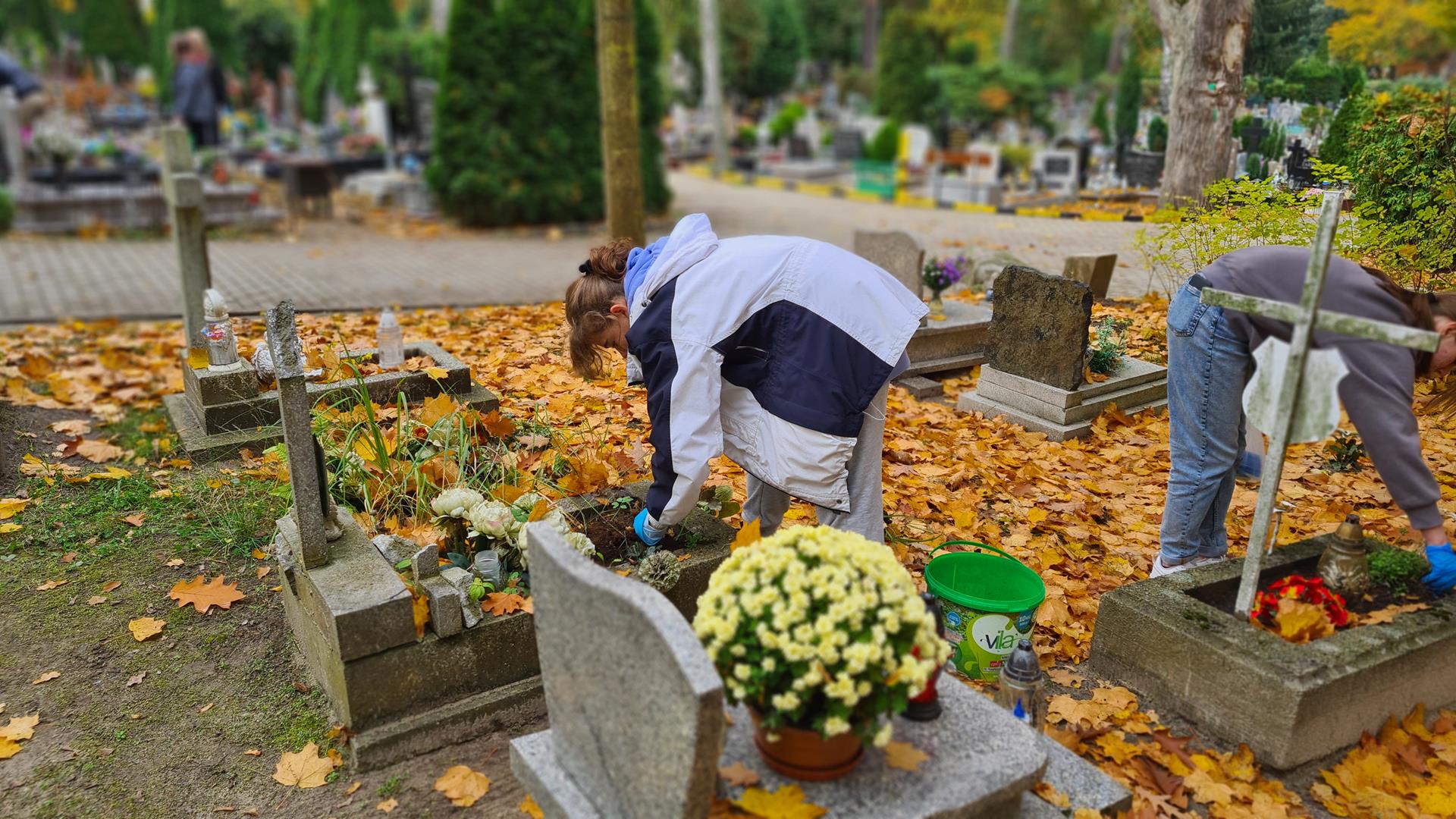 Porządkowanie lokalnej nekropolii to m. in. oczyszczanie miejsc wiecznego spoczynku, alejek, zapalenie zniczy – światełek pamięci.