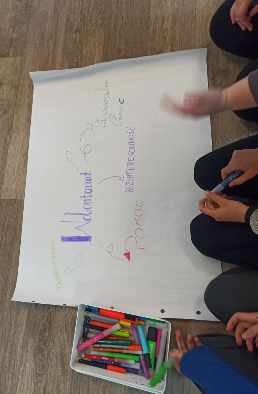 Podczas warsztatów uczniowie szukali odpowiedzi na pytania dotyczące wolontariatu: