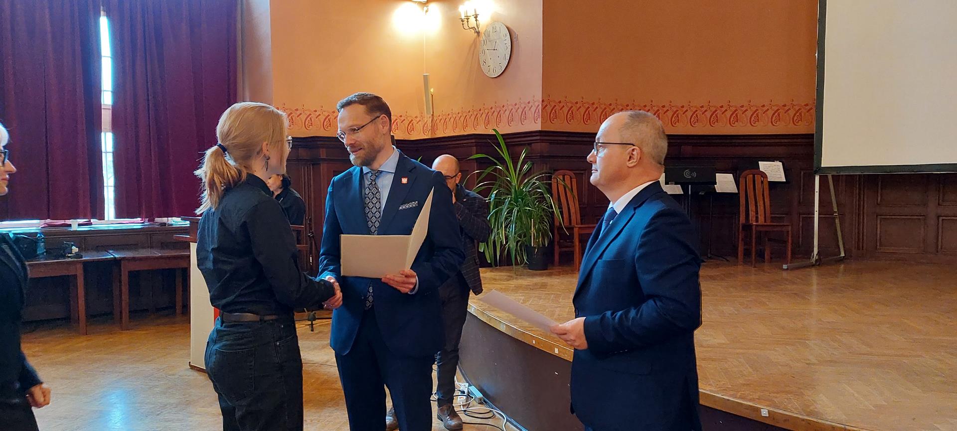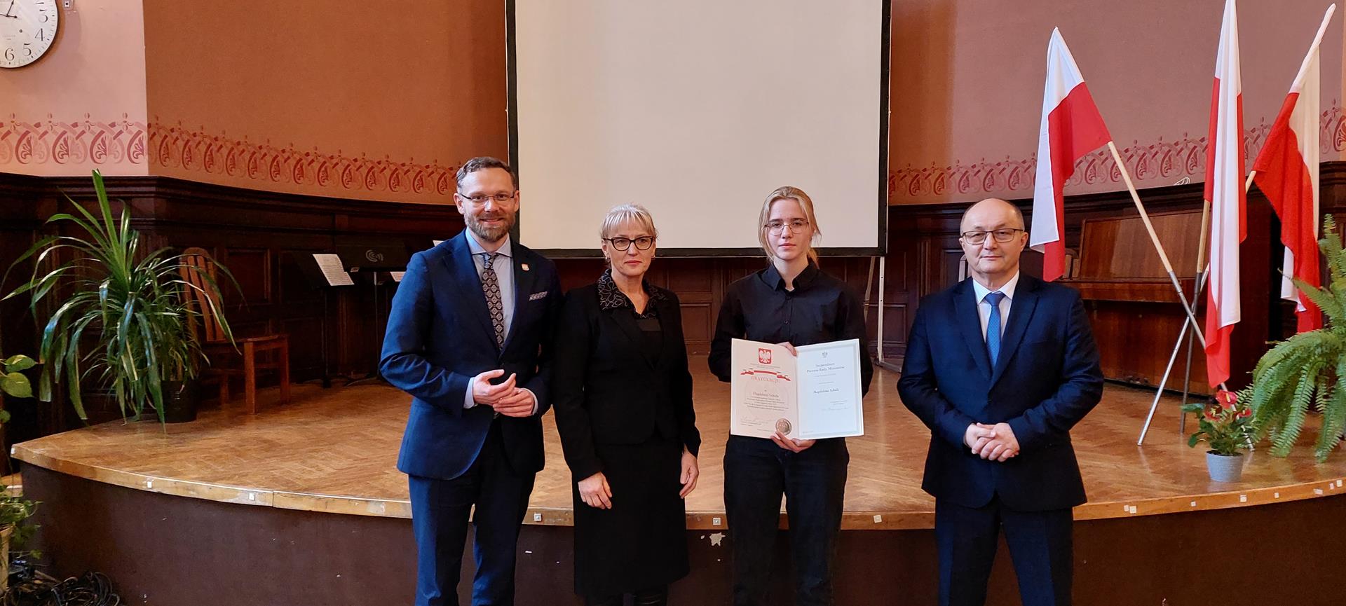 Na uroczystą galę wybrali się wraz z Panią Dyrektor Jolantą Kawszyn, reprezentując z dumą naszą szkołę. Wojewoda Zachodniopomorski Pan Zbigniew Bogucki wręczał dyplomy potwierdzające uzyskanie stypendium wraz z p. o. zachodniopomorskiego kuratora oświaty Jerzym Sołtysiakiem i gratulował uczniom zdobytych osiągnięć. Podziękował także rodzicom, wychowawcom, opiekunom, nauczycielom za wspieranie wyjątkowo utalentowanych uczniów w drodze na szczyt.