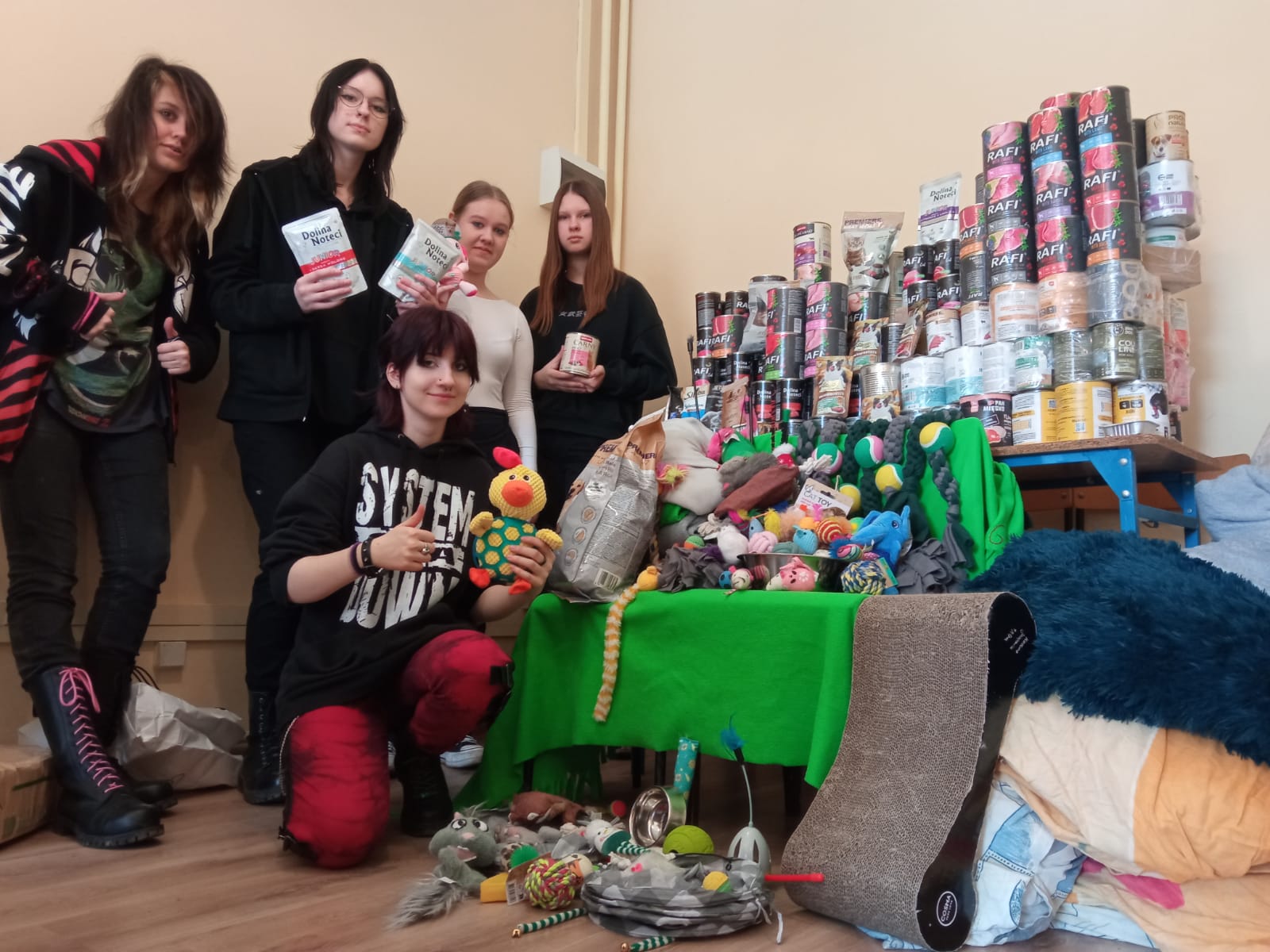 Zakończyła się zbiórka karmy i akcesoriów dla bezdomnych zwierząt ze schroniska. Uczniowie naszej szkoły przez cały marzec przynosili dary z poszczególnych klas, a wynik zbiórki jest imponujący! Niemal 300 puszek mokrej karmy wysokiej jakości, ale również karma sucha, miski, koce, kołdry i legowiska – nie zabrakło także zabawek dla bezdomnych czworonogów. Wszystkie dary zostaną przekazane do schroniska dla bezdomnych zwierząt w Szczecinie przy ul. Południowej.