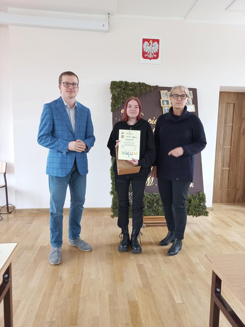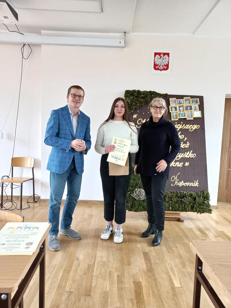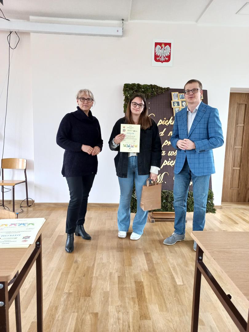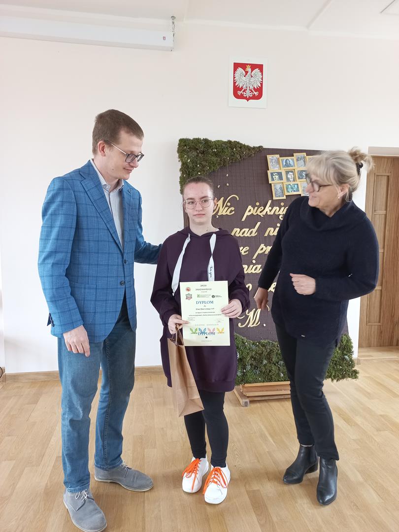 Pani Dyrektor wraz z p. Grzegorzem Pietrygą wręczyła wszystkim uczestnikom pamiątkowe dyplomy oraz „słodkie” nagrody.