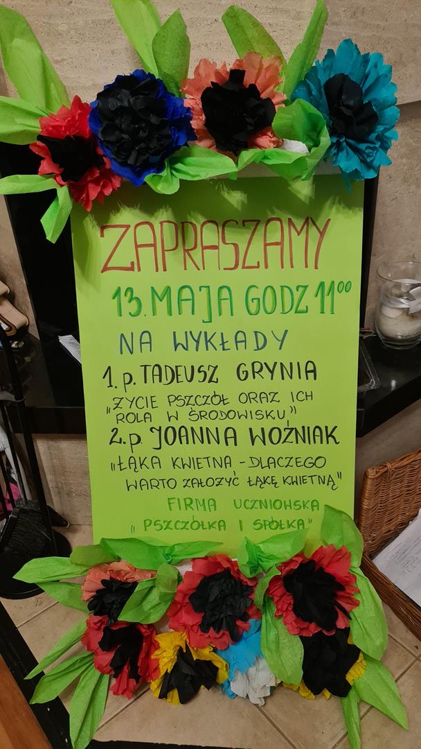 Weszliśmy już w ostatni etap przygotowań przed kiermaszem ogrodniczym w ramach projektu Młodzi Przedsiębiorczy. Wszystko idzie zgodnie z planem: łąka kwietna założona, rośliny miododajne pięknie rosną, a słoneczniki już kwitną, plakaty już prawie zrobione, ozdoby z papieru, kwiaty, pszczółki również. Szczególnie cieszymy się z przepięknego domku dla owadów, który wykonał razem tatą i bratem Krzysiu Kierzynkowski (2DT). Brawo. Mamy też zaproszonych prelegentów na wykład o pszczołach i zakładaniu łąki kwietnej. Cieszymy się bo pojawiają się nowi sympatycy i osoby zaangażowane w projekt.
