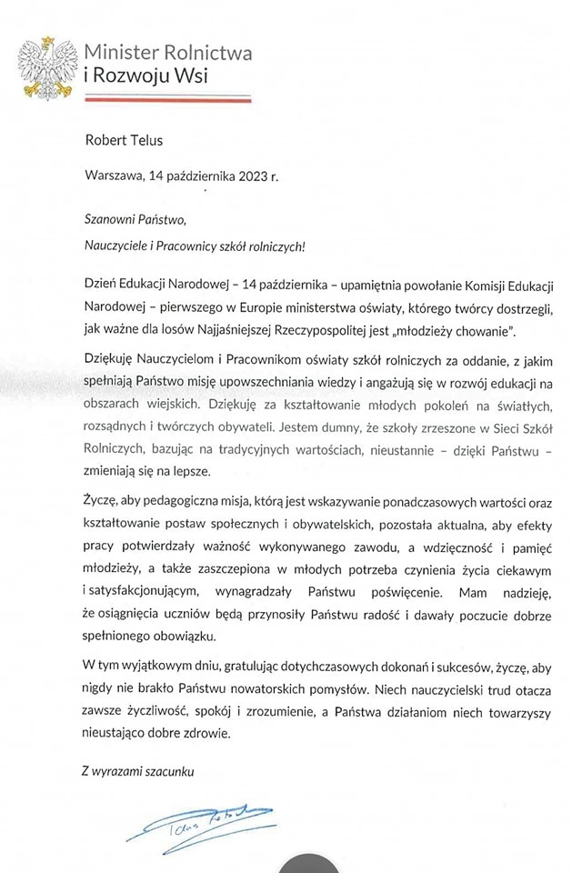 Podziękowania za trud pracy złożył również Robert TELUS Minister Rolnictwa i Rozwoju Wsi